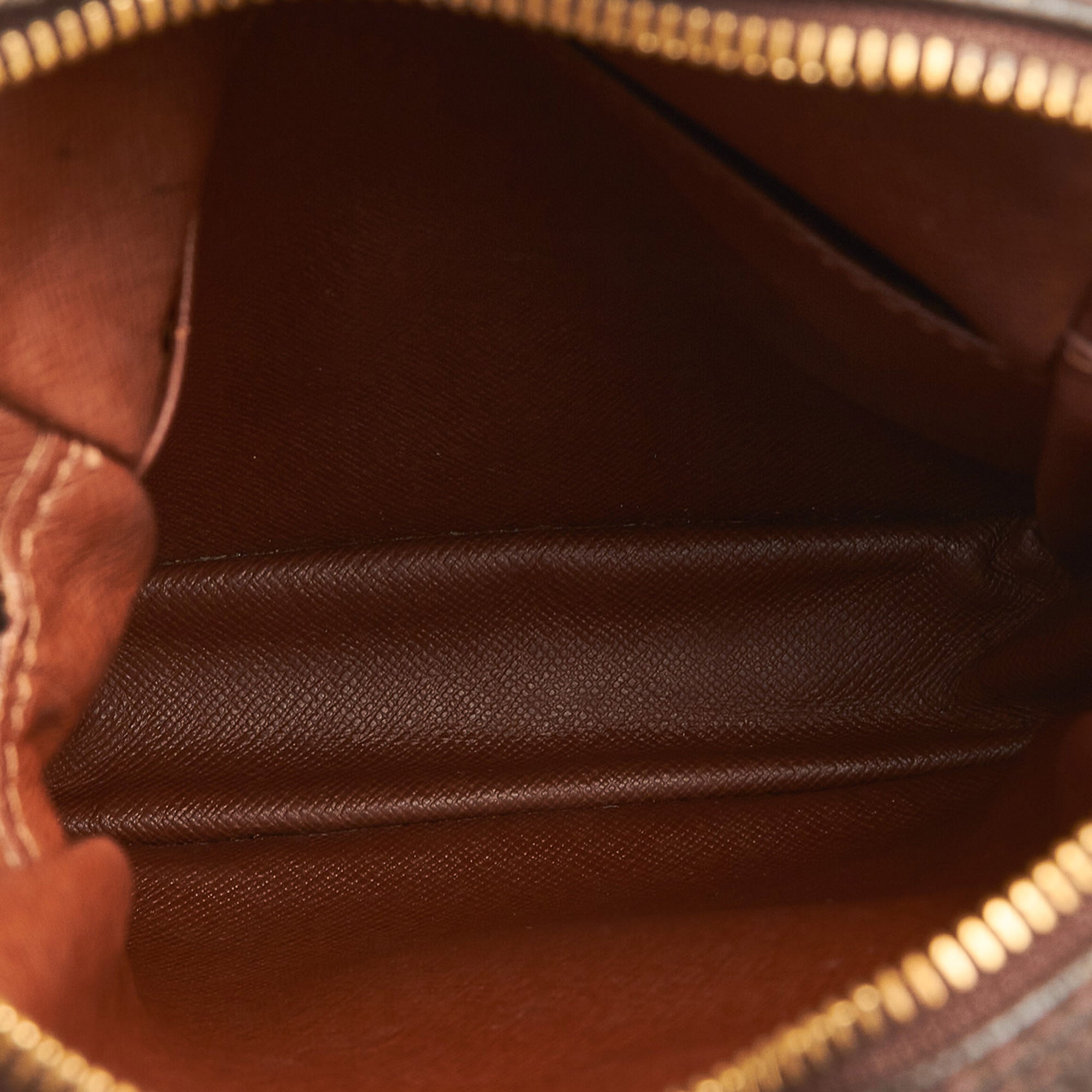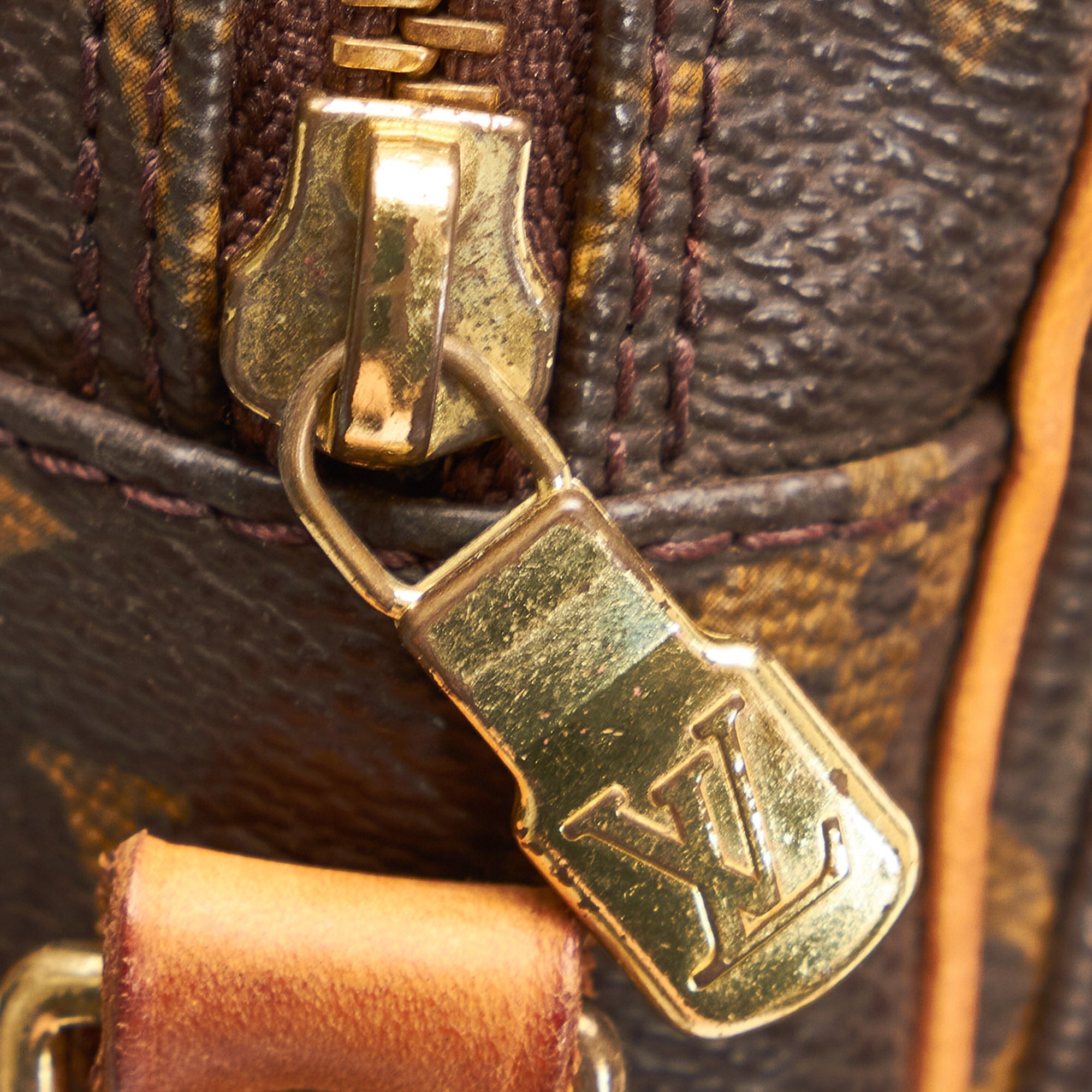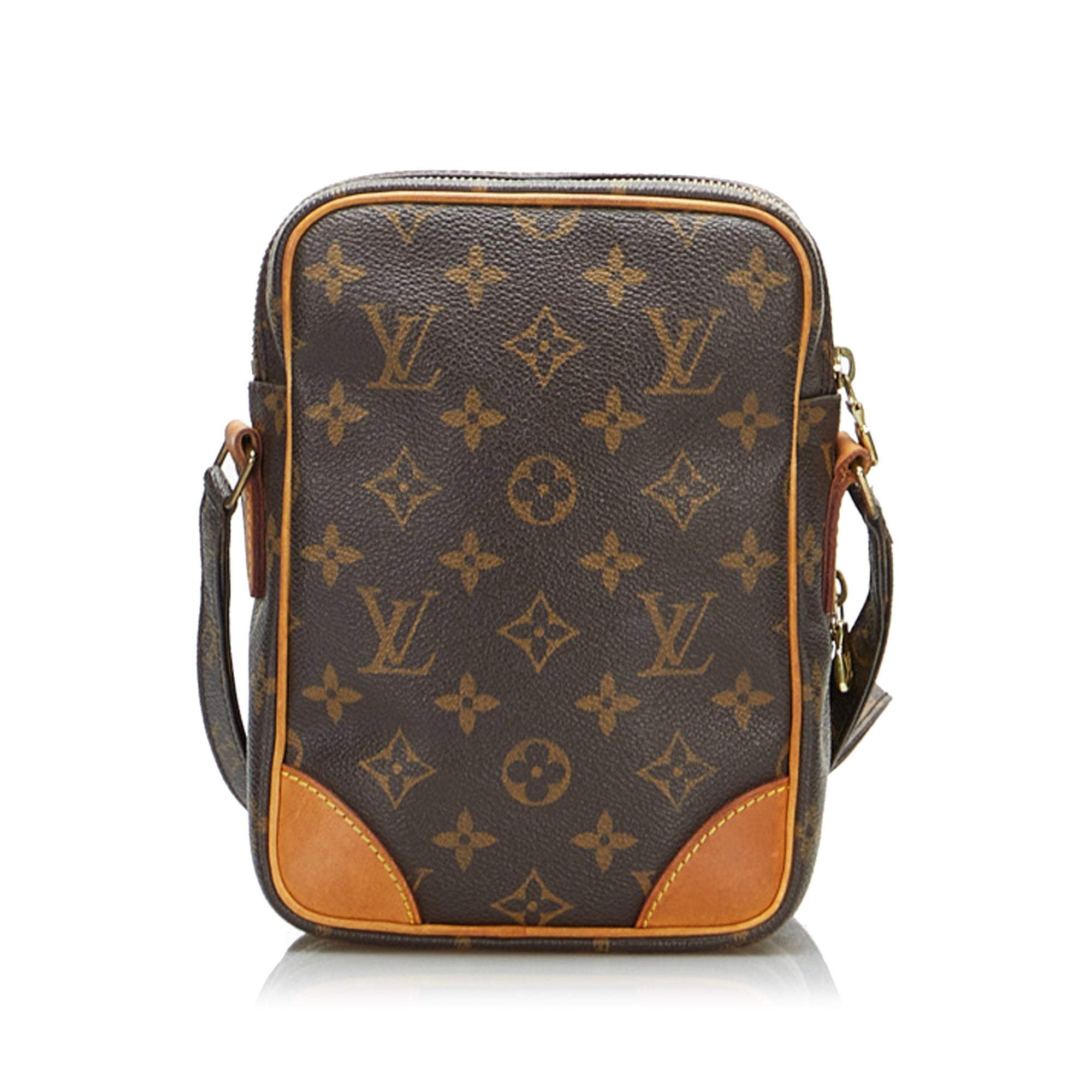 This LV Amazon is made from Monogram Canvas and features brown leather trim, a zippered front compartment, a zippered opening, and a zippered interior compartment. The Bag is best worn across the body and features an adjustable length Monogram Canvas shoulder strap for this purpose.