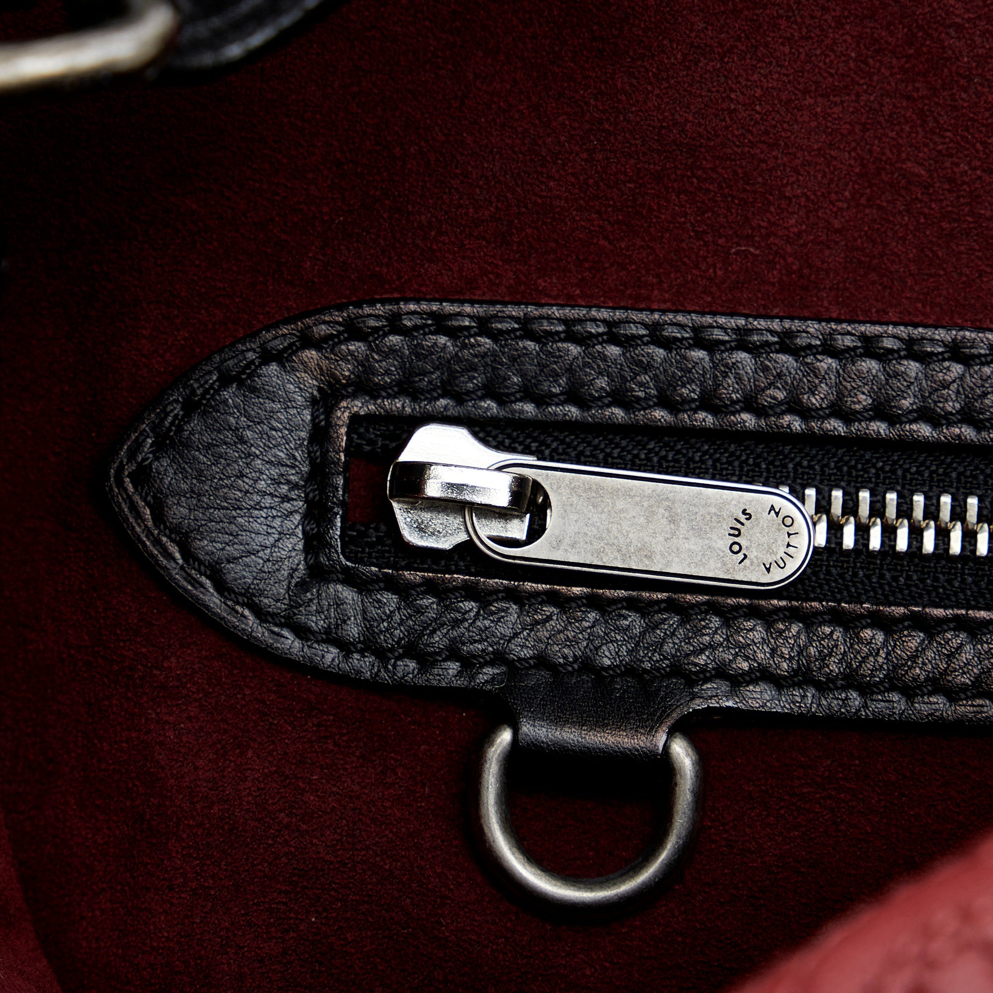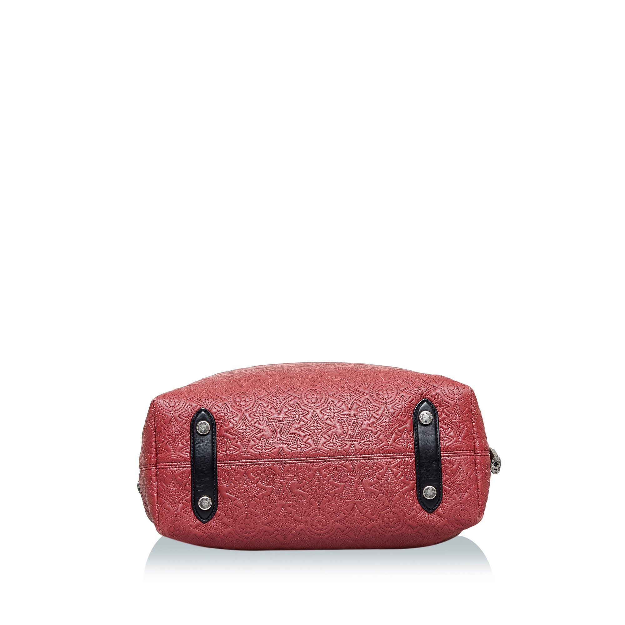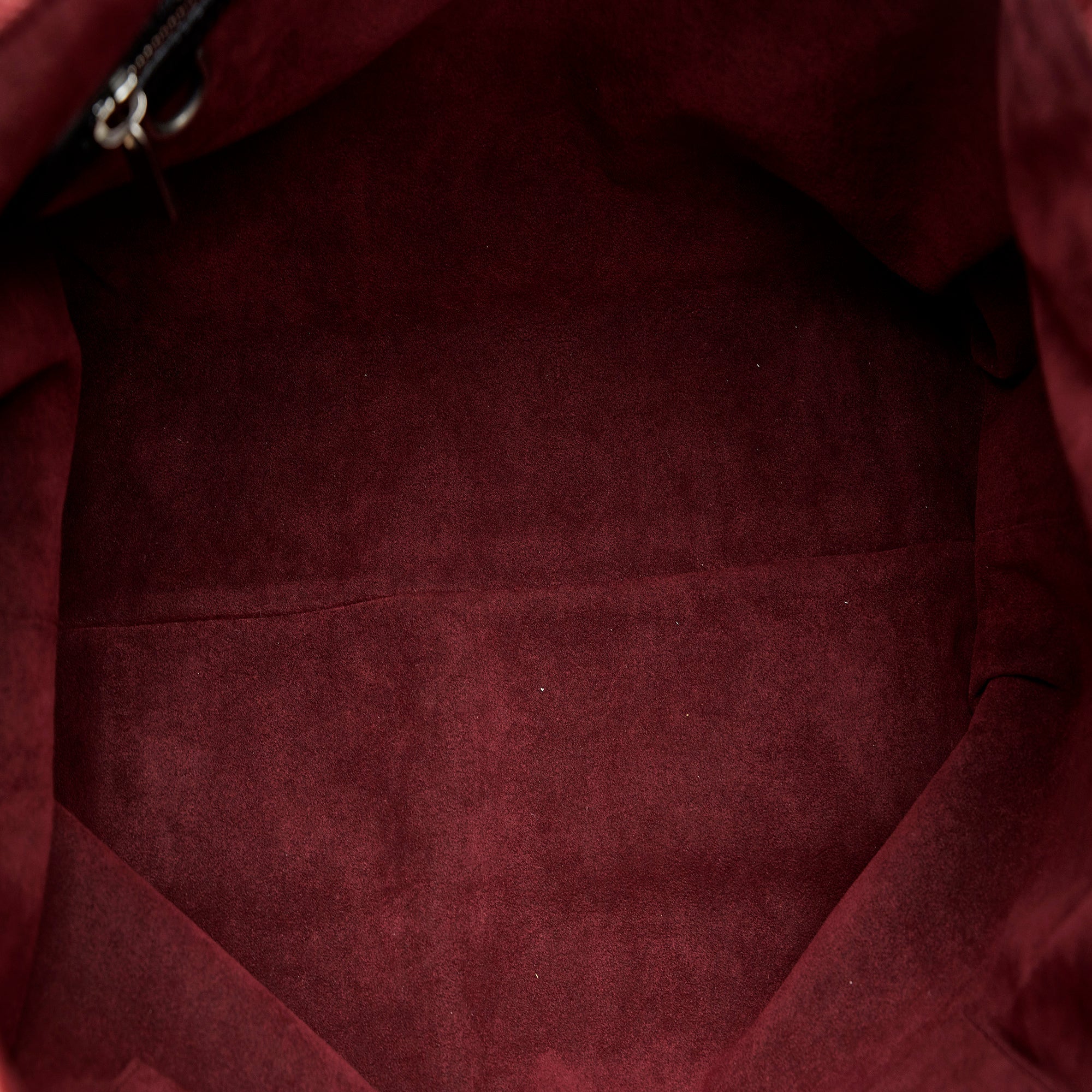 The beautiful Antheia GM handbag has a body made of pink embossed lambskin leather with a black flat leather handle and silver details and an open top. Inside there is a compartment with zipper closure. The Bag can be worn over the shoulder or over the arm.