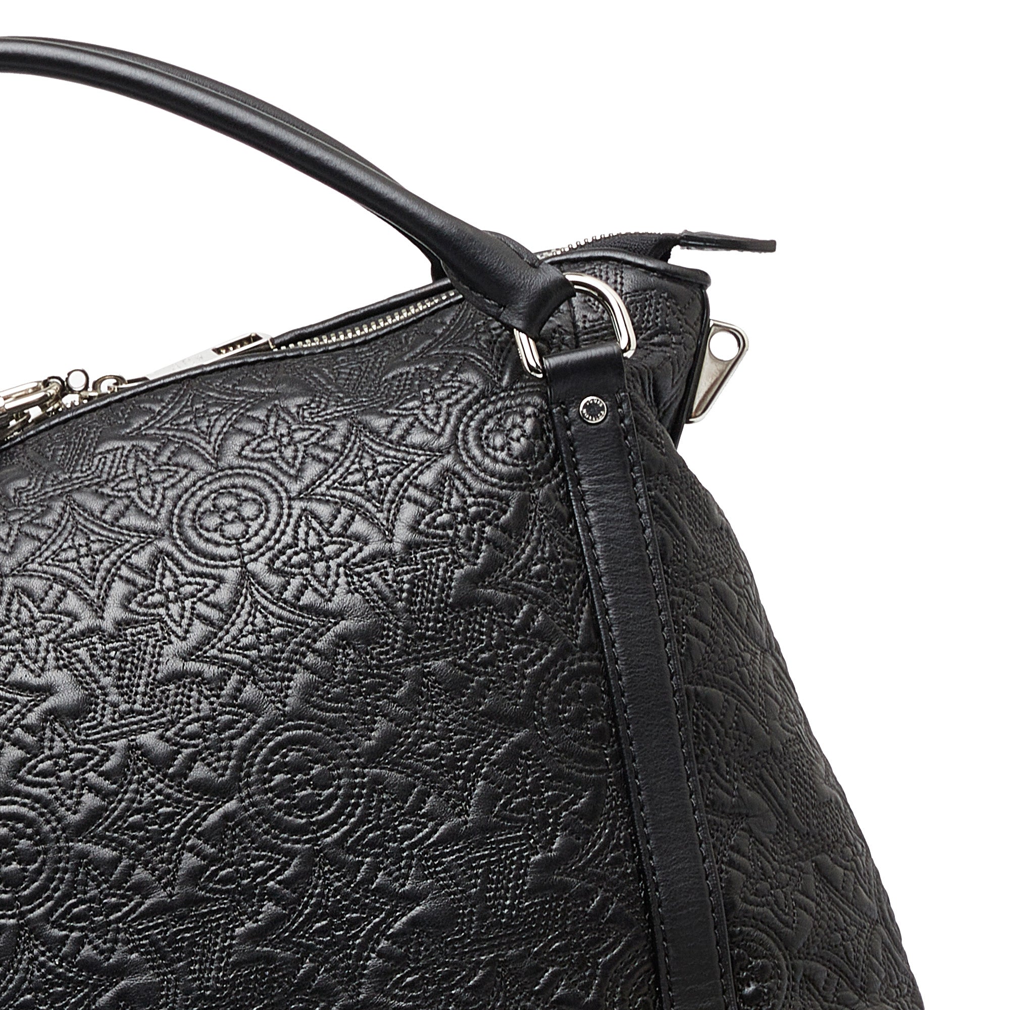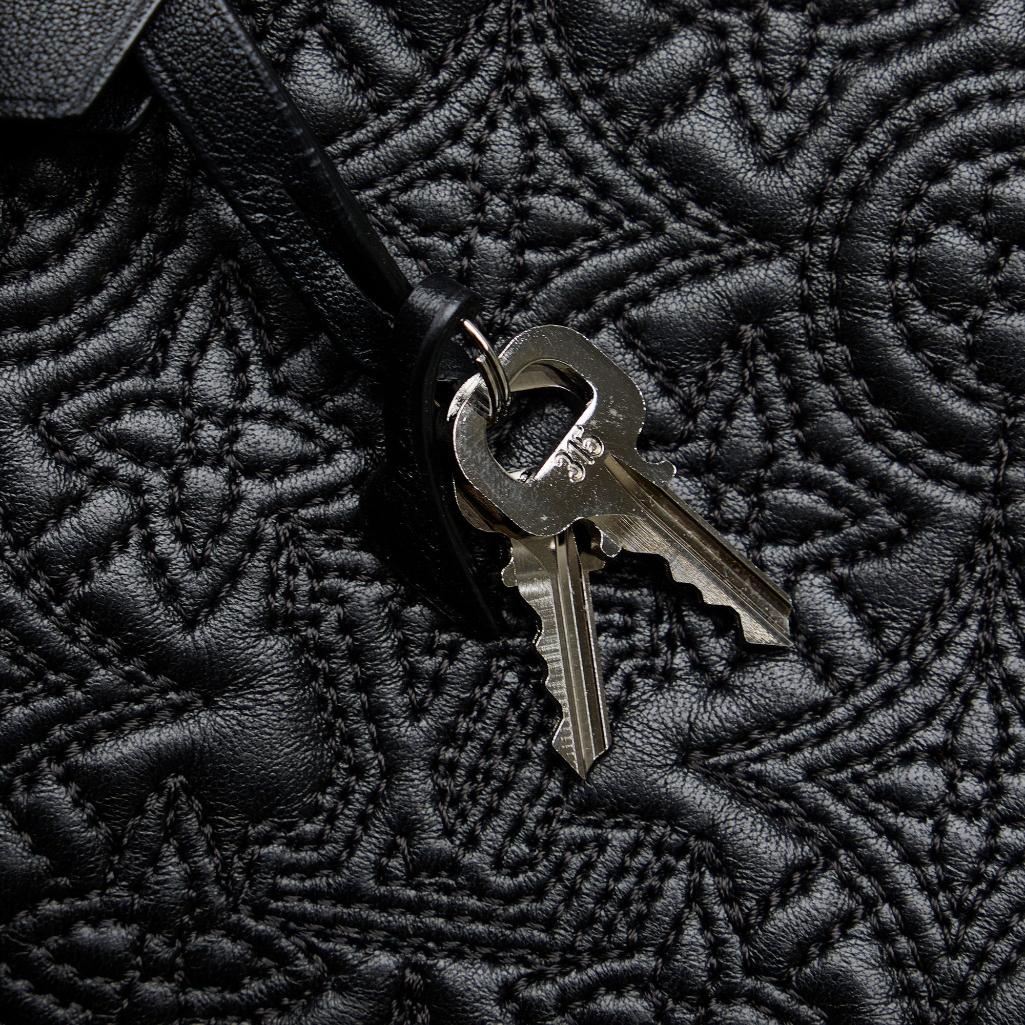 The stunning Antheia Ixia PM features a black embroidered lambskin leather body with rolled leather handles and silver-tone detailing, a removable flat strap, and a zippered top closure. Inside there is a zippered compartment. The Bag can be worn over the shoulder or over the arm.