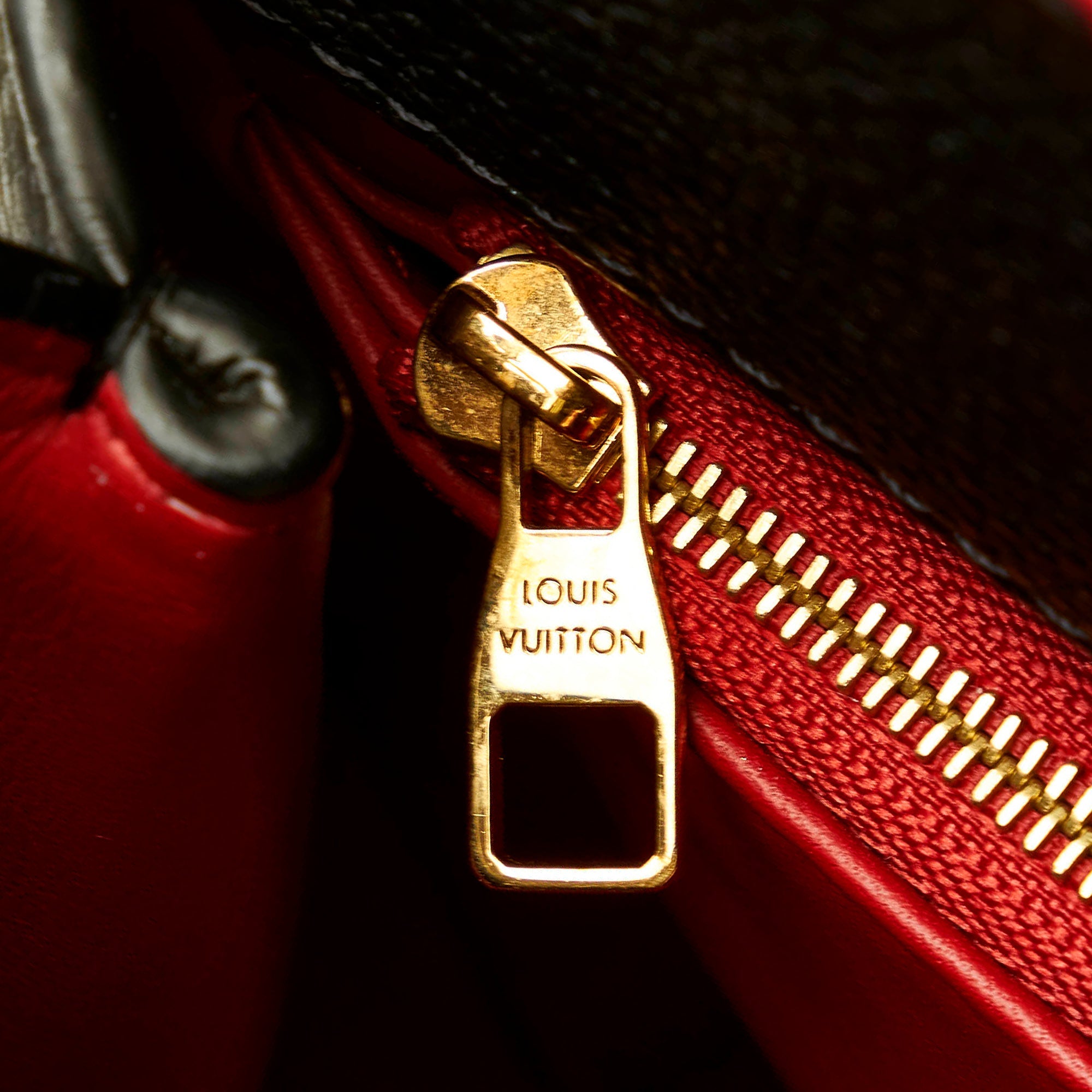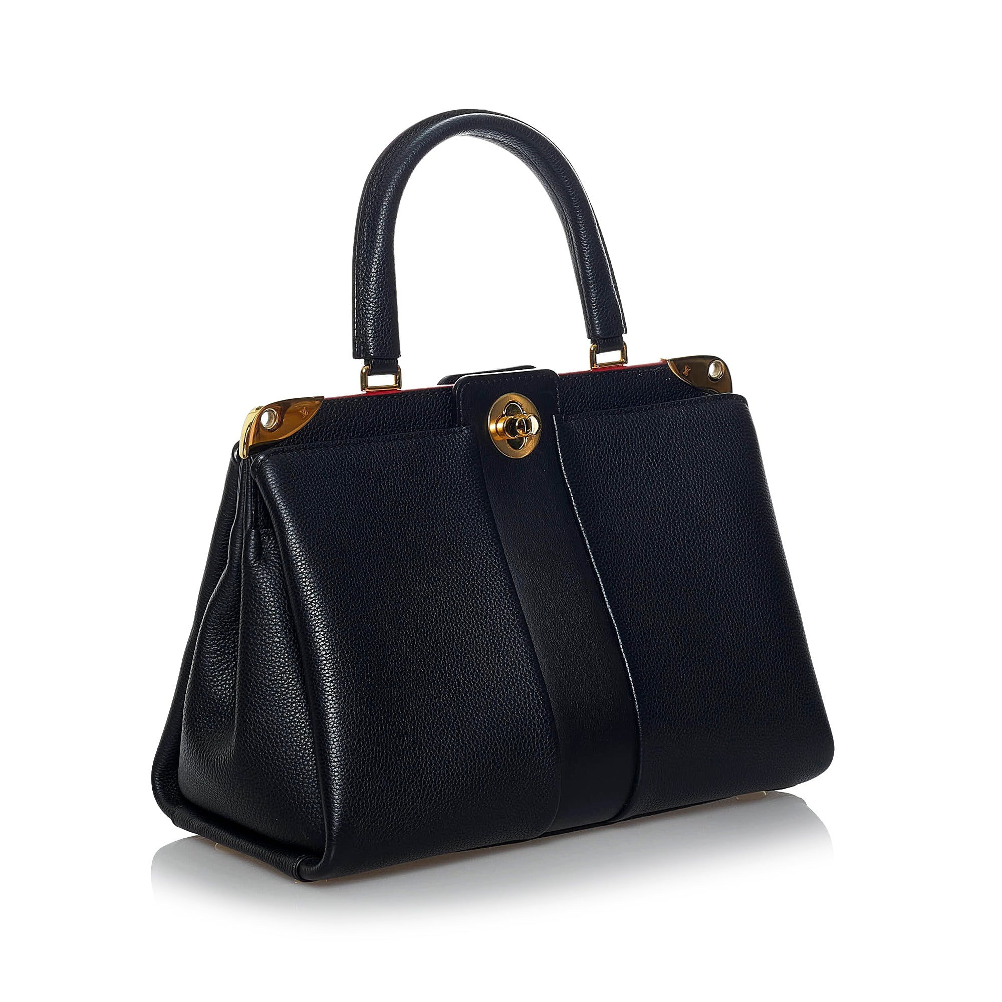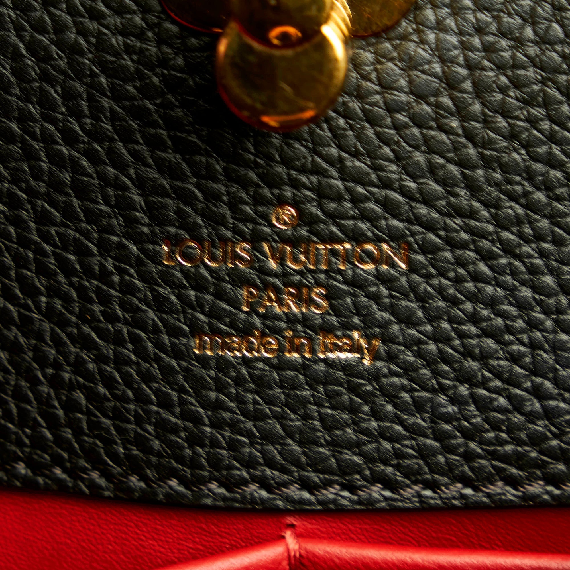 Diese elegante LV Astrid wurde aus schwarzem, genarbtem Veau Nuage Leder gefertigt und besitzt goldene Beschläge, je einen goldenen Monogram Flower Dreh- und Magnetverschluss, einen Innenraum aus rotem Leder mit einem Mittelfach mit Reissverschluss sowie gerollte Henkel aus Leder und einen abnehmbaren Schulterriemen aus Leder, der an den Löchern der goldenen Beschläge befestigt werden kann. Timeless!