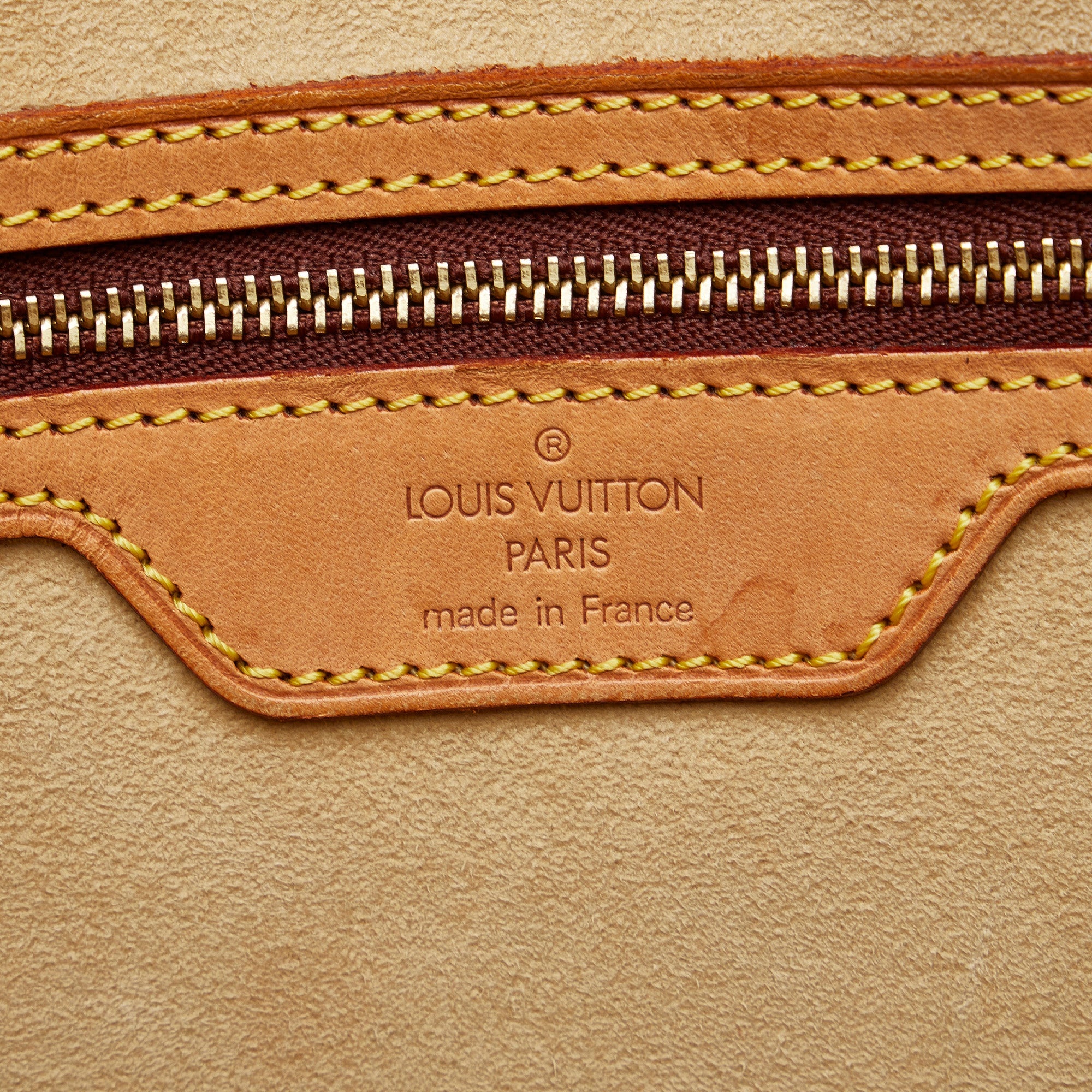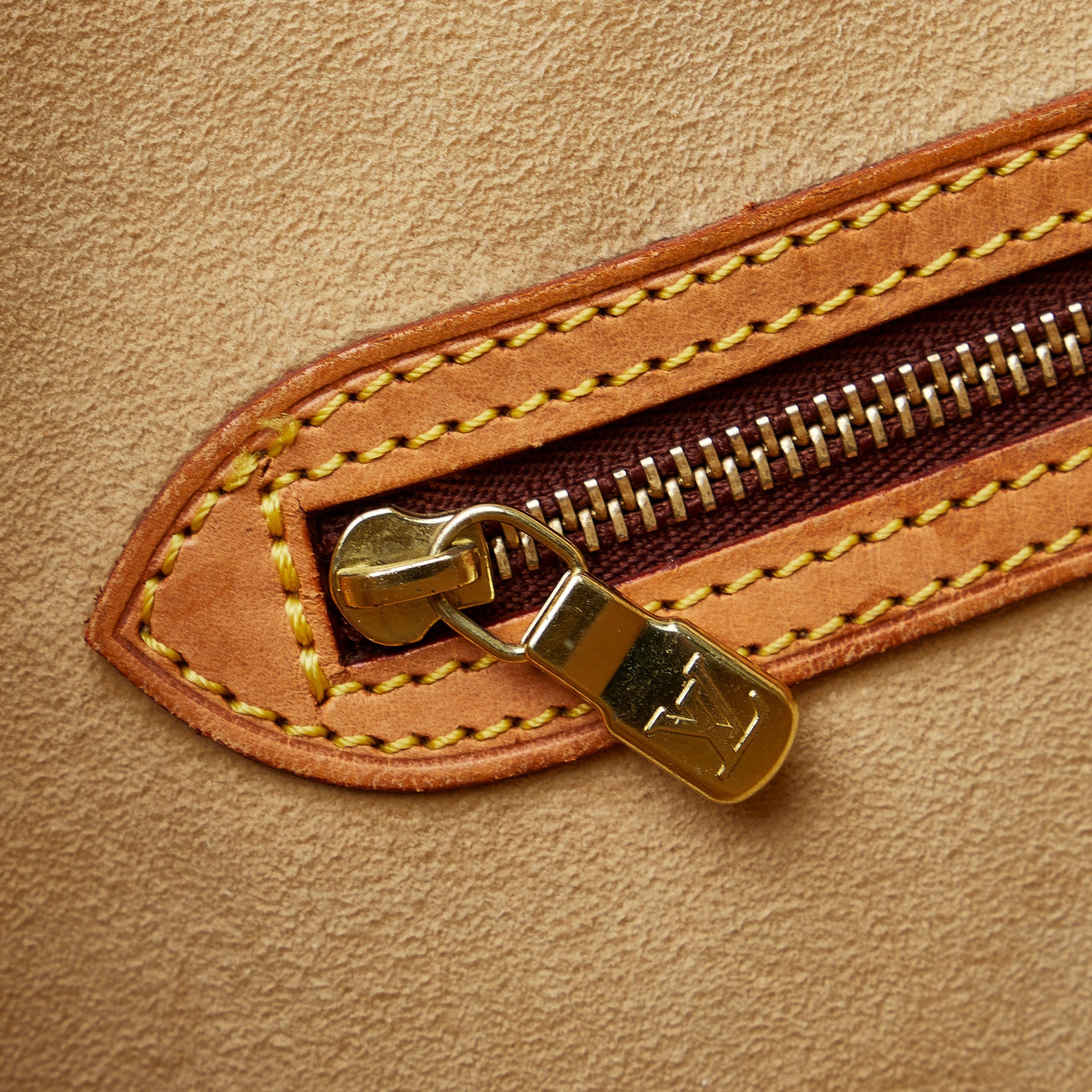 This LV Babylone was made from Monogram Canvas. The Bag features brown vachetta leather trim as well as shoulder straps, gold studs and rings, a zippered top opening, and zippered and slip pockets inside. The Bag is best worn over the shoulder.