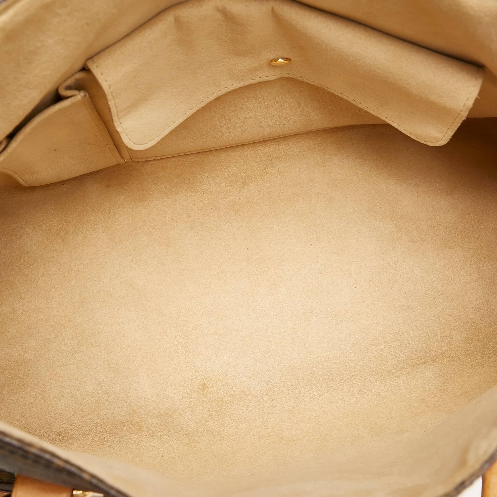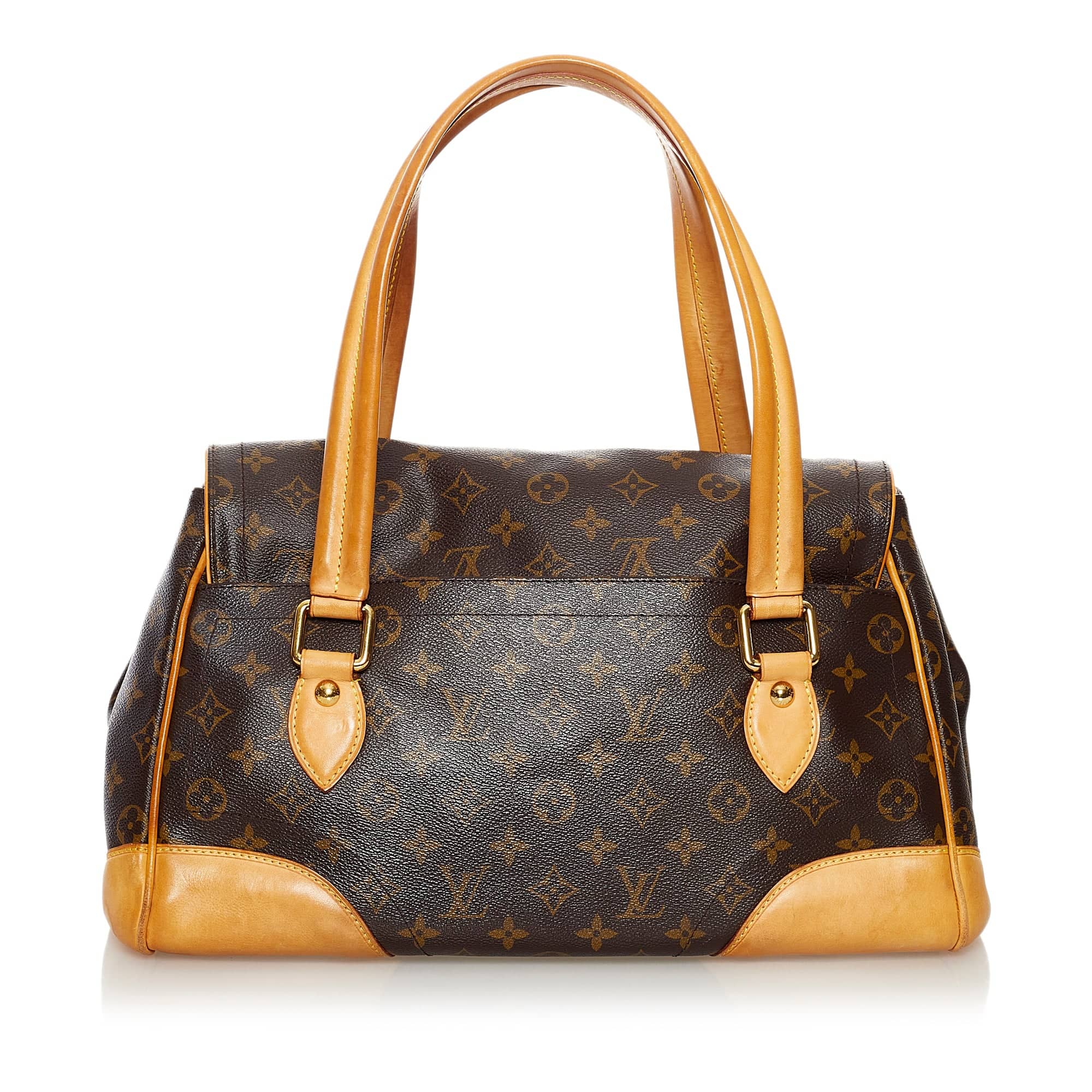 This LV Beverly in the large variant GM leaves an impression. the Bag Was made of brown monogram canvas and has caps and handles made of vachetta leather and golden details. The front flap is closed via a striking, golden closure. On the back the Bag An outer piece of plug. In the interior, the Bag A piece of plug with a flap and an open compartment. the Bag is guided in the hand or in the arm.