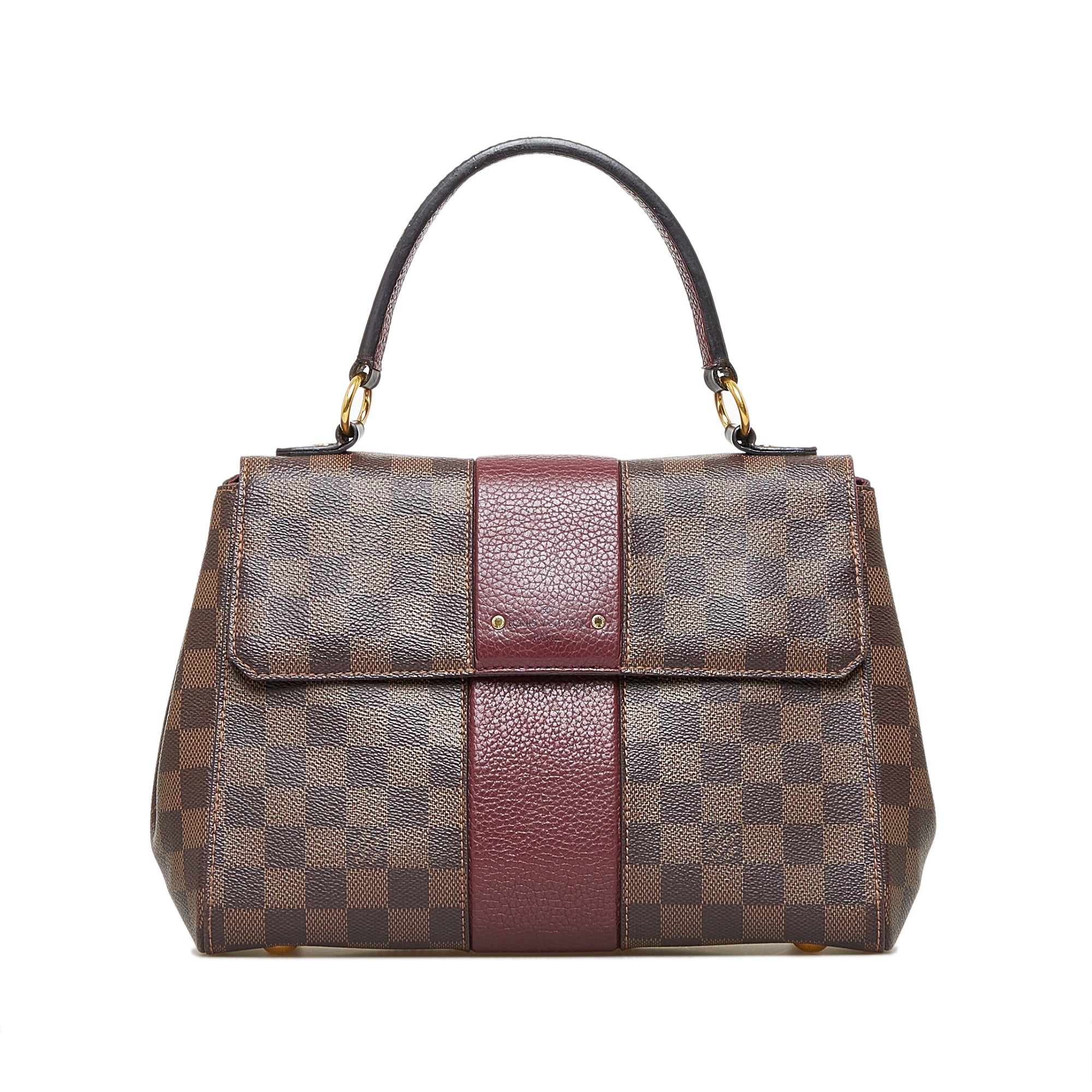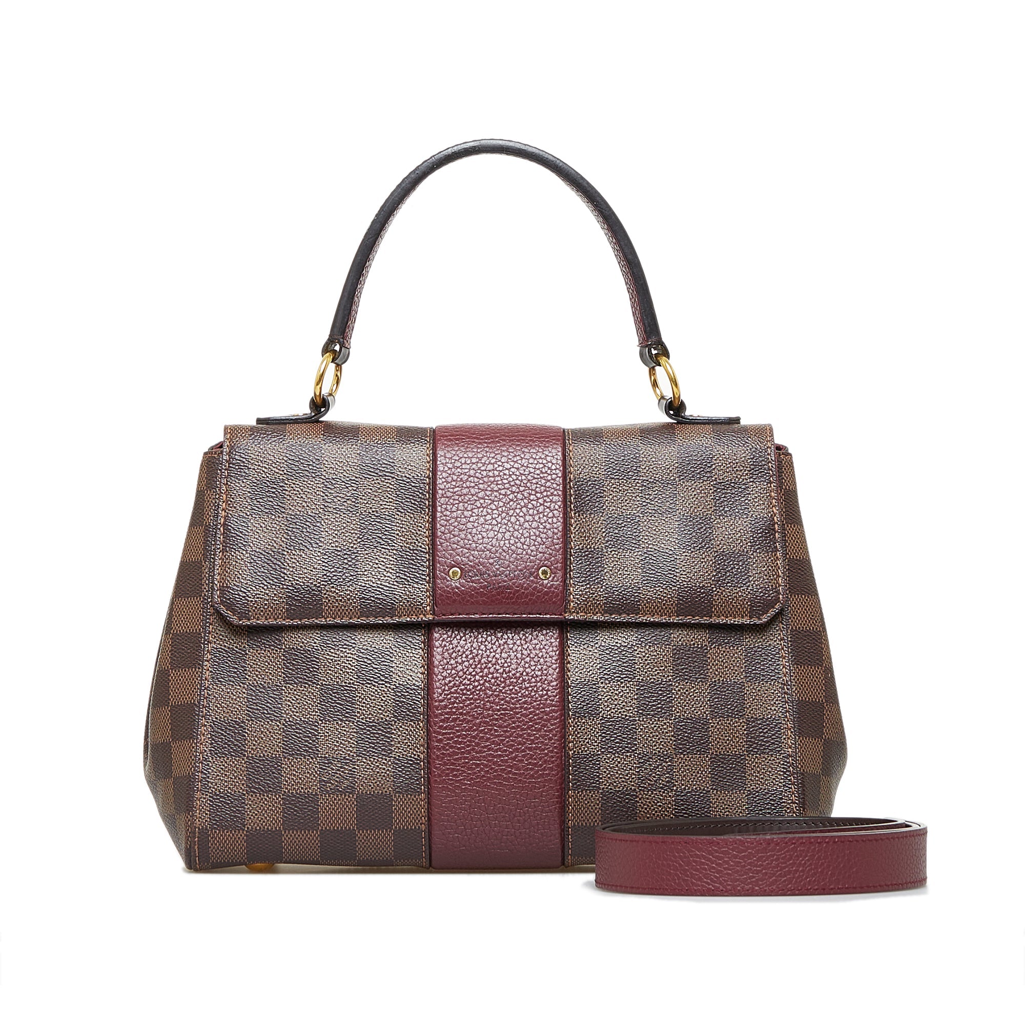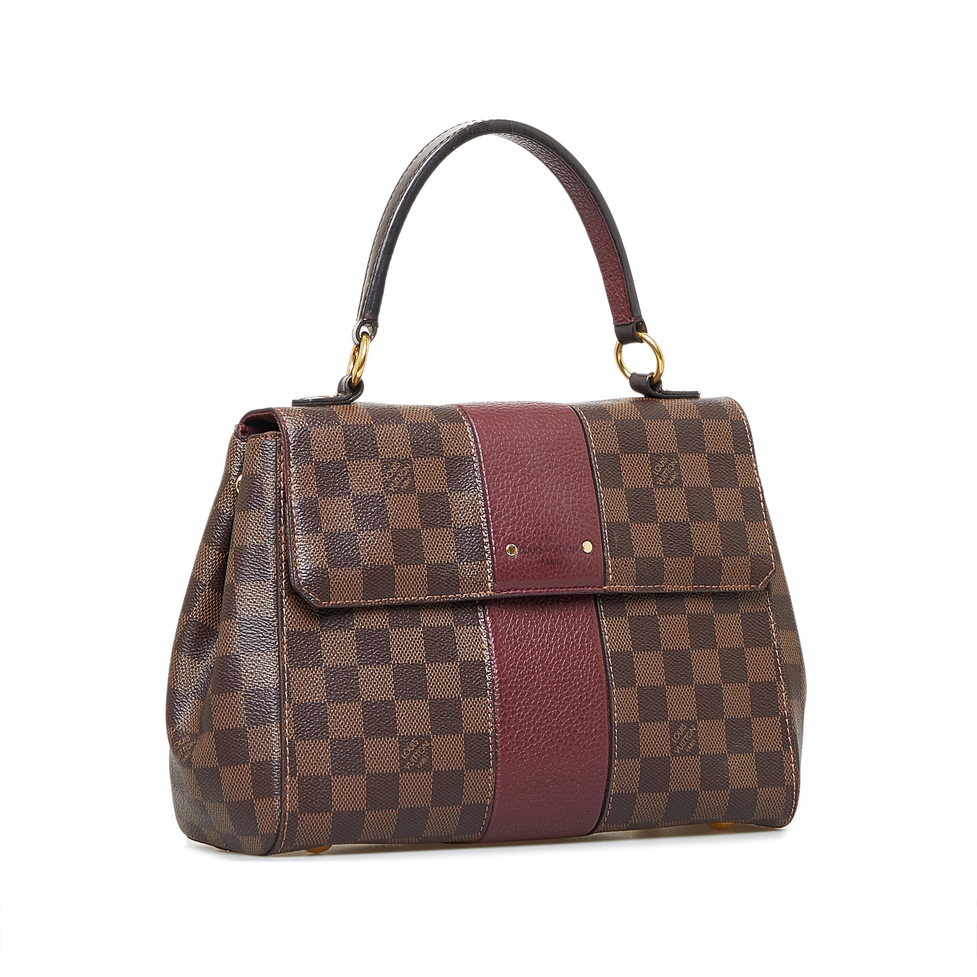 The stunning LV Bond Street has a damier plain canvas body with a pink stripe and a fold over top with magnetic closure. It has a flat leather handle, a detachable flat strap with gold-tone details and slip pockets on the inside. The Bag is best worn over the shoulder or arm.