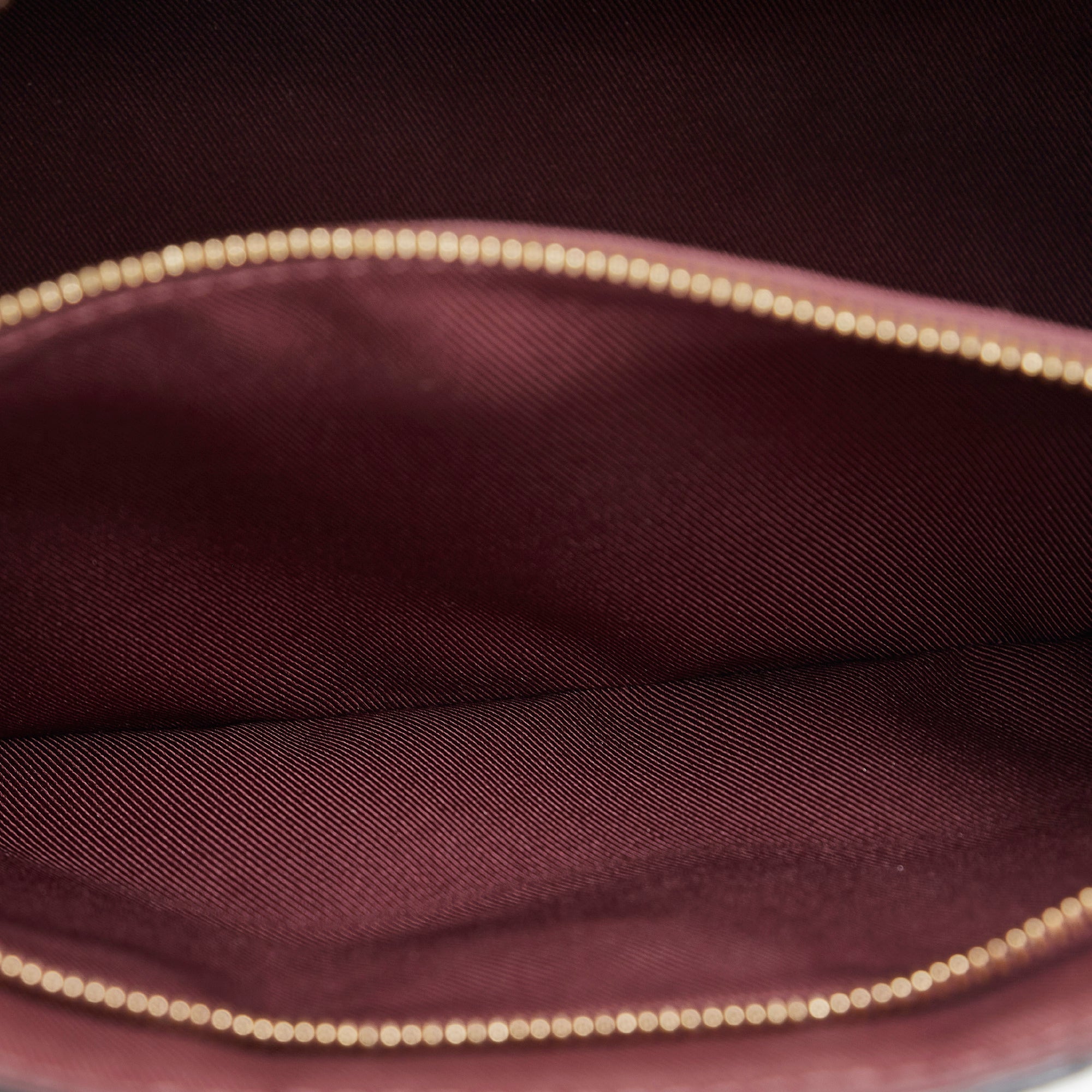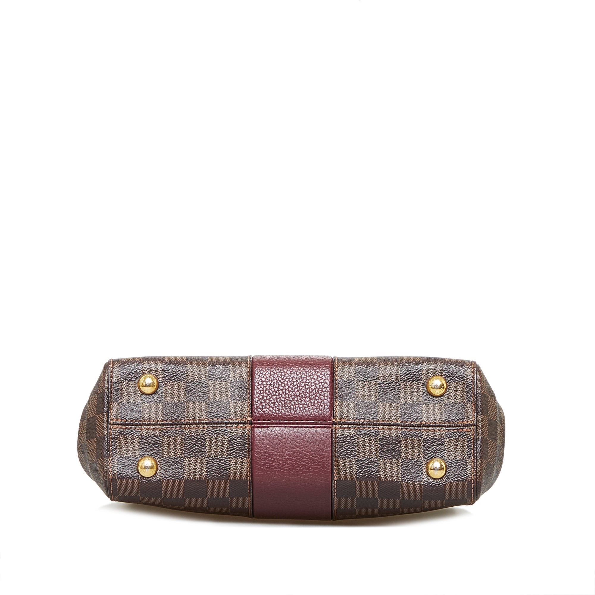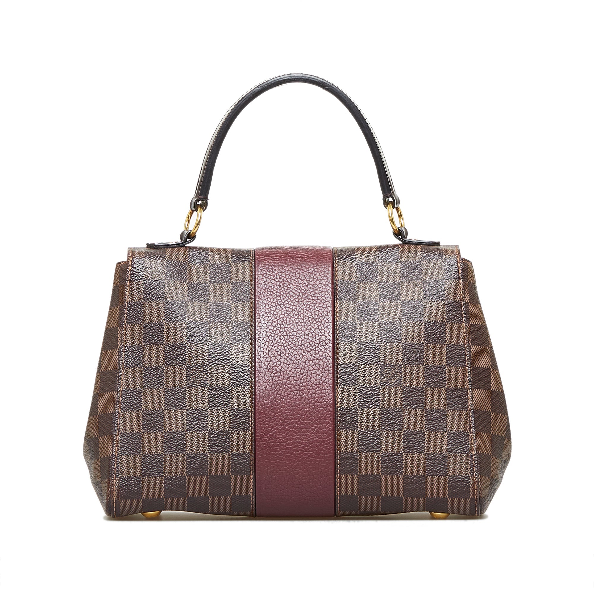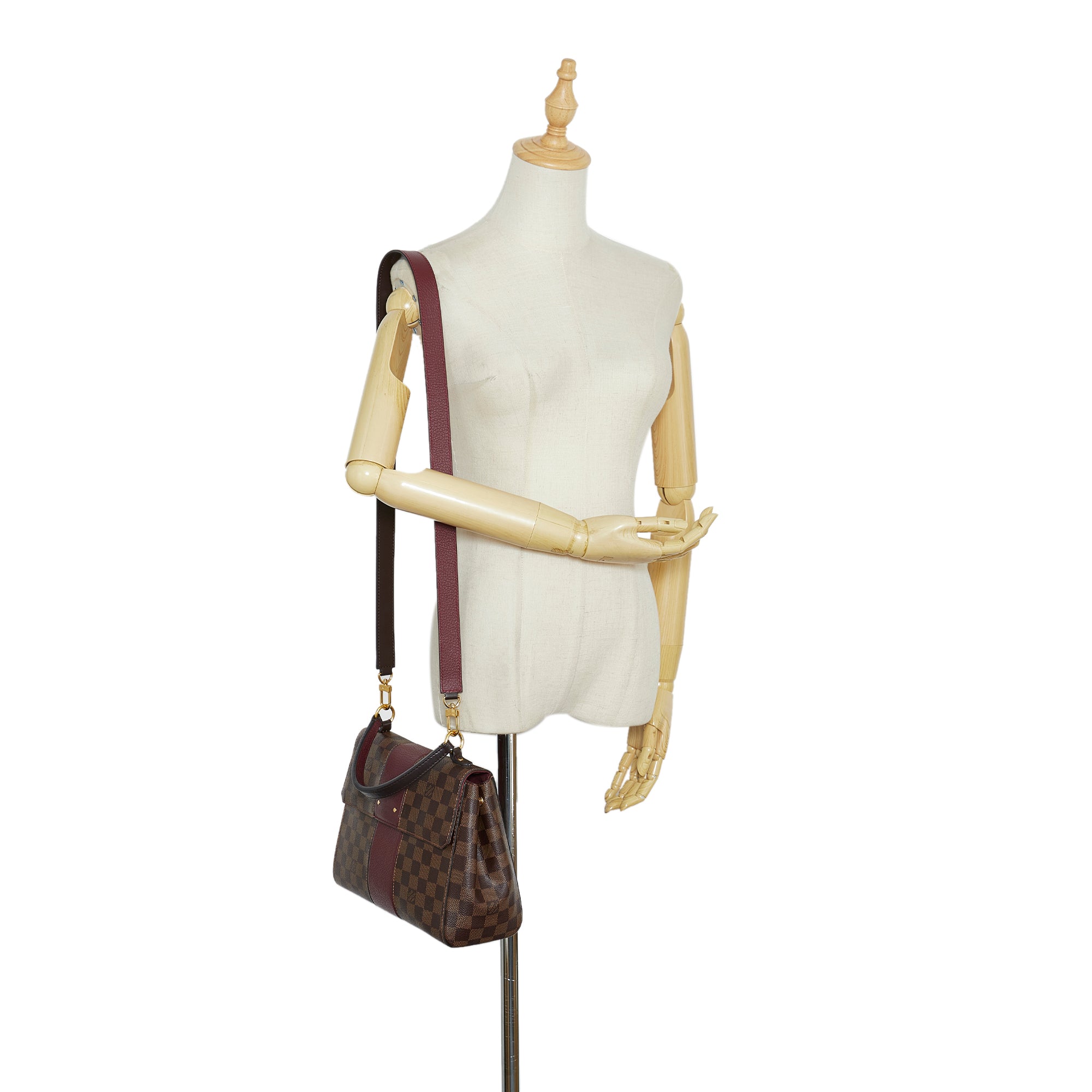 The stunning LV Bond Street has a damier plain canvas body with a pink stripe and a fold over top with magnetic closure. It has a flat leather handle, a detachable flat strap with gold-tone details and slip pockets on the inside. The Bag is best worn over the shoulder or arm.