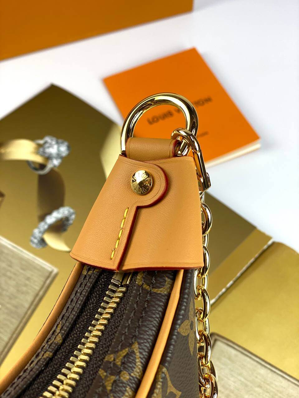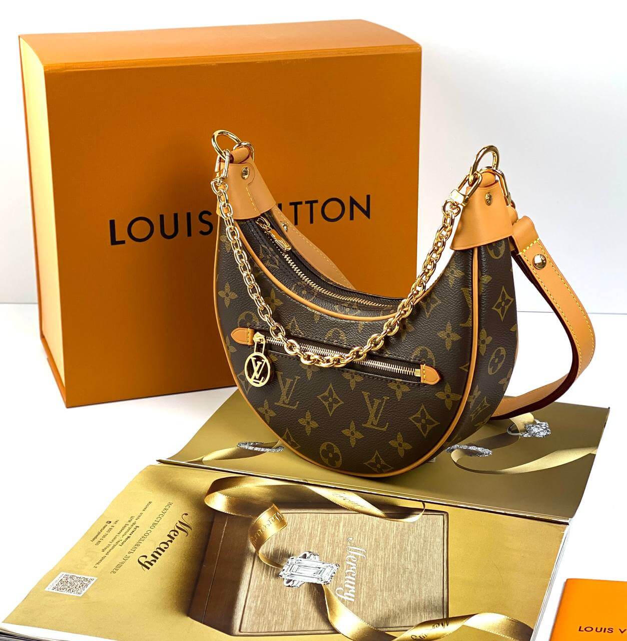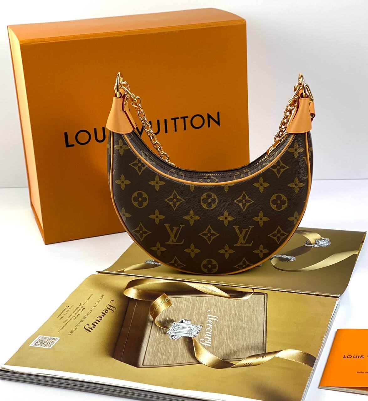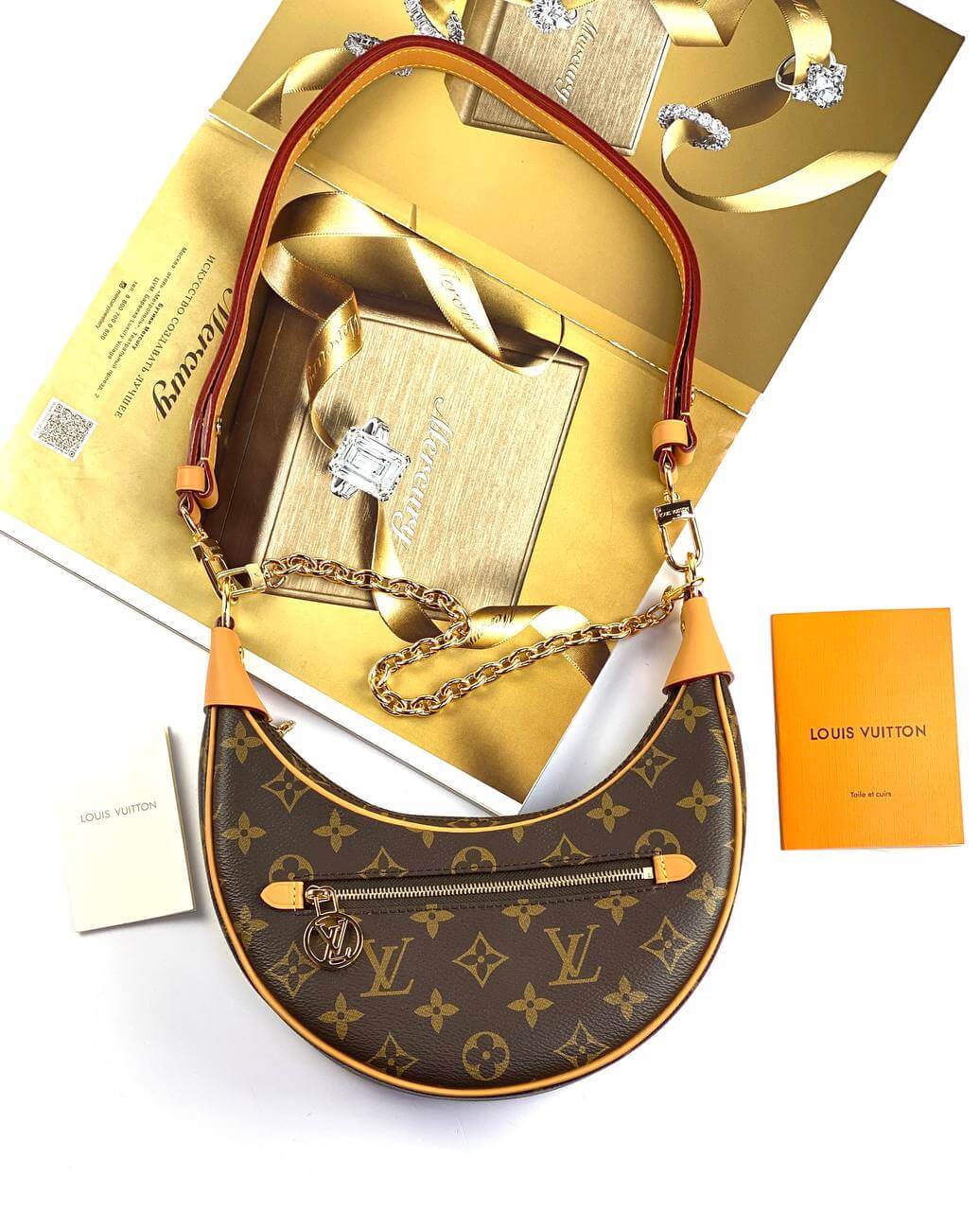 Designed by Nicolas Ghesquière for the Cruise 2022 collection, the charming Loop baguette bag is crafted in the shape of a crescent moon. The design was inspired by an archival Croissant model. This compact accessory is completed with a chain and a leather belt, allowing you to create stylish variations of the look. An LV Circle slider adorns the zipper on the outer pocket.Pro