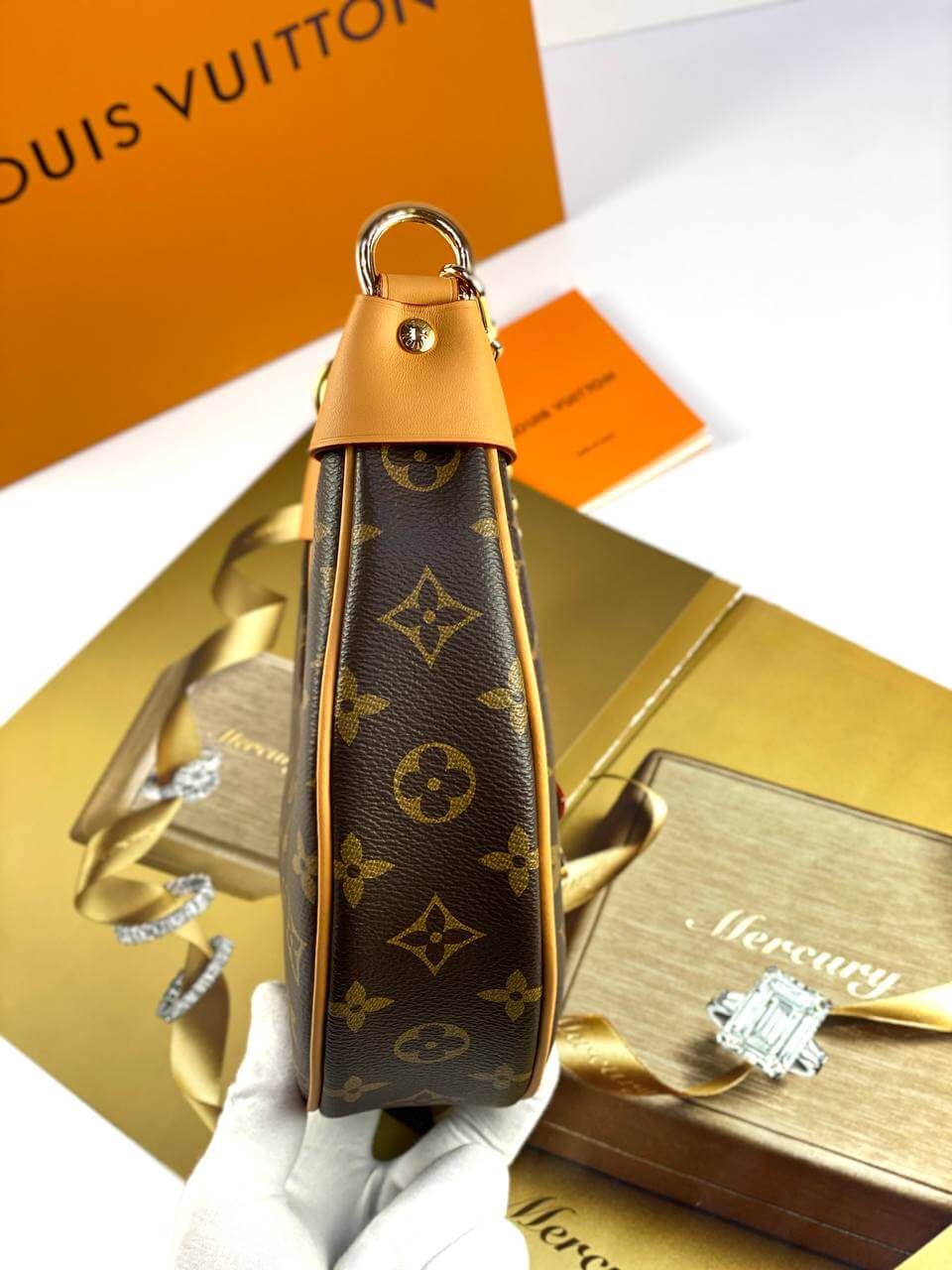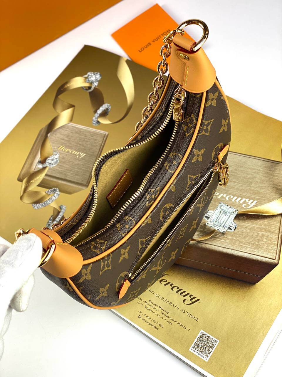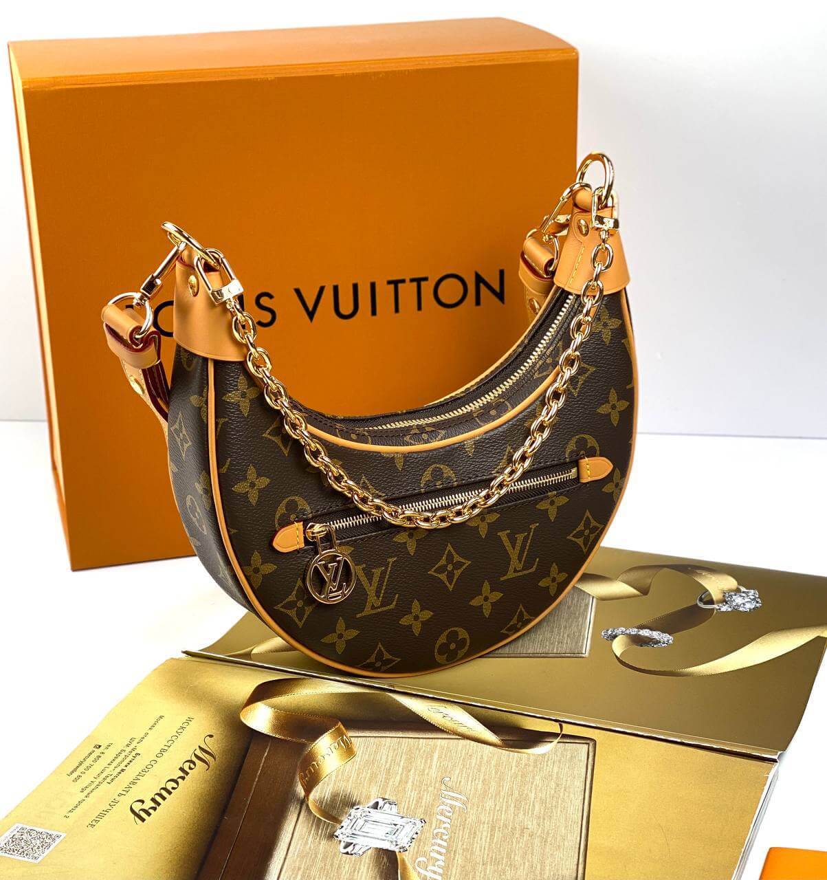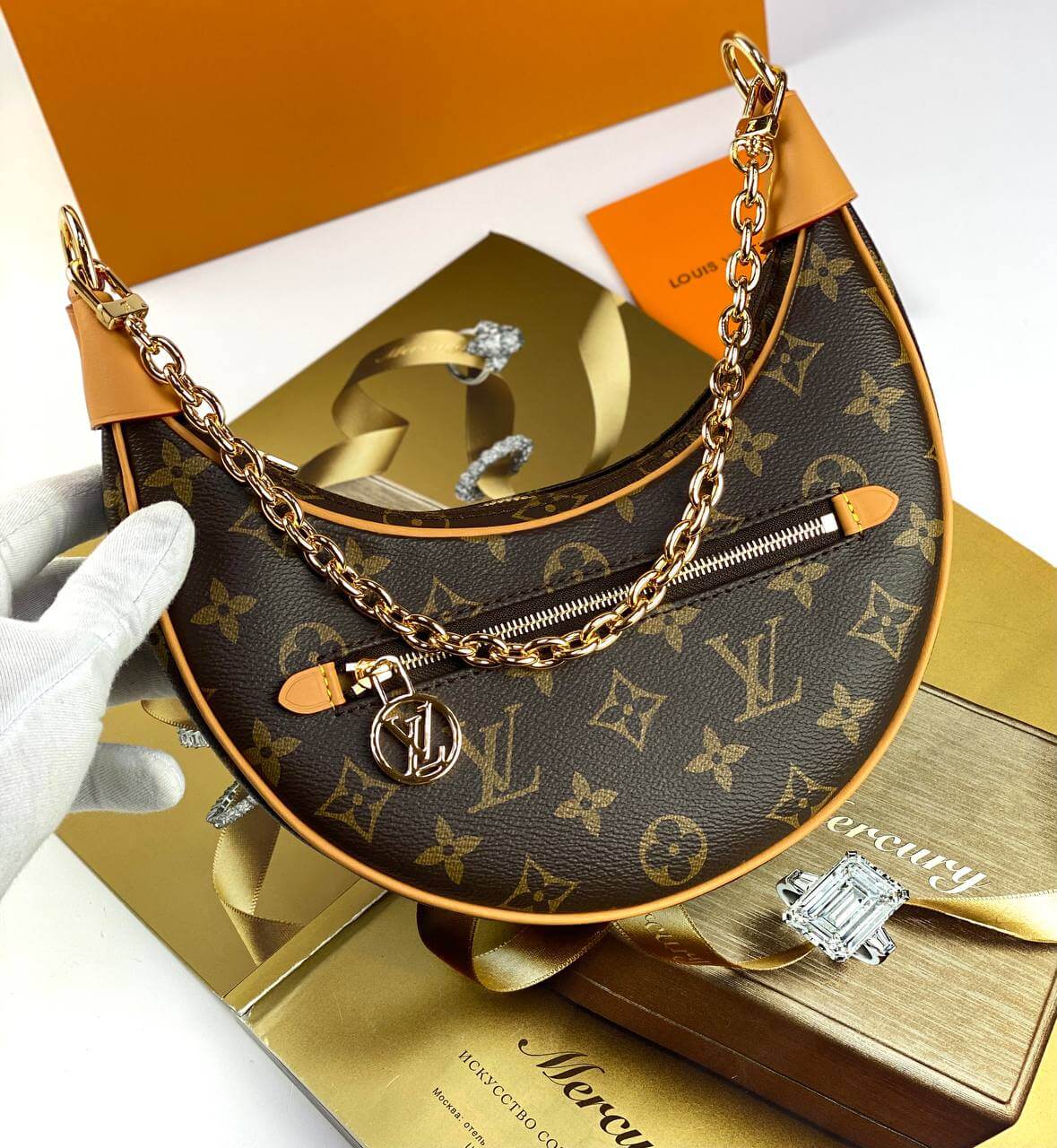 Designed by Nicolas Ghesquière for the Cruise 2022 collection, the charming Loop baguette bag is crafted in the shape of a crescent moon. The design was inspired by an archival Croissant model. This compact accessory is completed with a chain and a leather belt, allowing you to create stylish variations of the look. An LV Circle slider adorns the zipper on the outer pocket.Pro