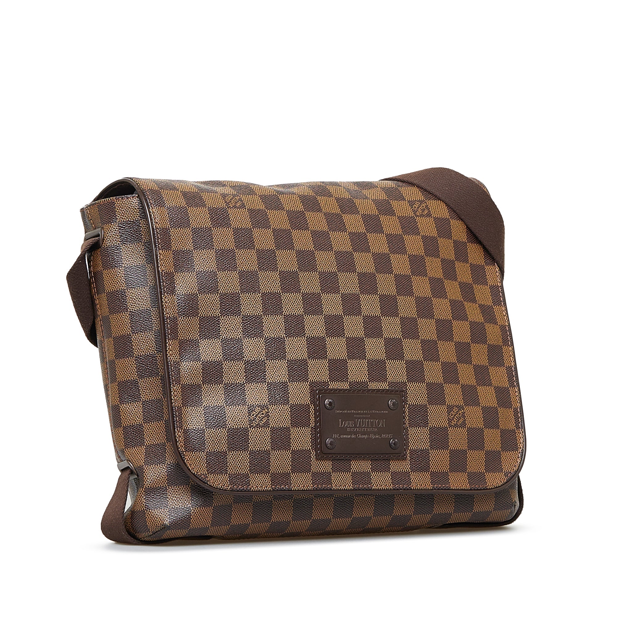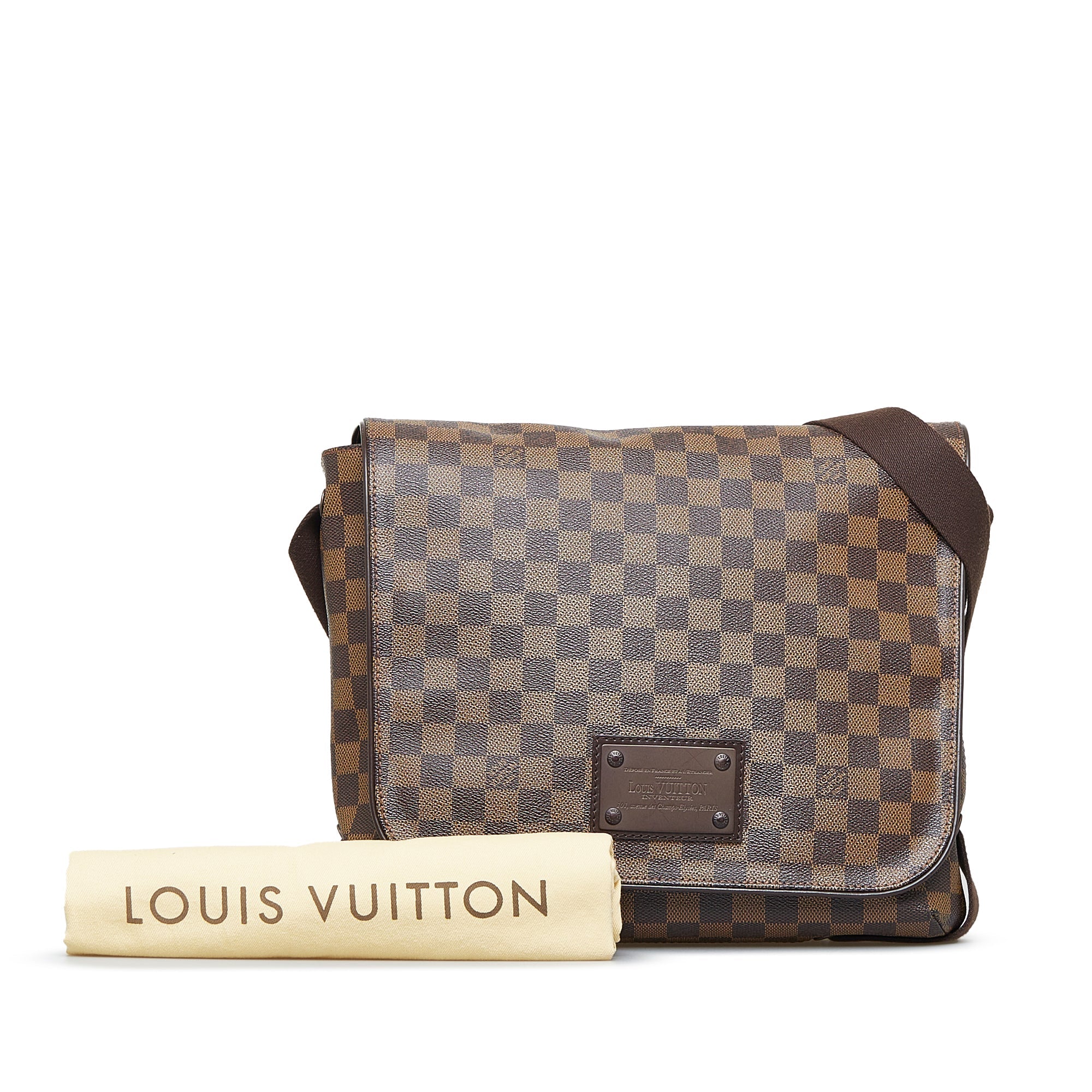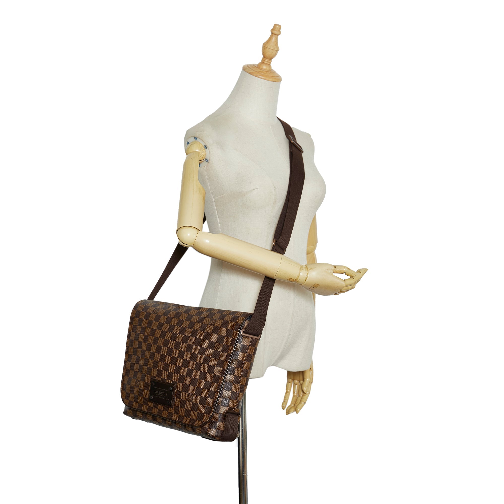 This LV Brooklyn in size MM is made of brown damier level canvas and is the perfect messenger bag. The Bag features brown leather trim and silver metal details. At the back, the Bag has an outer zippered compartment. The front flap closes magnetically. In the interior has the Bag open pockets. With its flat shoulder strap the Bag best worn crossbody.