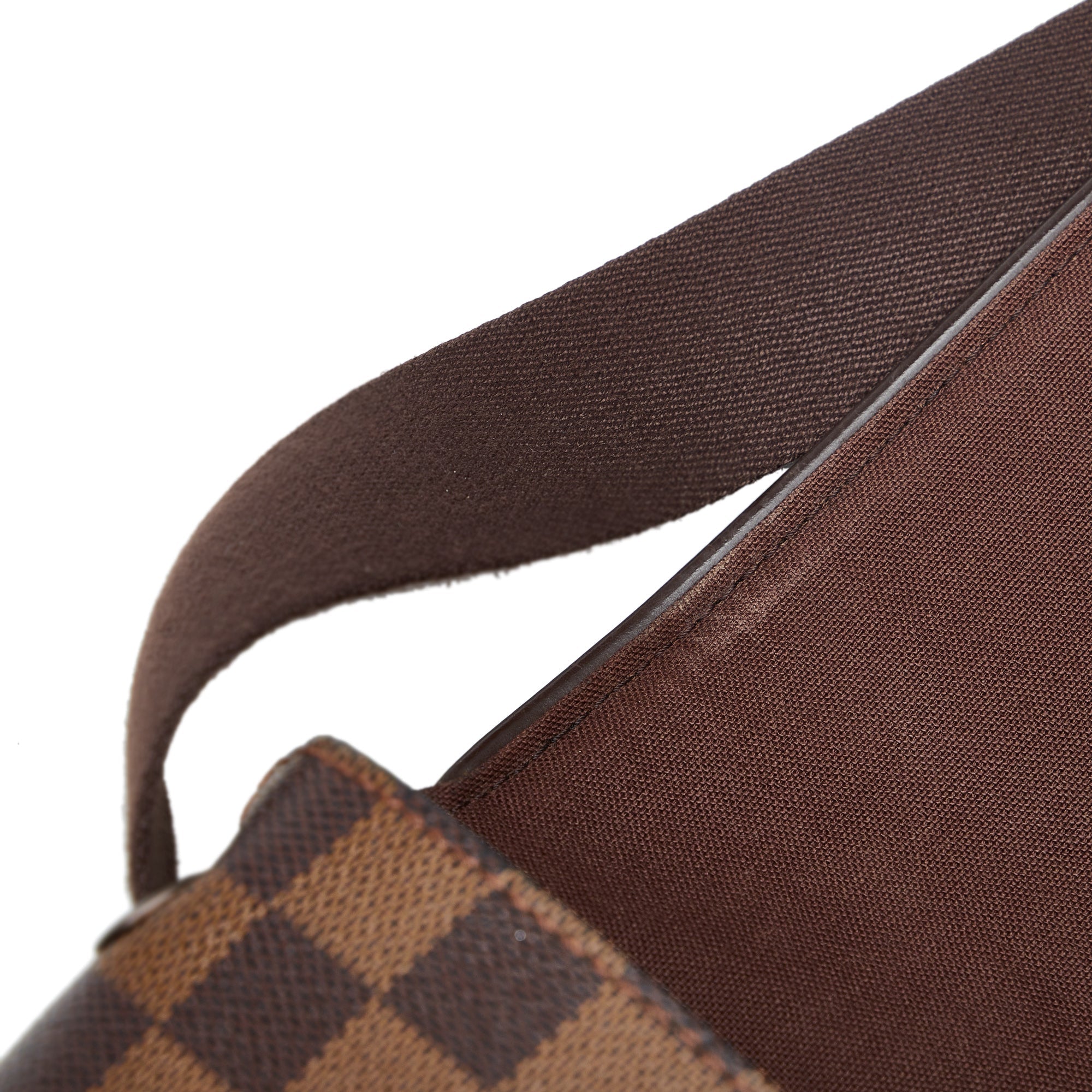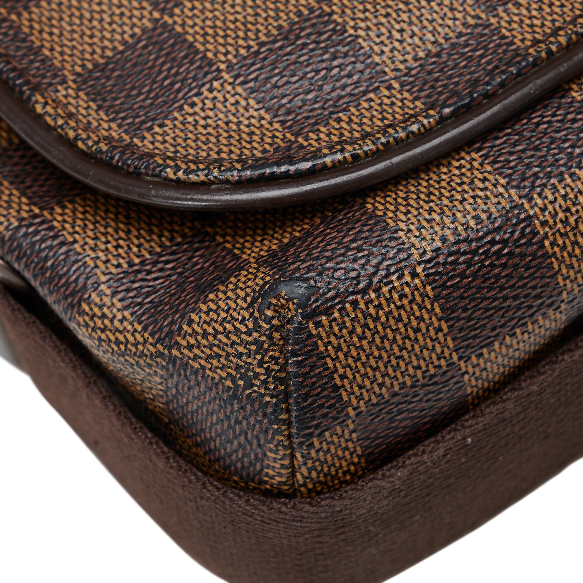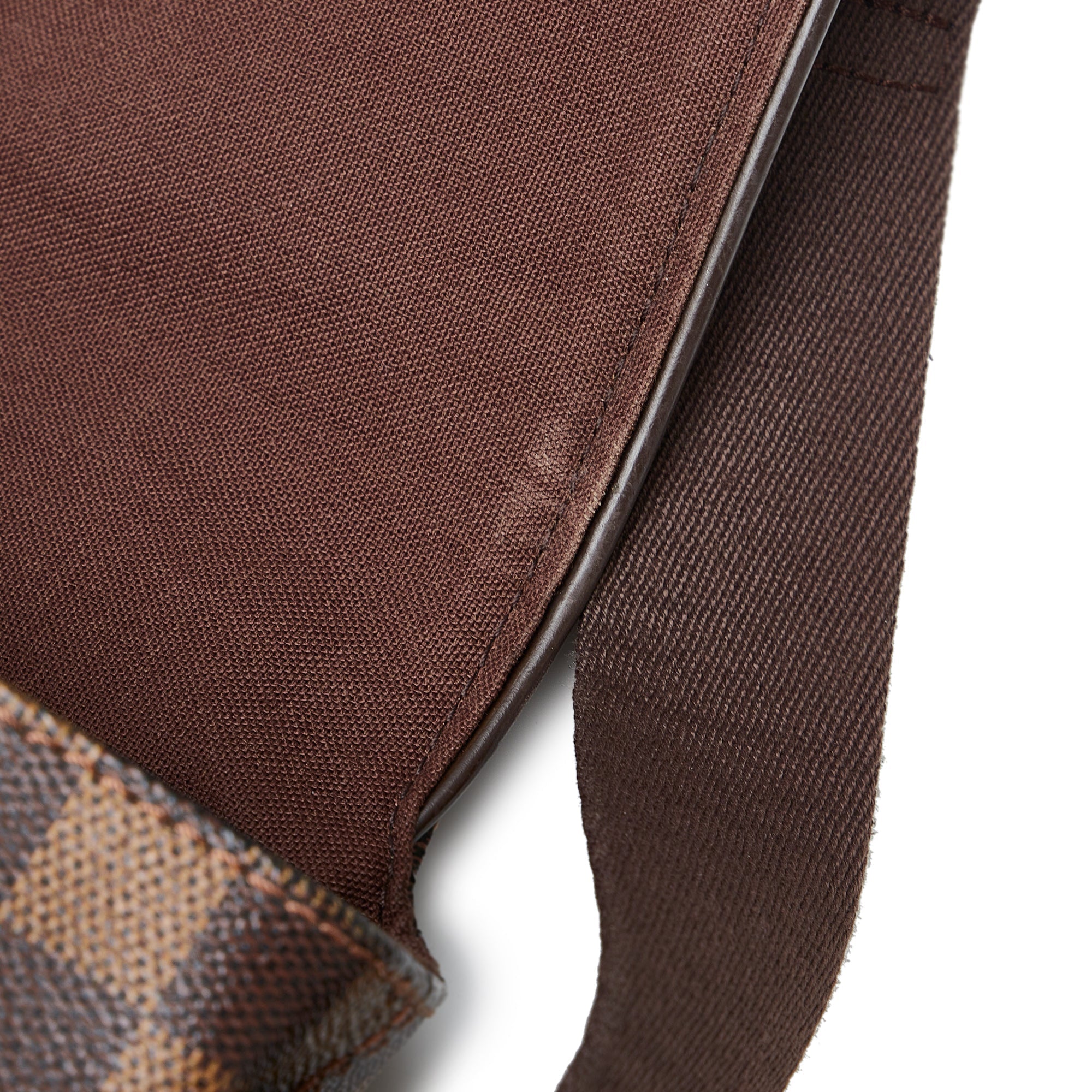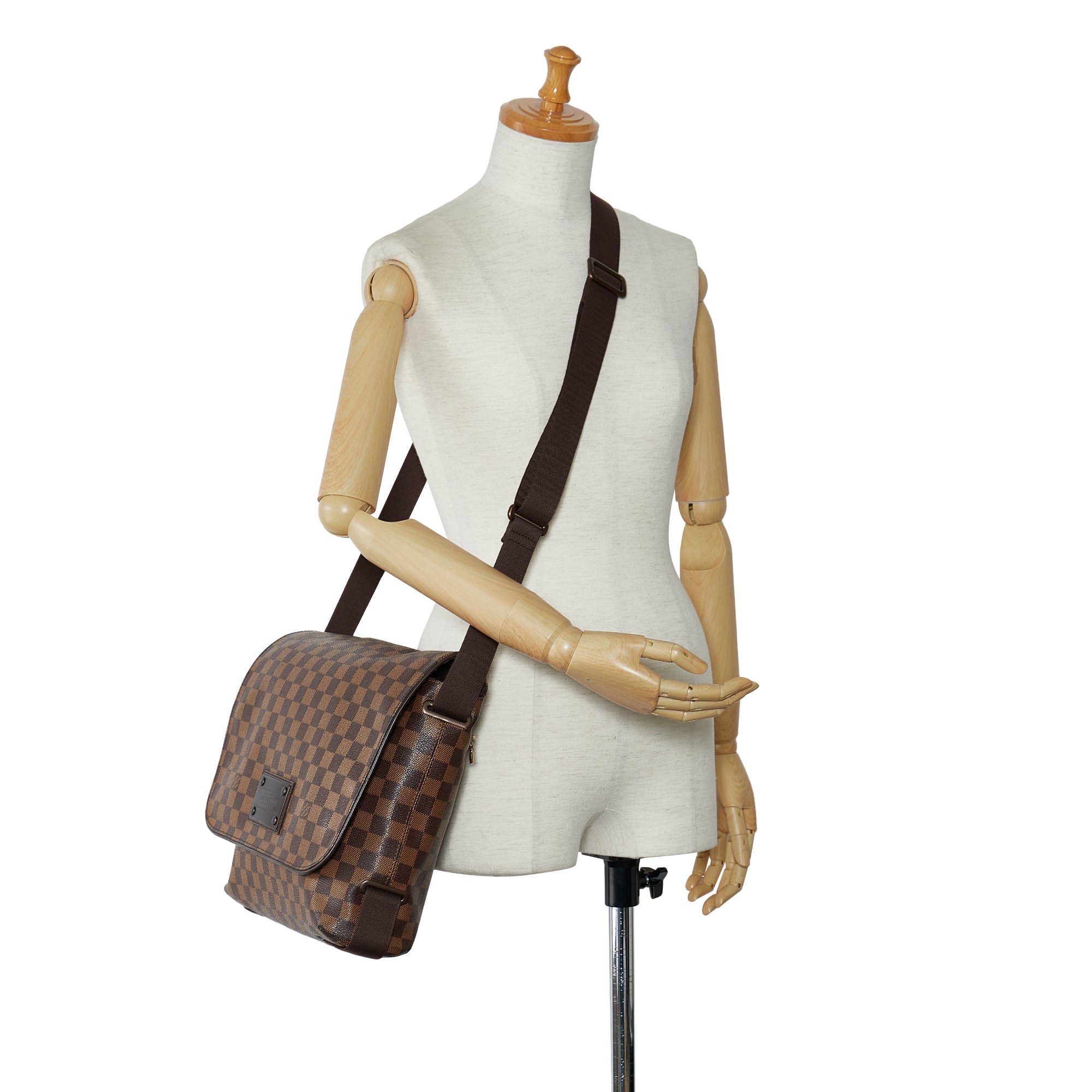 This LV Brooklyn in size MM is made of brown damier level canvas and is the perfect messenger bag. The Bag features brown leather trim. On the back has the Bag has an outer zippered compartment. The front flap is closed magnetically. In the interior has the Bag open pockets. With its flat shoulder strap the Bag best worn crossbody.