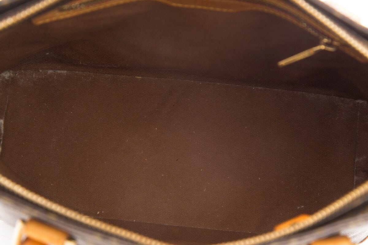 LV Brown Monogram Cabas Piano Tote. This item gently loved; staining on leather, patina on hardware, and discoloring on lining.
