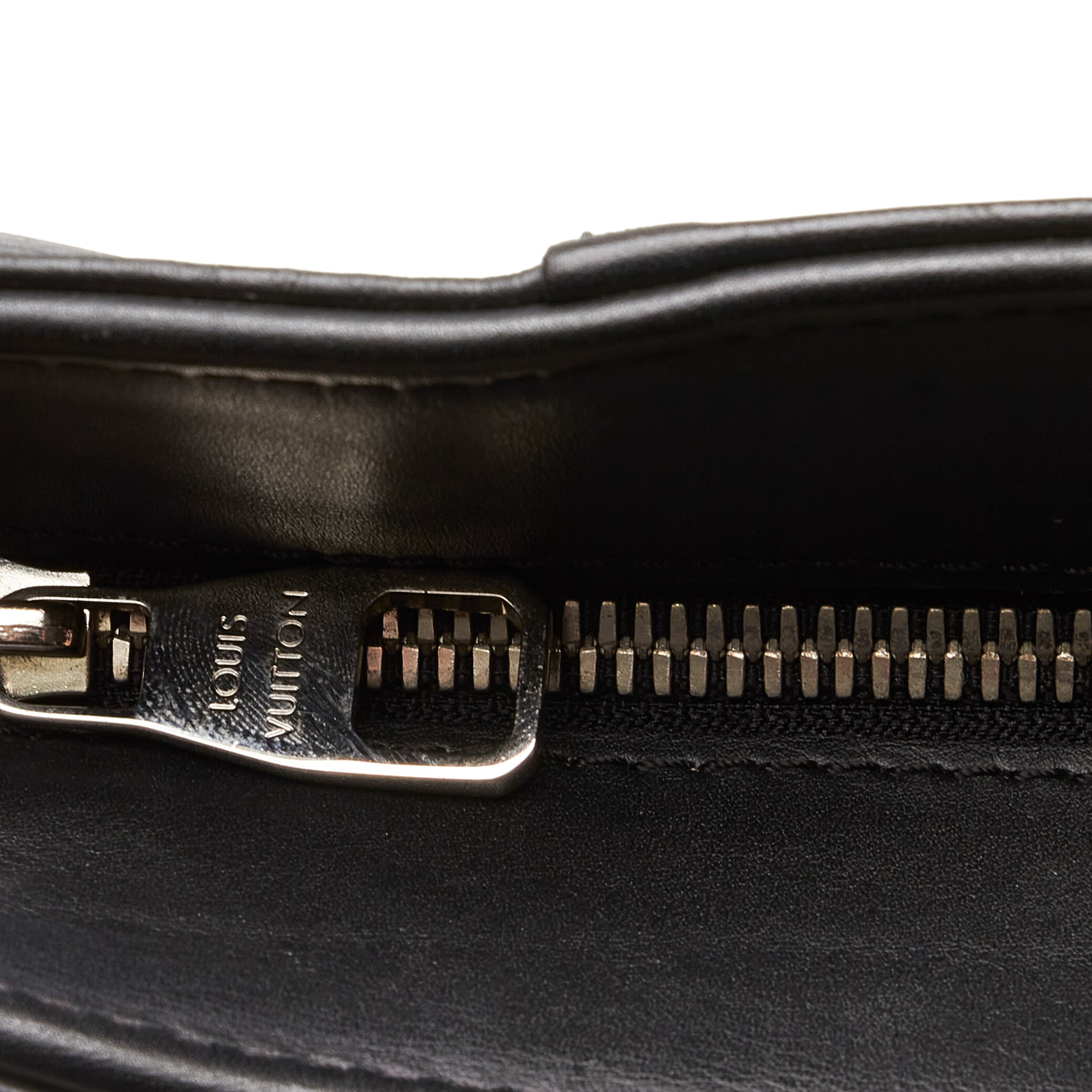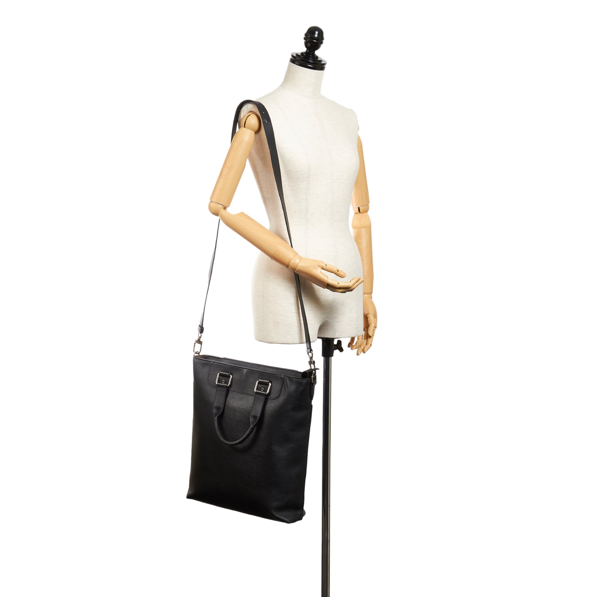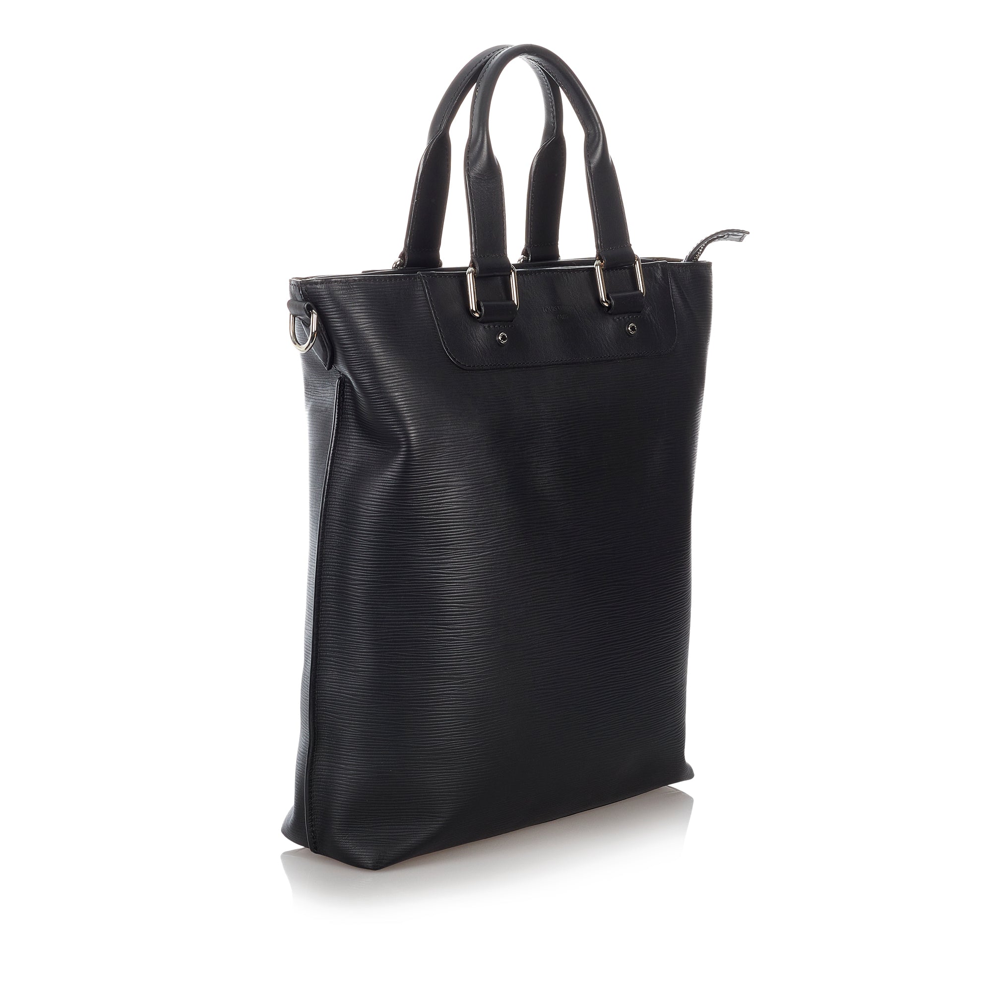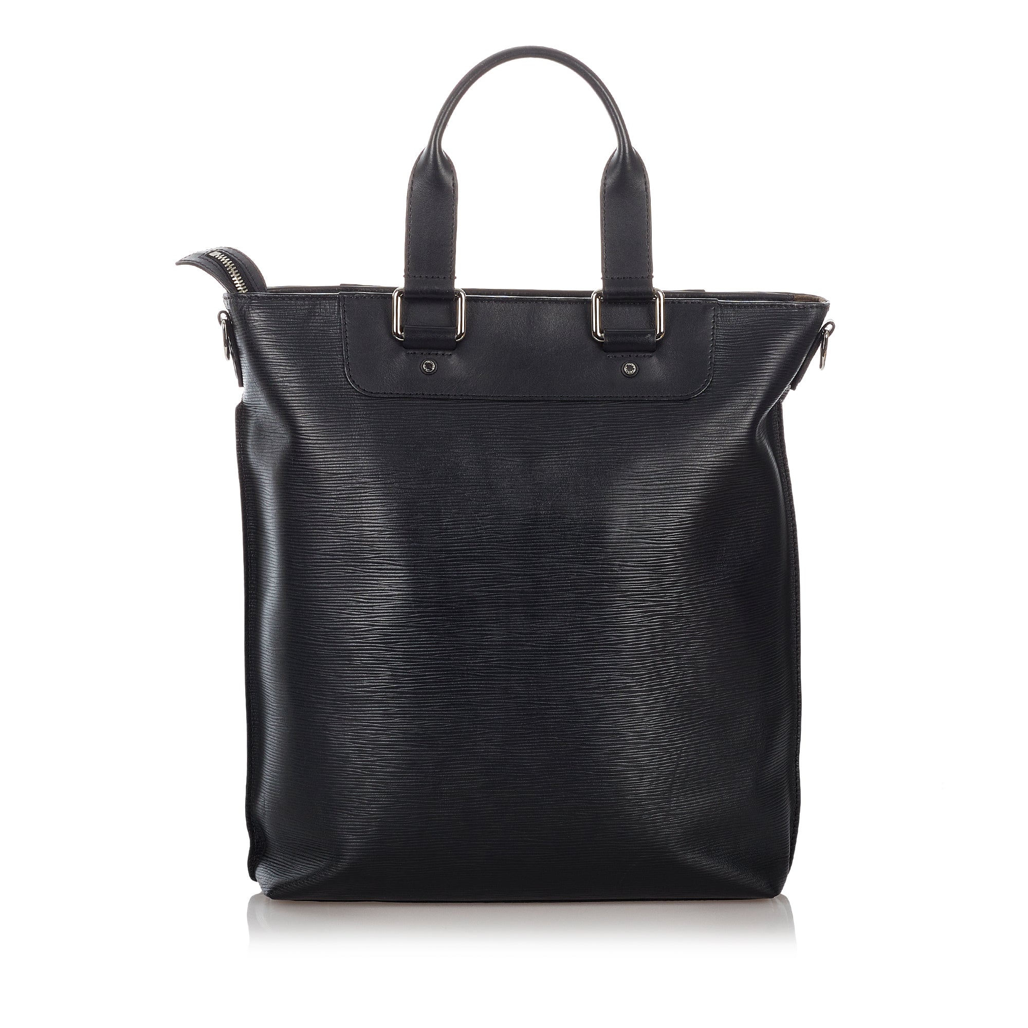 This LV Cabas Sac Jour was made from black epi leather. The Bag features trimmings and rolled handles in smooth black leather, silver rings and closures, a zipper at the top opening, and zippered and slip pockets inside. The Bag is carried by hand and further has a detachable leather shoulder strap, with the help of which the Bag can also be worn loosely over the shoulder and across the body.