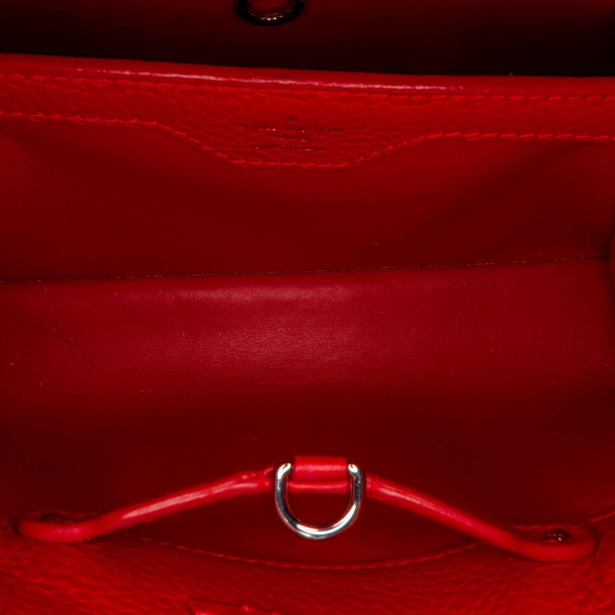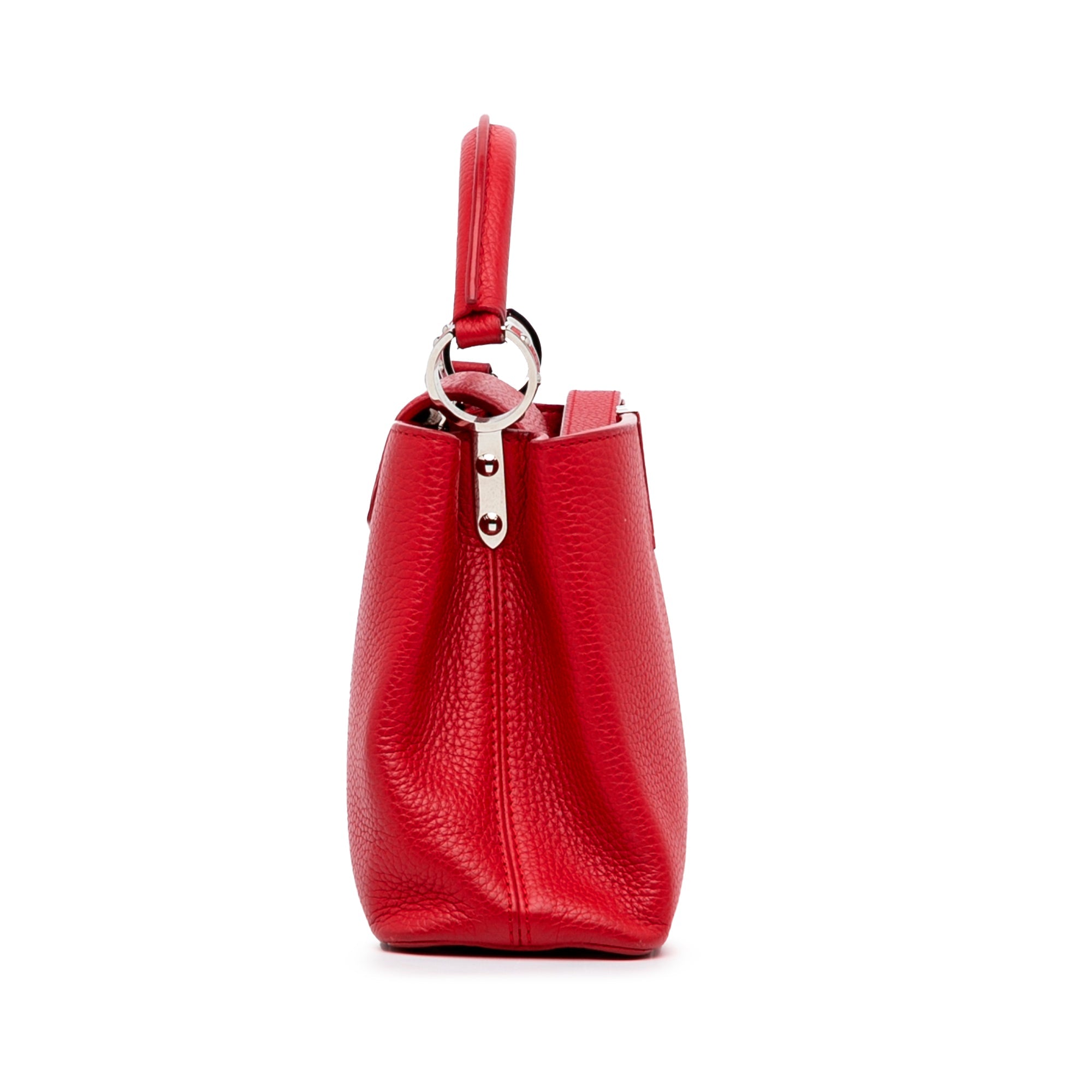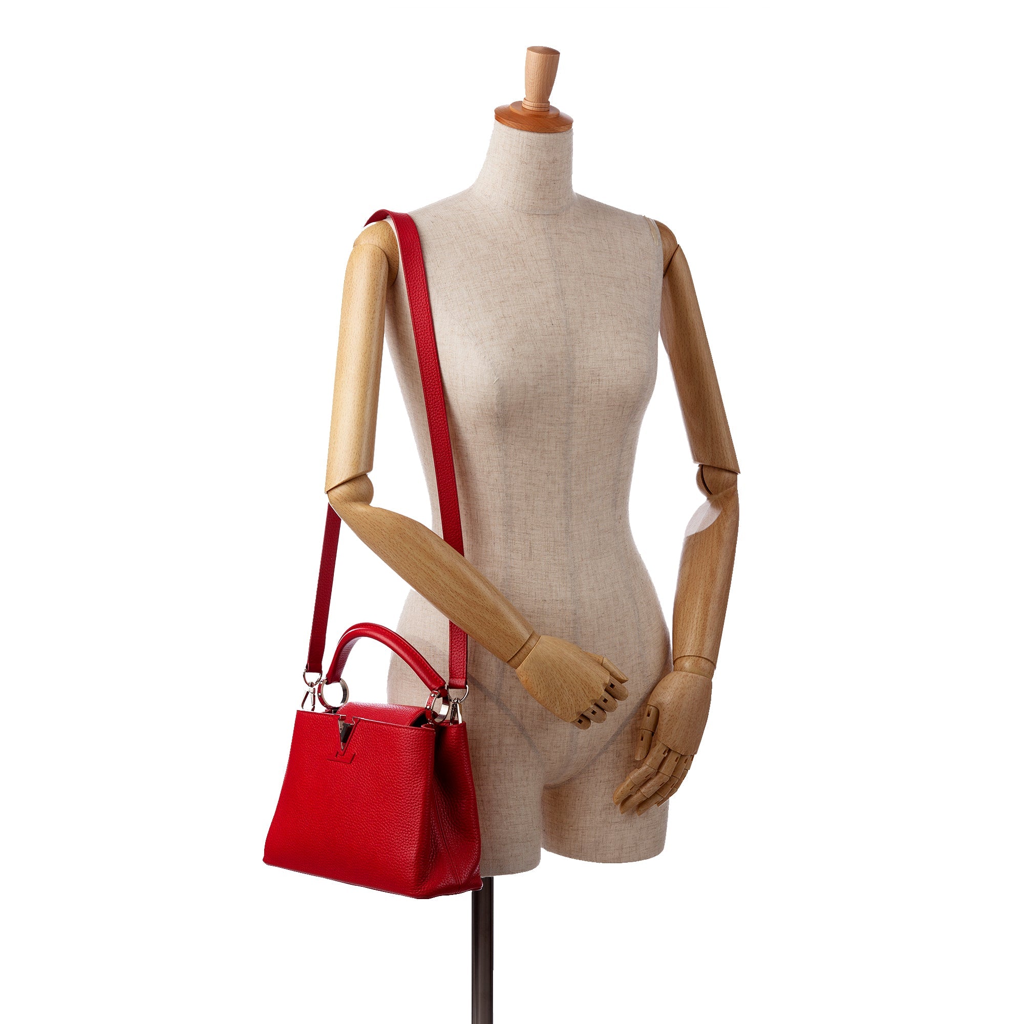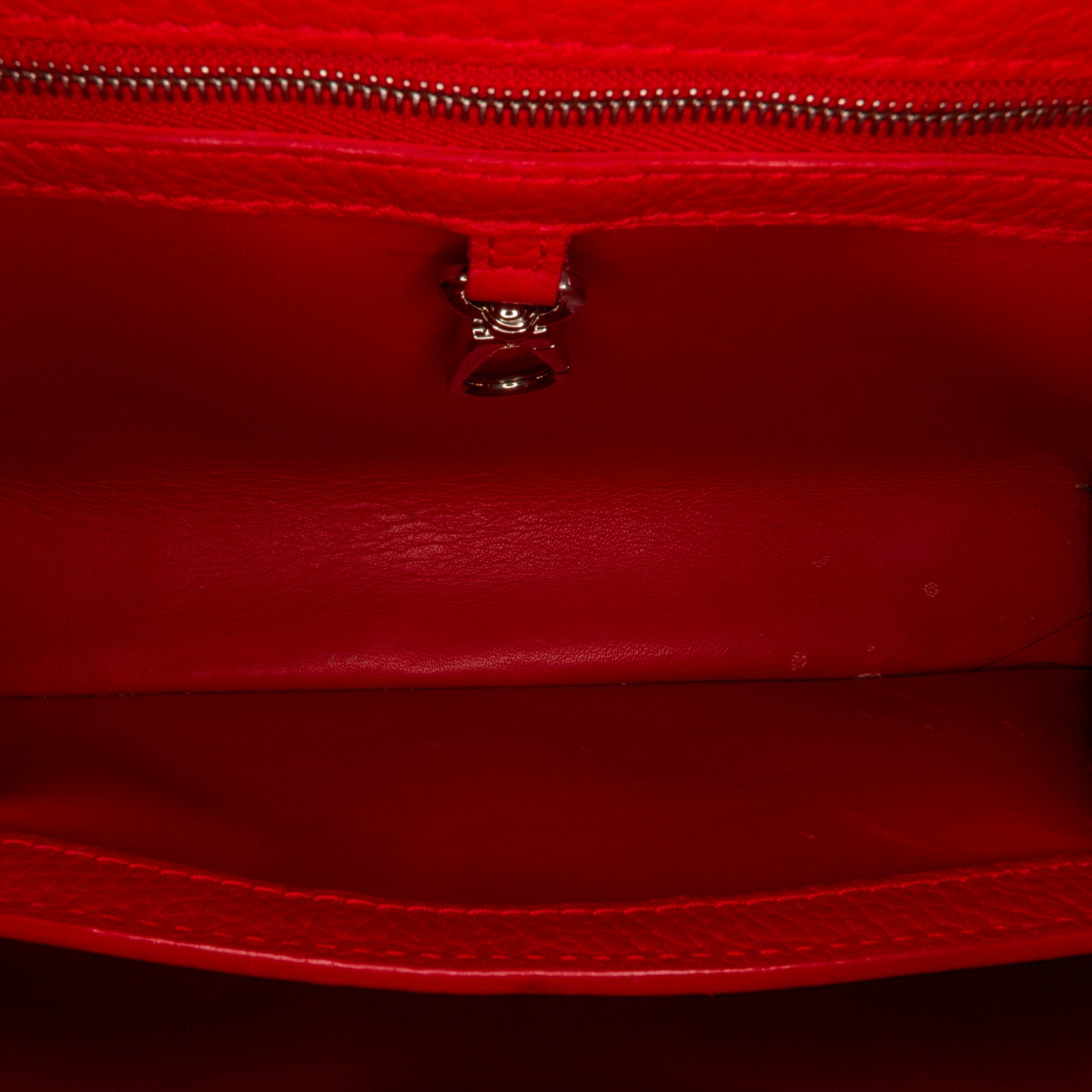 The iconic LV Capucines BB is crafted from fine Taurillon leather in a trendy red hue. The silver hardware gives it a sporty and elegant look. The Bag is in the hand, in the arm or optionally over the shoulder or crossbody with the help of the detachable shoulder strap. A really nice Bag which has a whole portion of elegance in the luggage.
