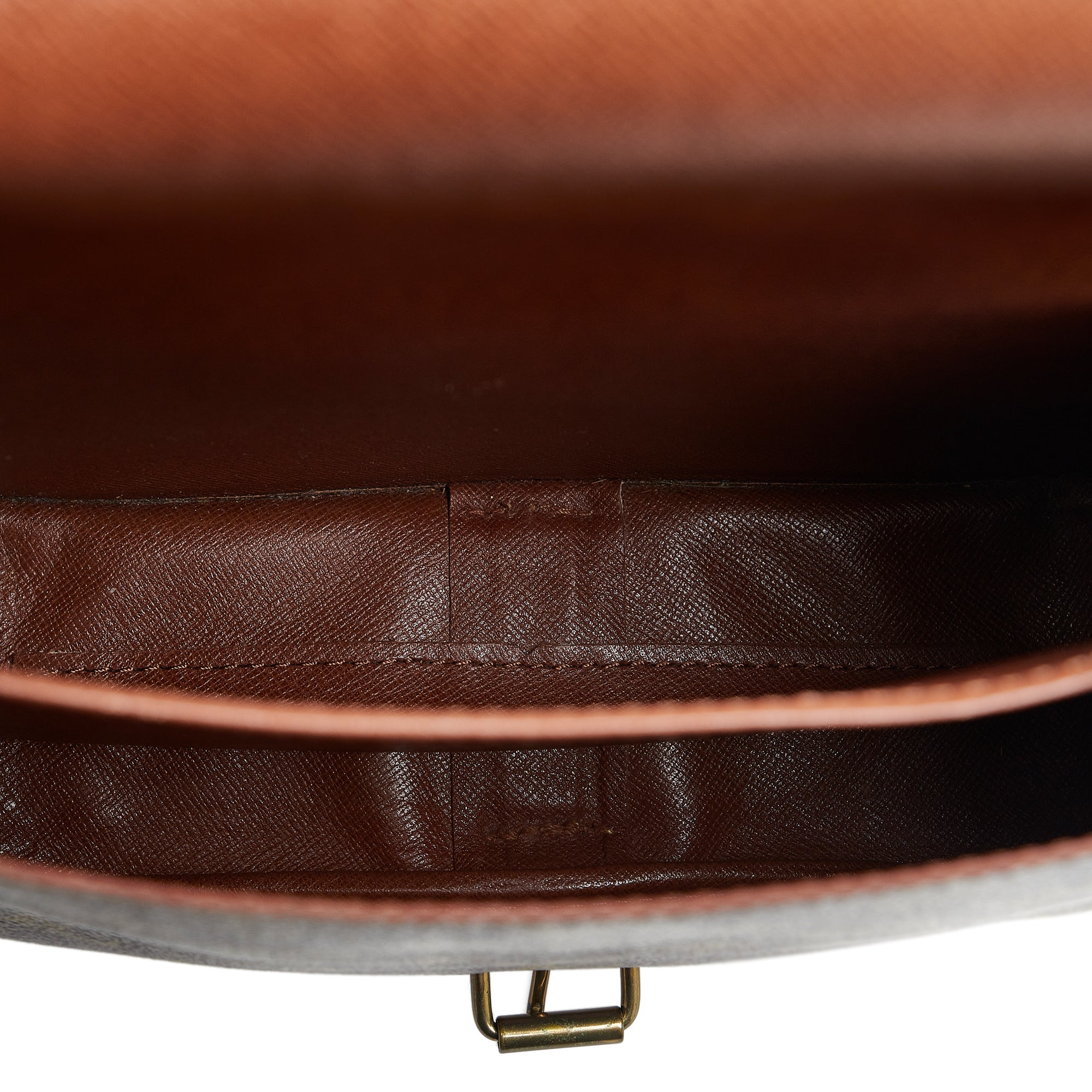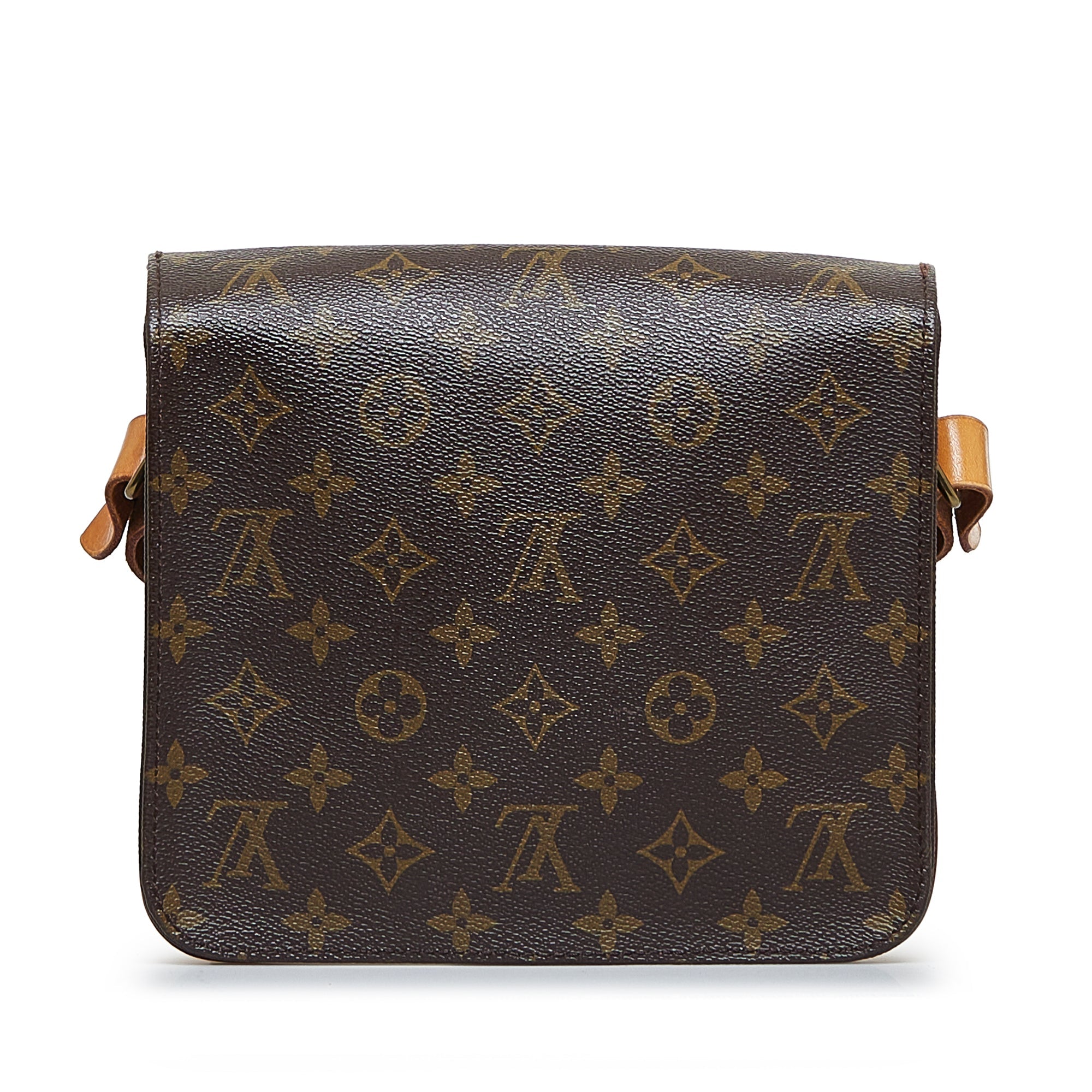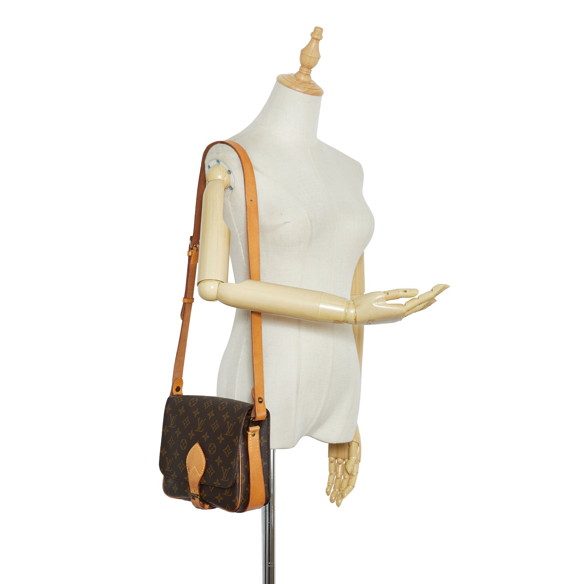 This LV Cartouchière in the MM variant was made of Monogram Canvas. The Bag features brown leather trim and shoulder strap, gold detailing, and a buckle closure on the front flap. The interior of the Bag accommodates an interior compartment. The Bag came loosely over the shoulder or also be worn across the body.