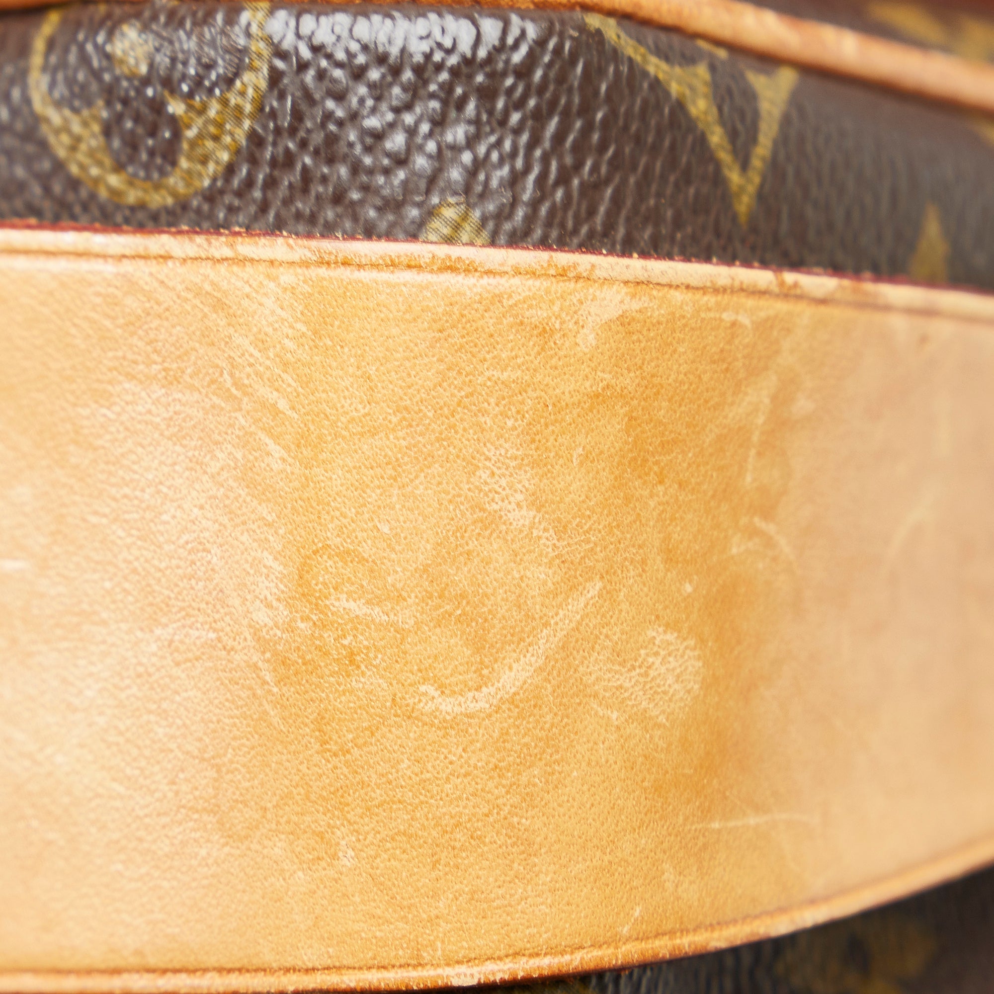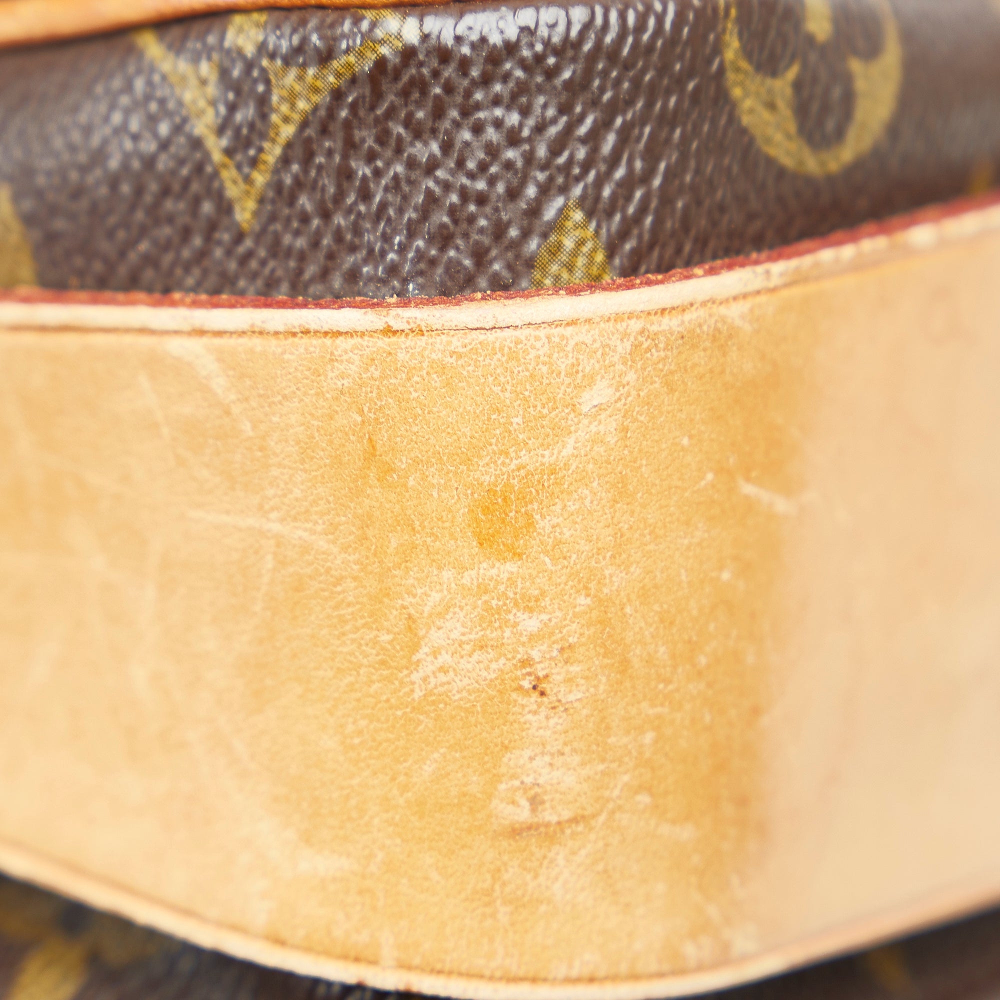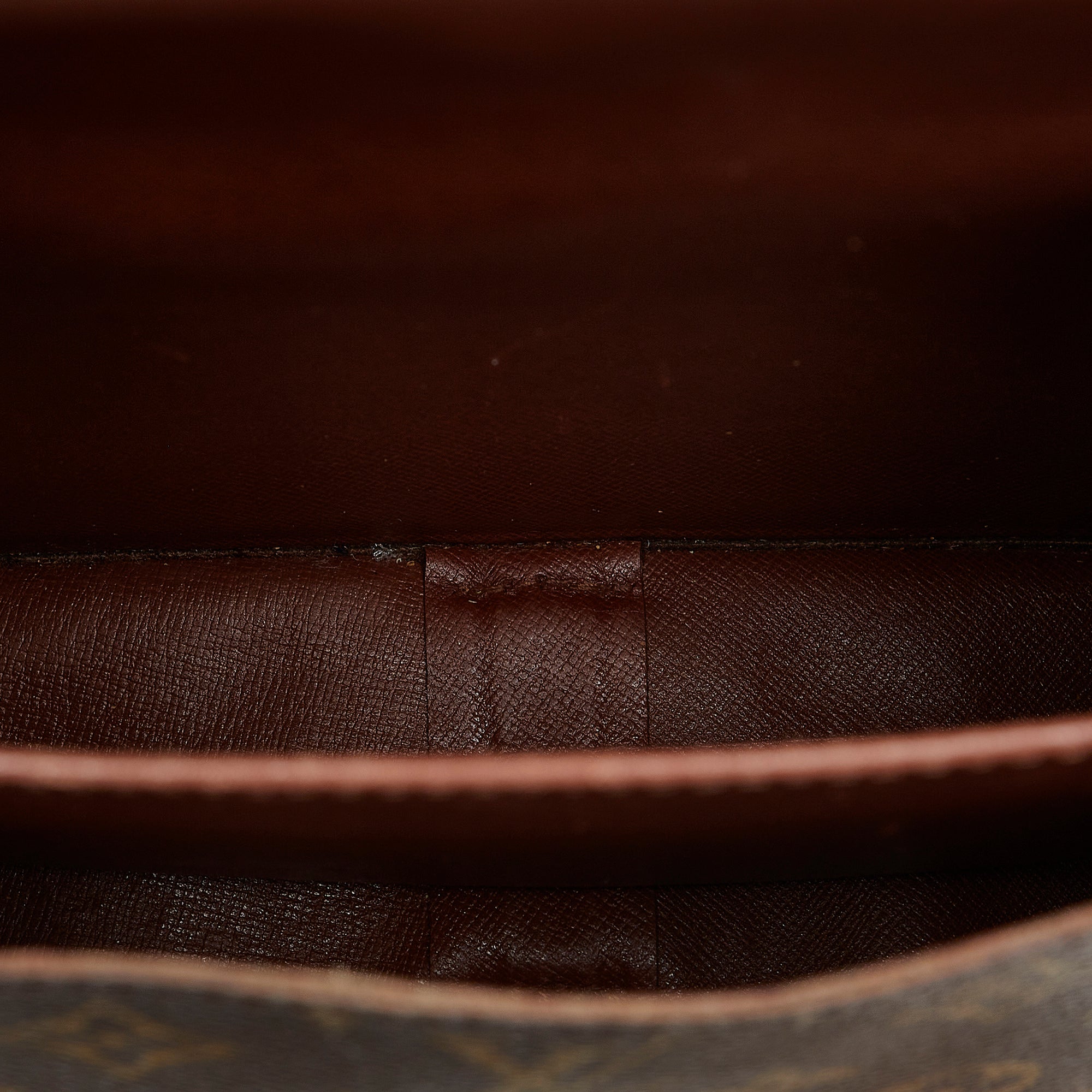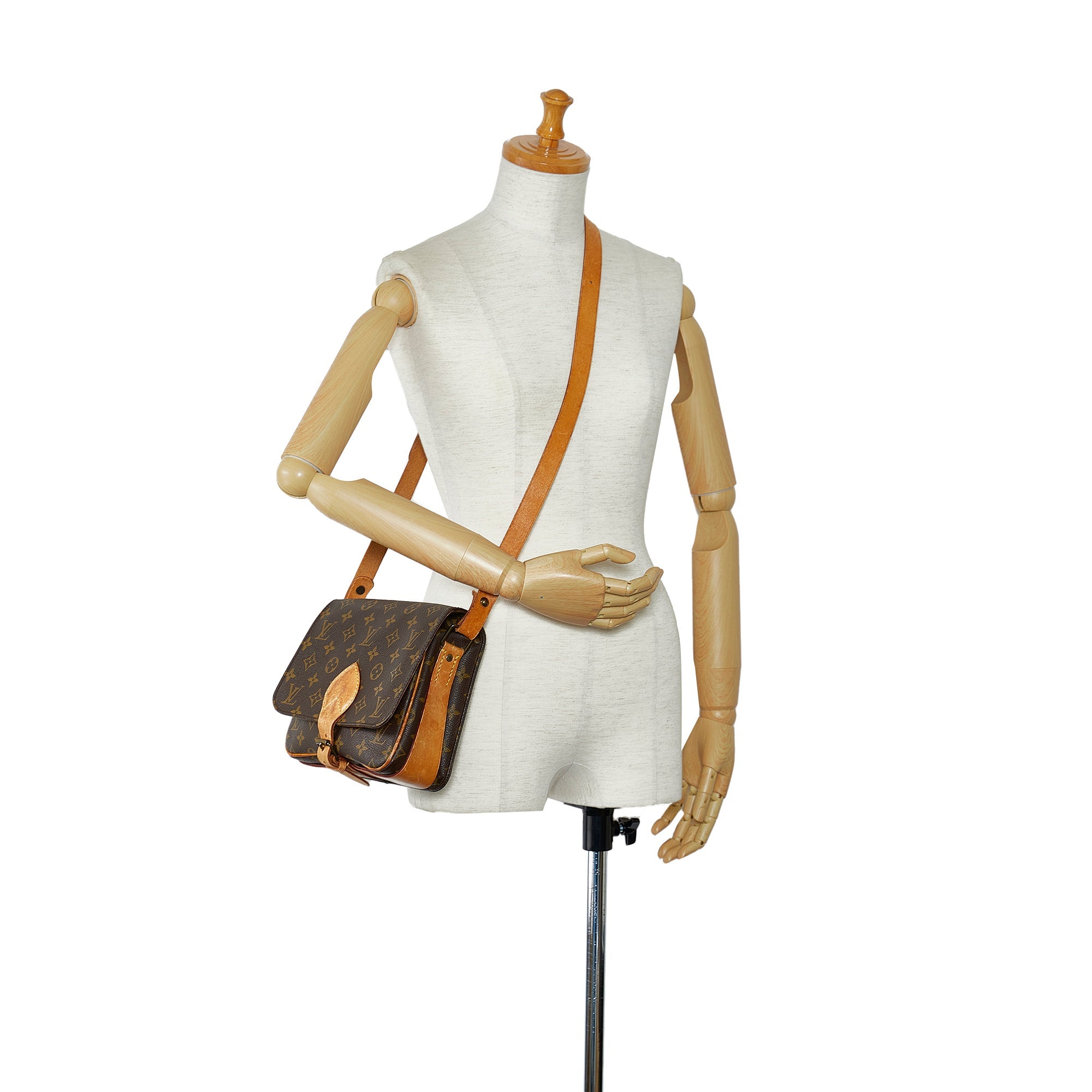 This LV Cartouchière in size MM was made from Monogram Canvas. The Bag features trim and a flat vachetta leather shoulder strap that is adjustable in length, gold detailing, and a flap with a buckle closure. The Bag is worn across the body or loosely over the shoulder.