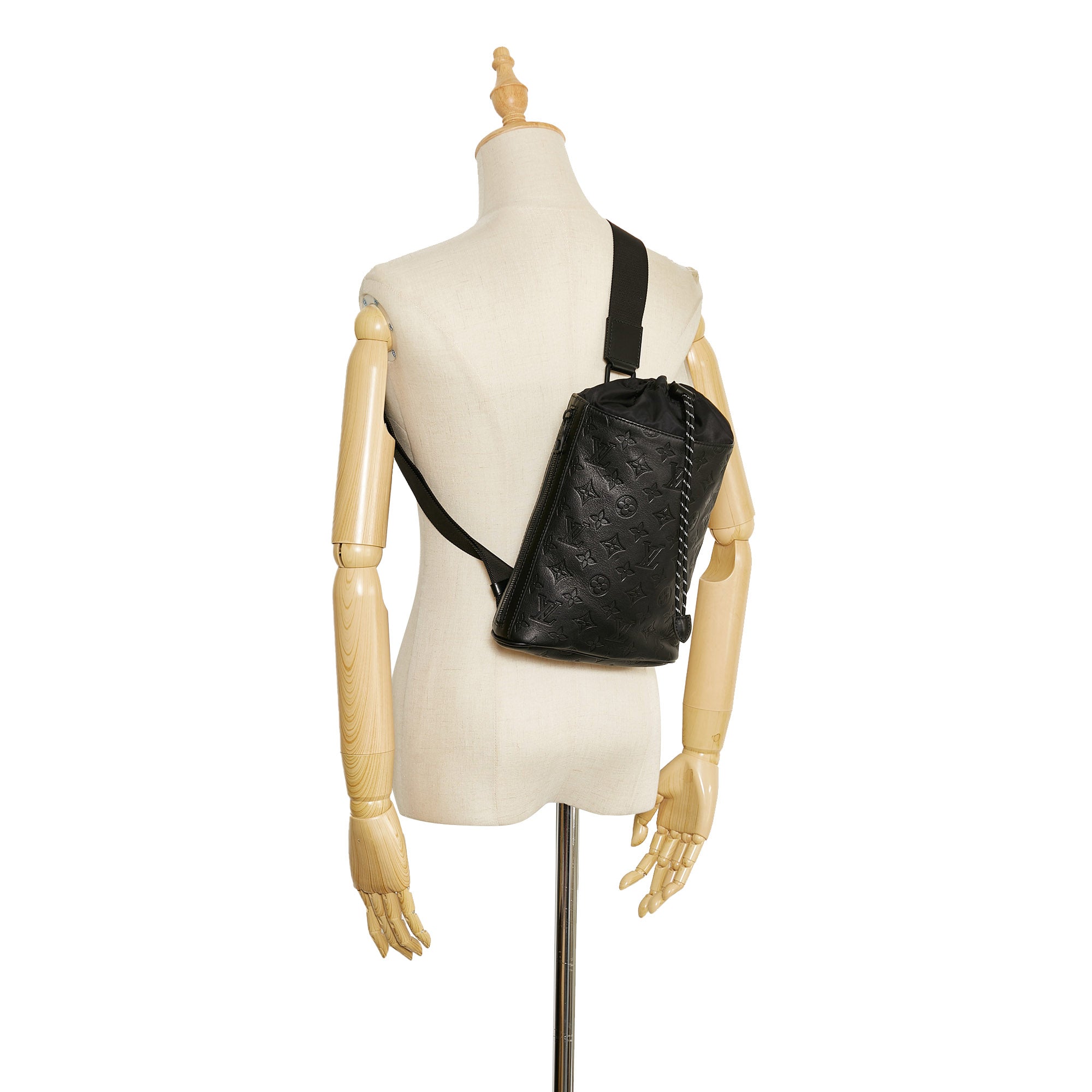 The Chalk backpack was made of black Monogram Empreinte and is worn by the flat strap across the shoulder. The valuables are safely stored by the drawstring closure.