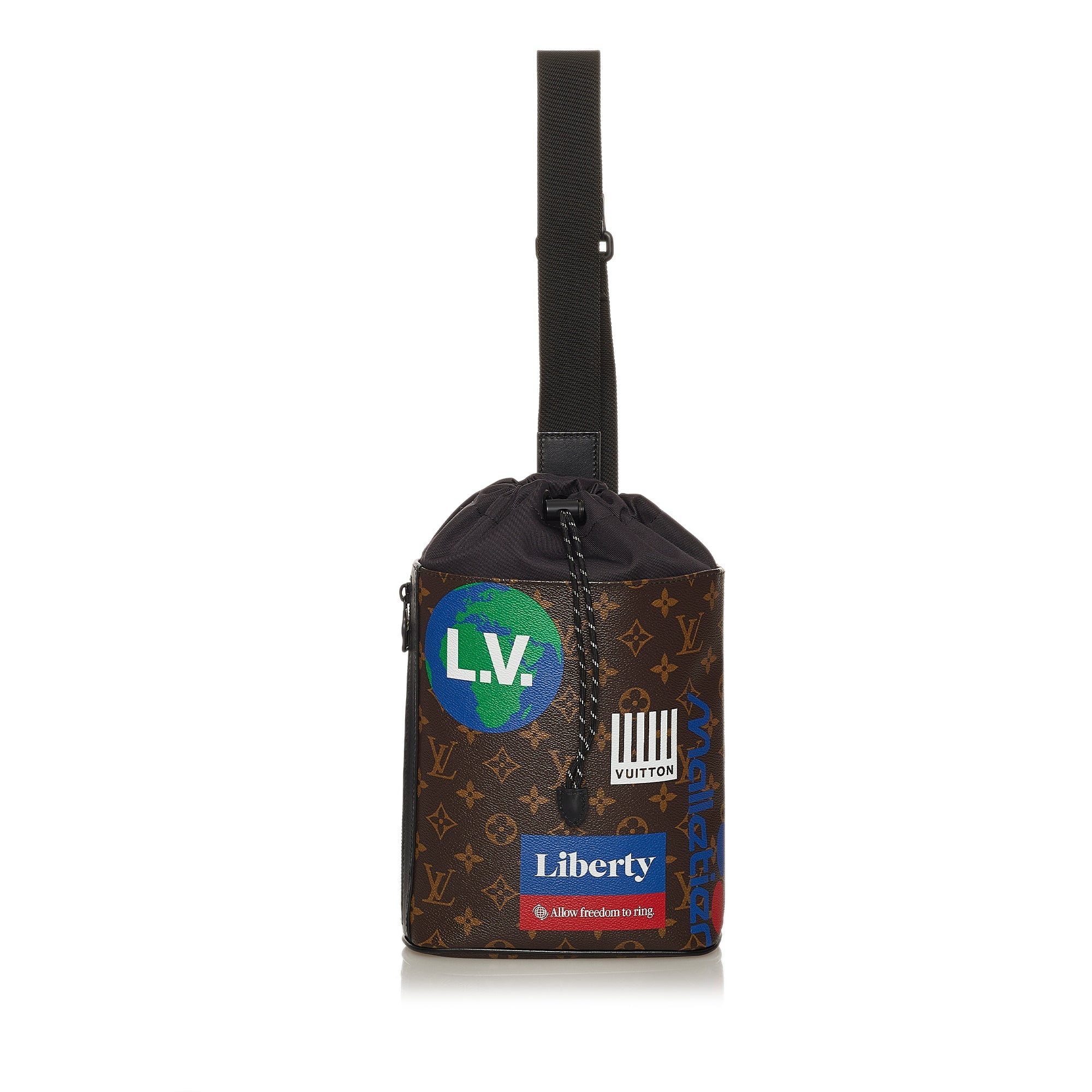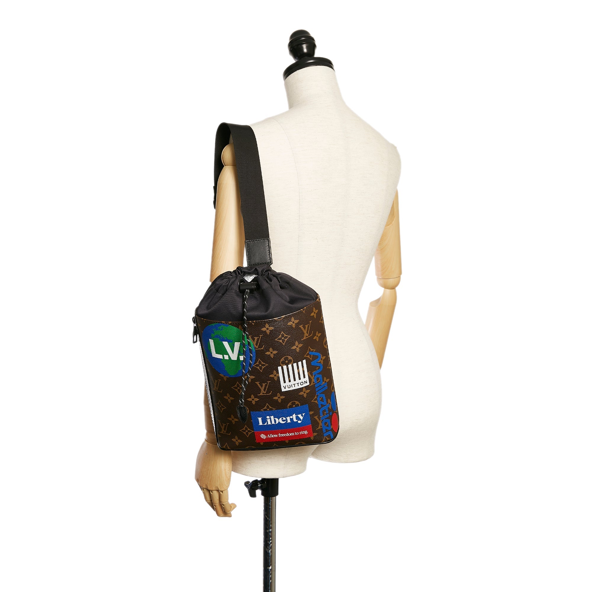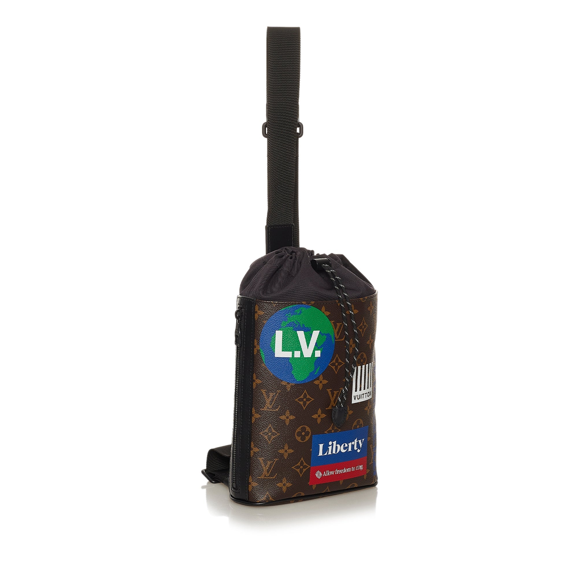 Around the world with LV. This LV Chalk Sling Bag was made from Monogram Canvas, whose prints pay homage to freedom. In addition, the Bag Black fabric inserts around the upper opening and details made of black leather. A zipper compartment is hidden on the left side. At the upper opening it has the Bag a train of cord. With their flat canvas belt the Bag to be trained comfortably.