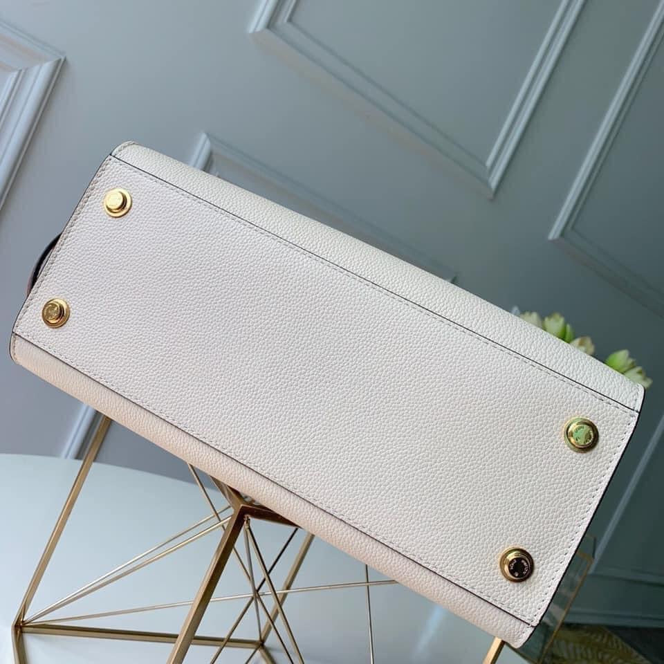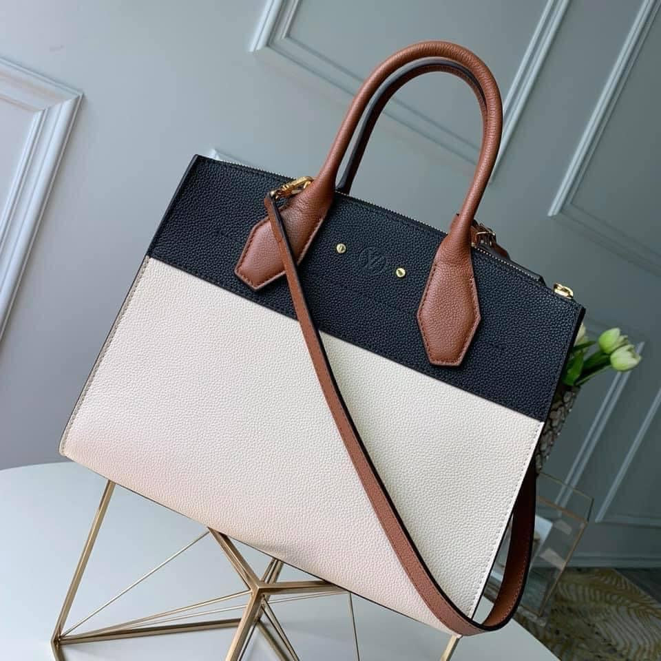 Inspired by Steamer luggage from the House archives, Nicolas Ghesquière designed the City Steamer MM, a New Classic day bag. Crafted from grained calfskin, it features refined signature details: distinctive handle mounts, engraved padlock, discreet LV emblems and more. Luxurious yet understated, this roomy model is ideal for day or office use. Twin Toron handles ensure comfortable hand or elbow carry; a removable strap offers the option of over-the-shoulder wear.