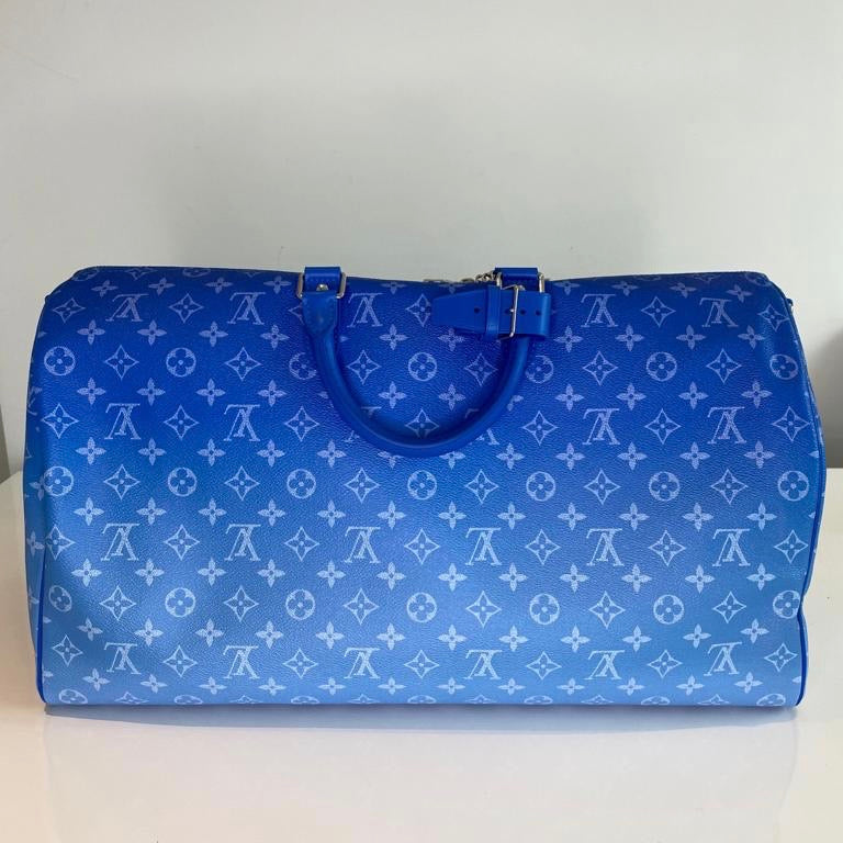 LV’s Classic Keepall style has been reimagined by Virgil Abloh. The model boasts a gradient blue adorned with the popular monogram print and complimented by the oversized LV initials, like sky writing on a summers day. One of the most popular styles from the Autumn/Winter 2020/2021 collection, this Keepall makes for a statement but practical piece.