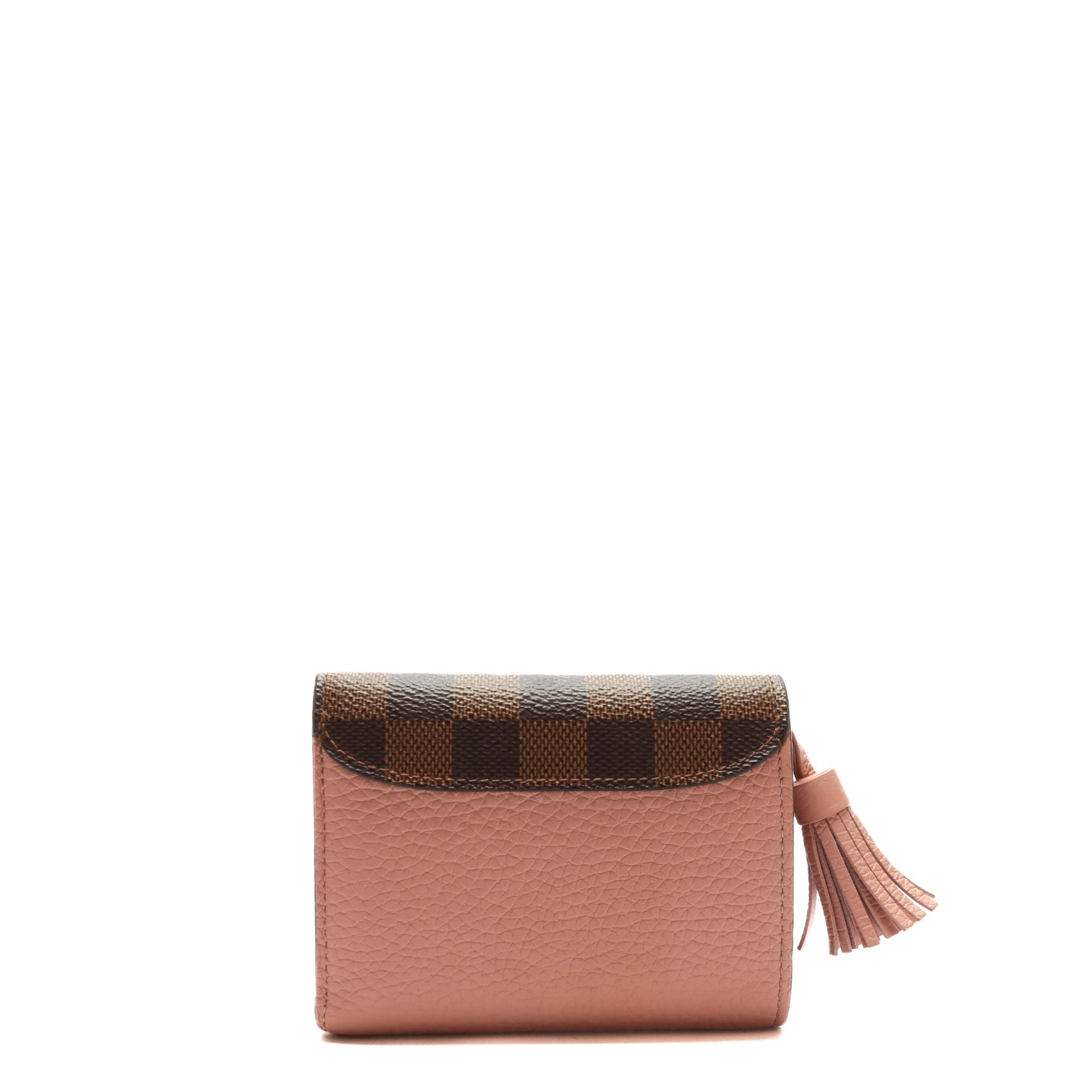 - Coated Canvas in Damier Ebene & Calfskin in Magnolia