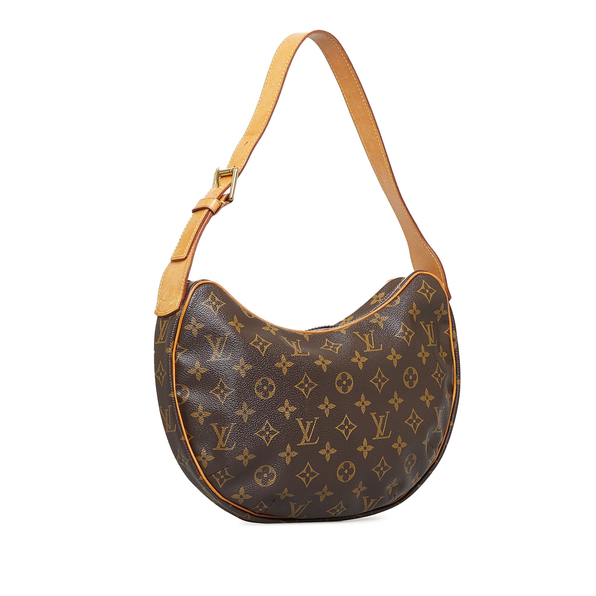 This LV Croissant in size MM was made from brown Monogram Canvas. The Bag features brown trim and a flat vachetta leather shoulder strap. At the top opening the Bag closed by a zipper. The interior offers the Bag one pocket. The Bag is best carried on the shoulder. In this size a perfect all-rounder for every day.