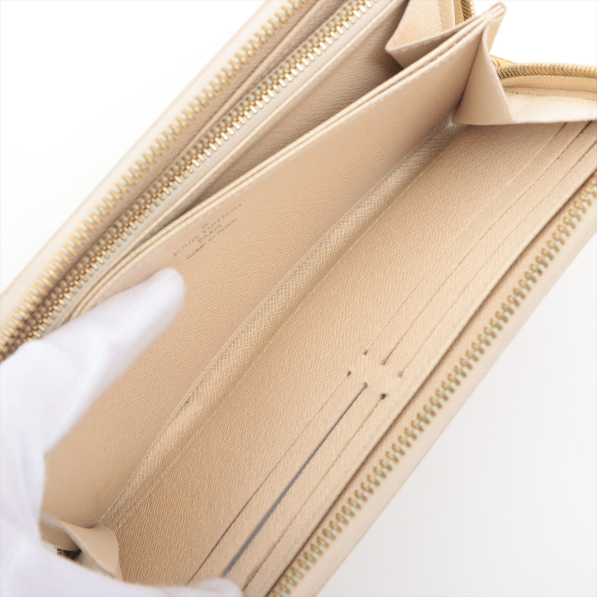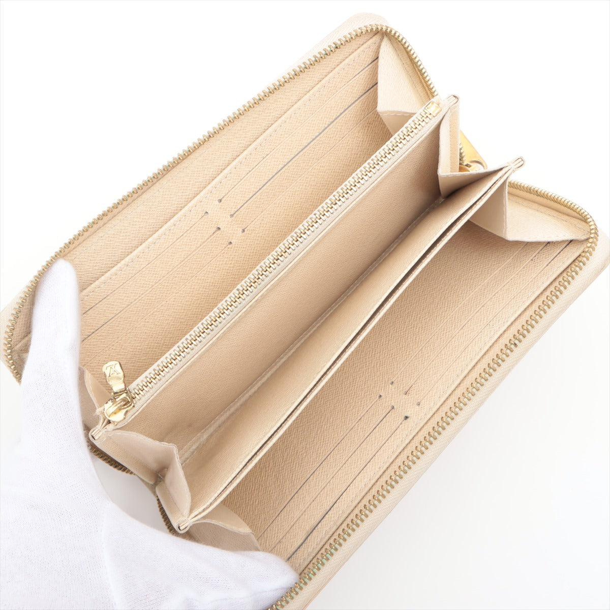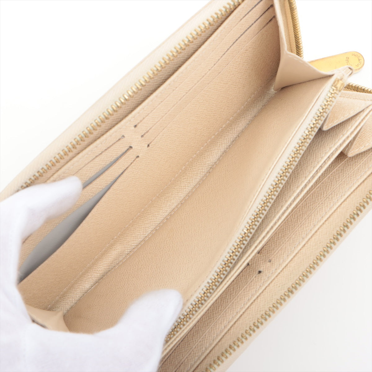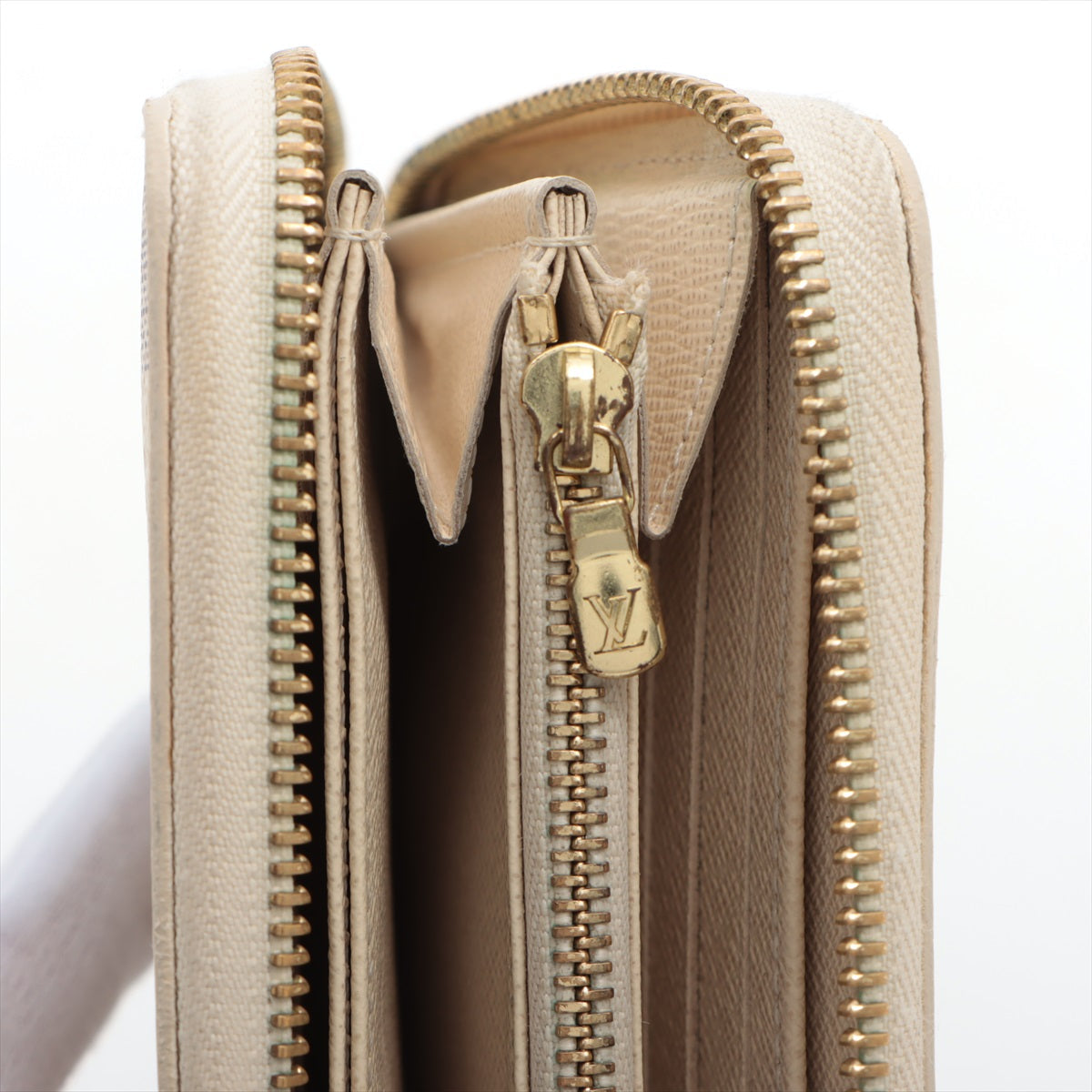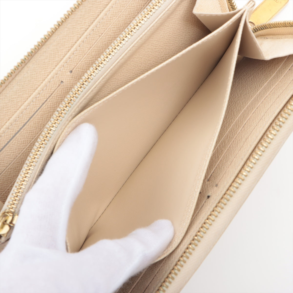 The soft, leather lining adds a touch of luxury to the wallet’s interior. It not only feels great to the touch but also enhances the overall durability of the accessory. The secure zip-around closure keeps your valuables safe and sound, making it ideal for daily use or travel. The gold-tone hardware complements the light-colored canvas, adding a touch of glamour to the design. The Damier Azur pattern, with its iconic checkered print and subtle LV logo, makes the wallet instantly recognizable as a luxury fashion piece.