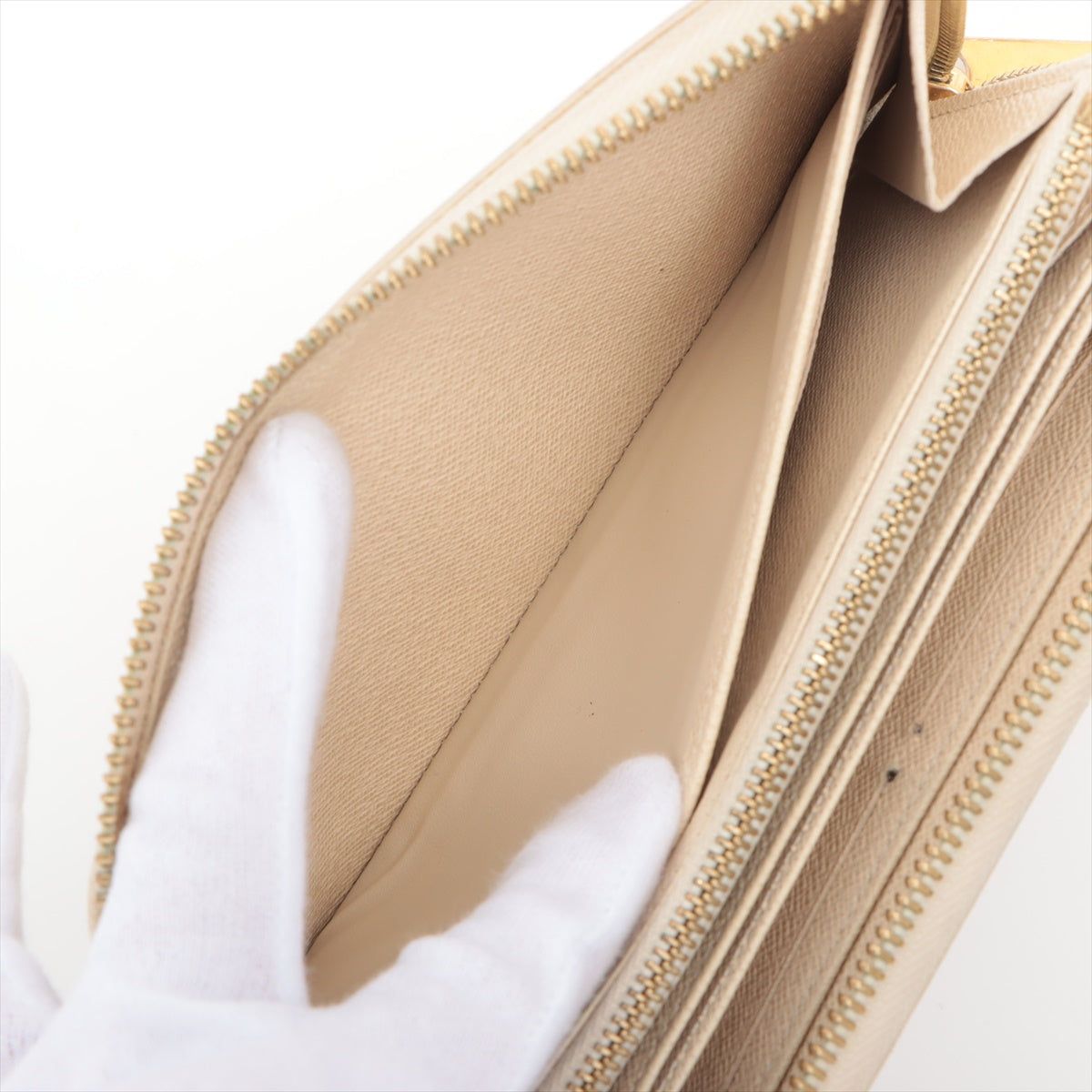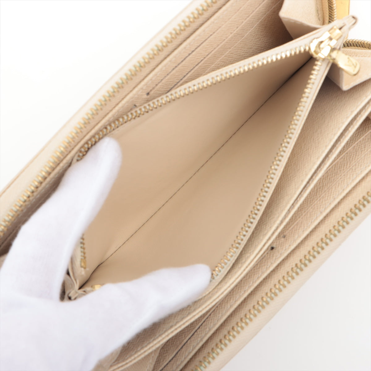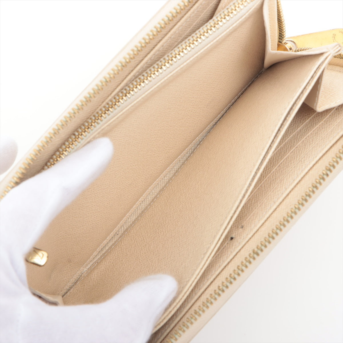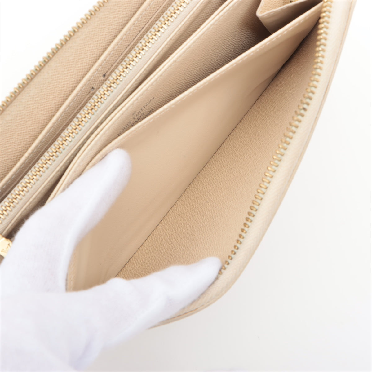 The soft, leather lining adds a touch of luxury to the wallet’s interior. It not only feels great to the touch but also enhances the overall durability of the accessory. The secure zip-around closure keeps your valuables safe and sound, making it ideal for daily use or travel. The gold-tone hardware complements the light-colored canvas, adding a touch of glamour to the design. The Damier Azur pattern, with its iconic checkered print and subtle LV logo, makes the wallet instantly recognizable as a luxury fashion piece.