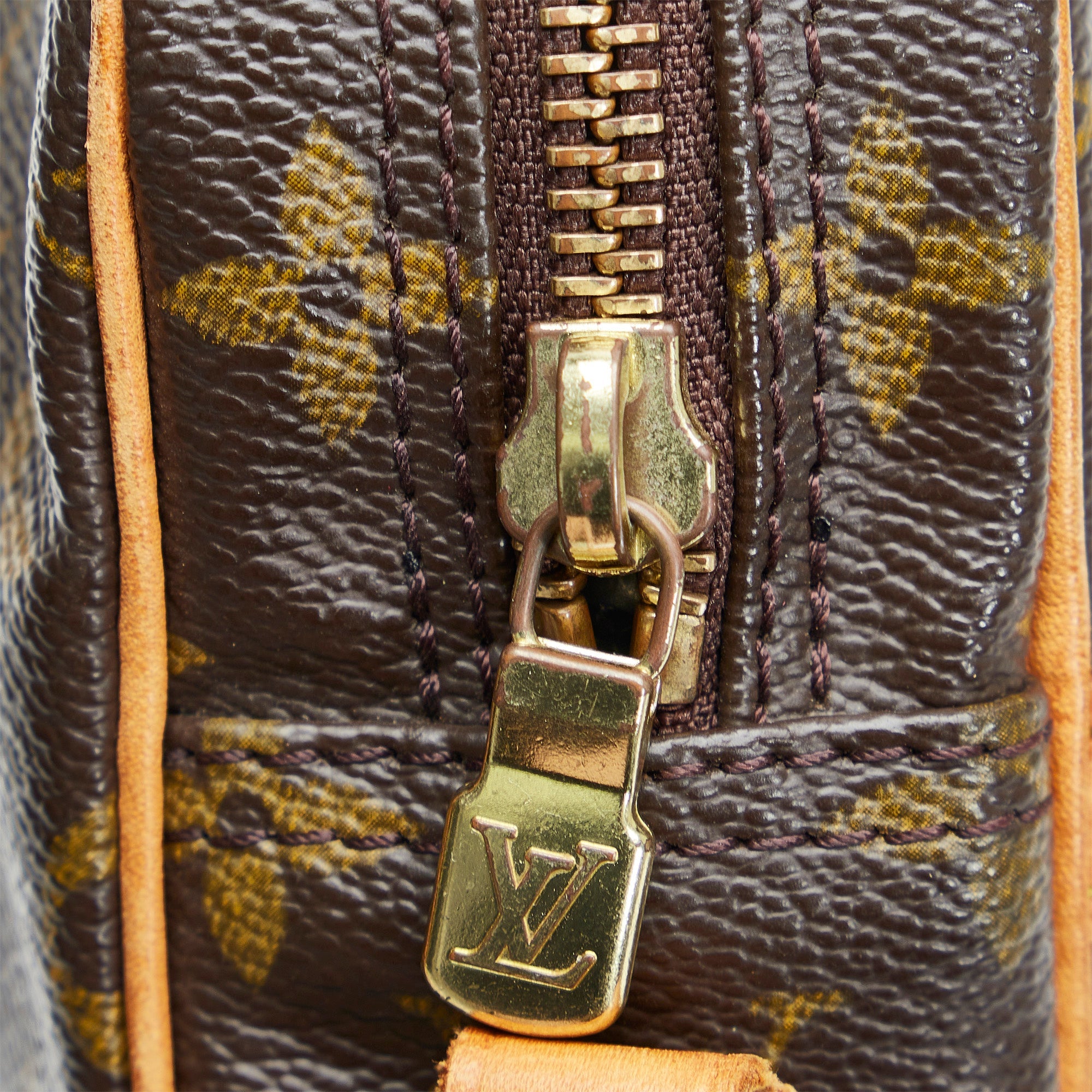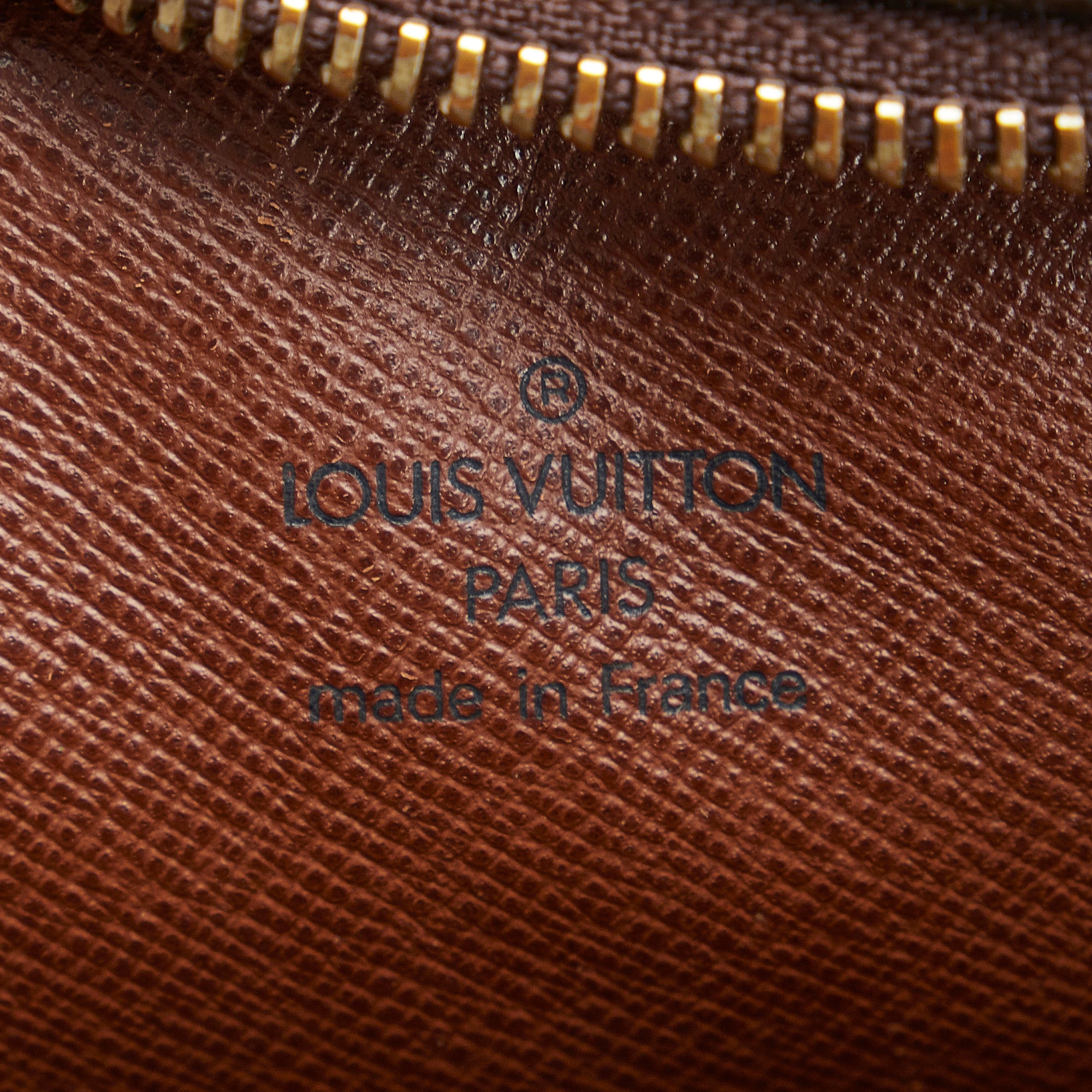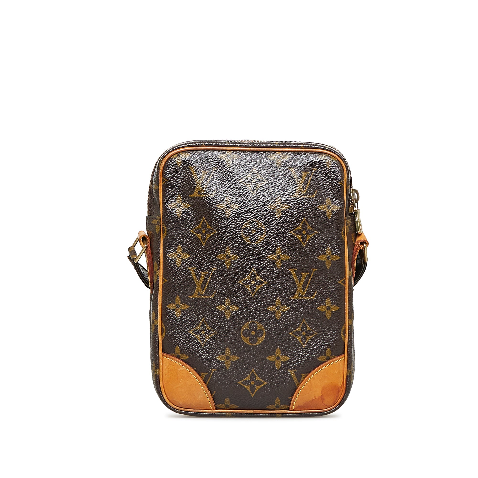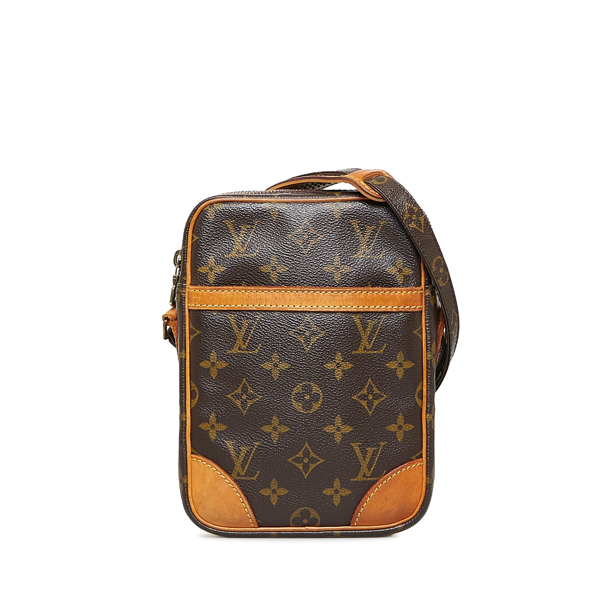 This LV Danube is crafted from Monogram Canvas and features Vachetta leather trim, gold detailing and a zippered top opening. The Bag is best worn across the body.