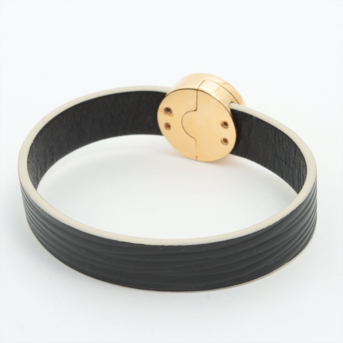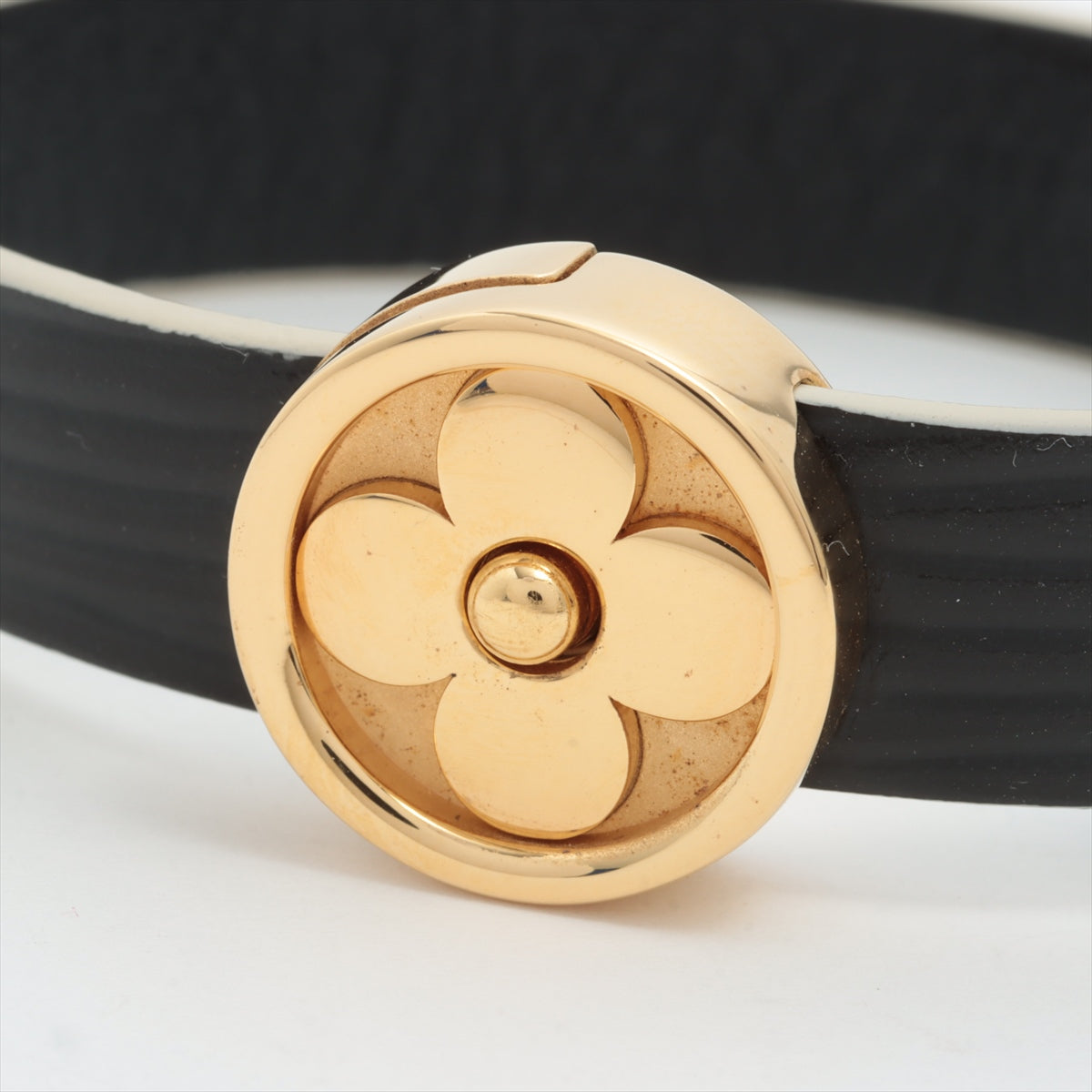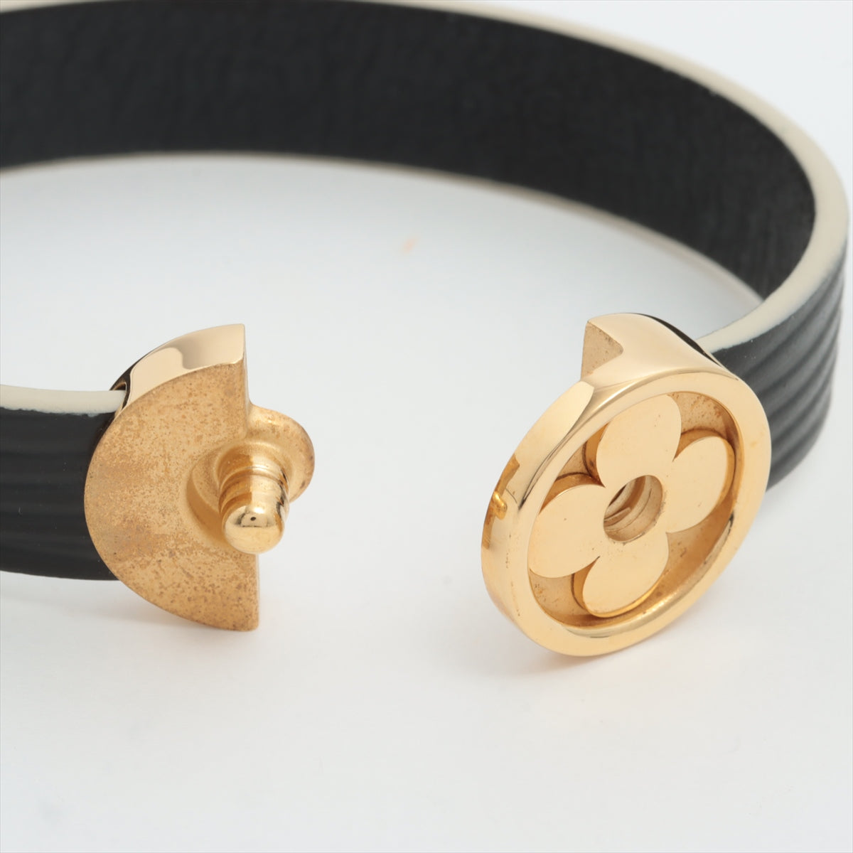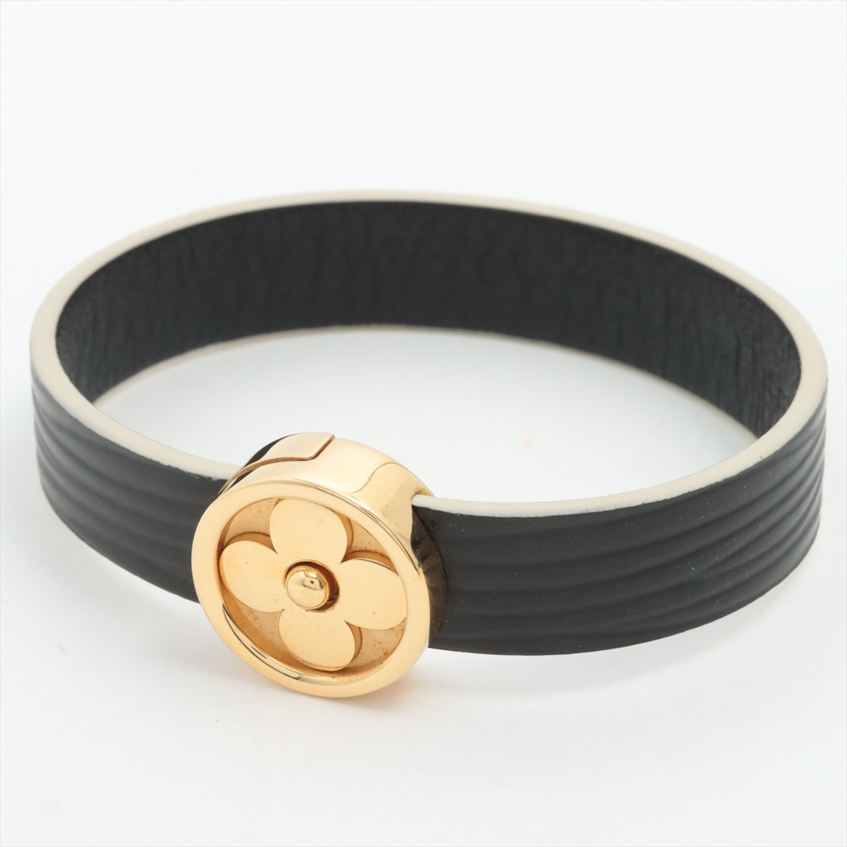 Wrapped around the metal centerpiece is luxurious Epi leather, which is known for its textured surface and durability. The Epi leather adds a touch of elegance and sophistication to the bangle while providing a comfortable fit when worn on the wrist. The fusion of metal and leather creates a striking contrast that is both visually appealing and tactile. The combination of materials and textures is a hallmark of LV’s approach to design, resulting in a bangle that is not only a piece of jewelry but also a work of art. The bangle is designed to be an close-ended cuff style, allowing for easy wearing and removal.