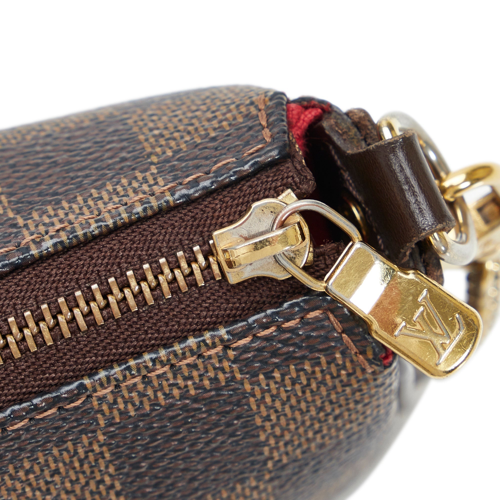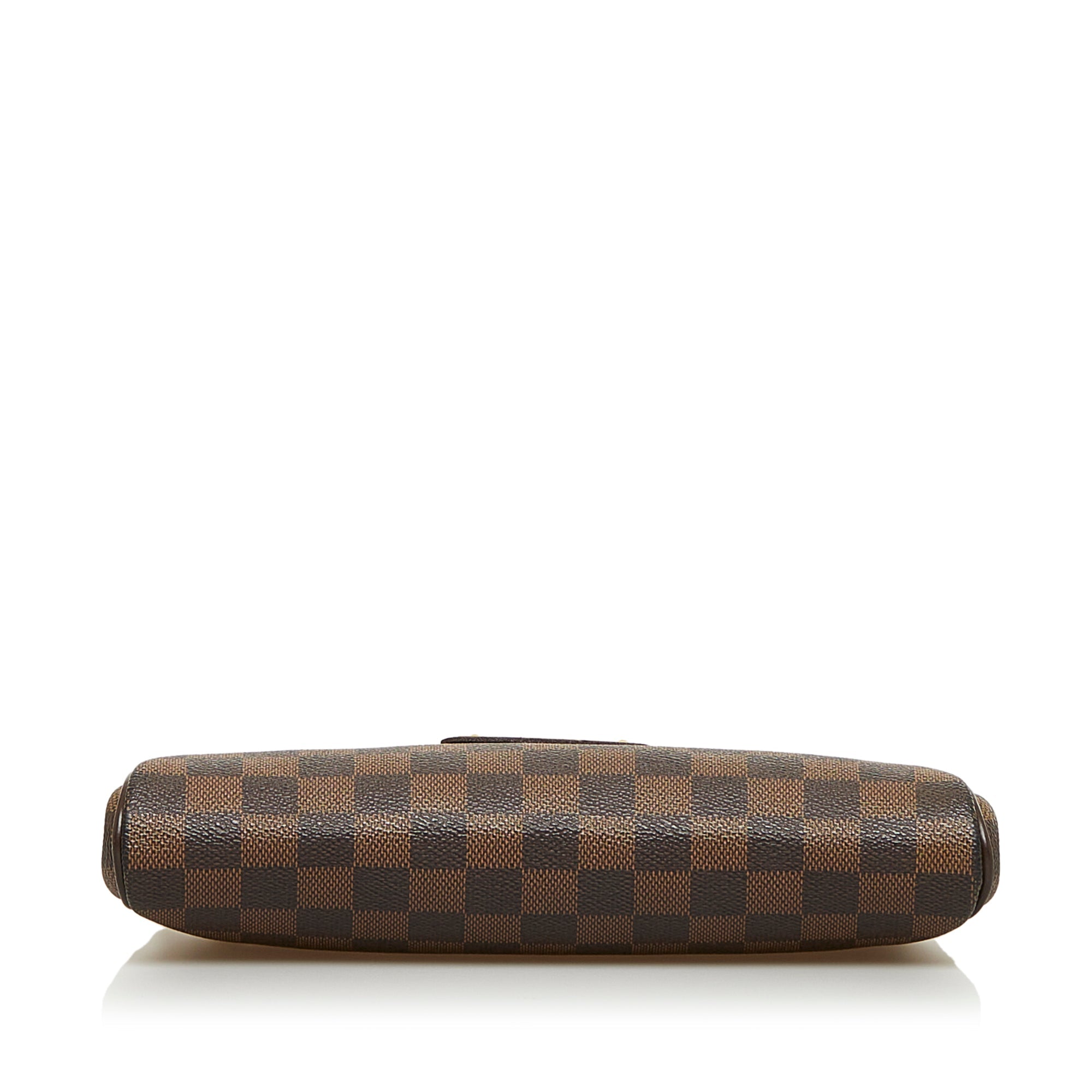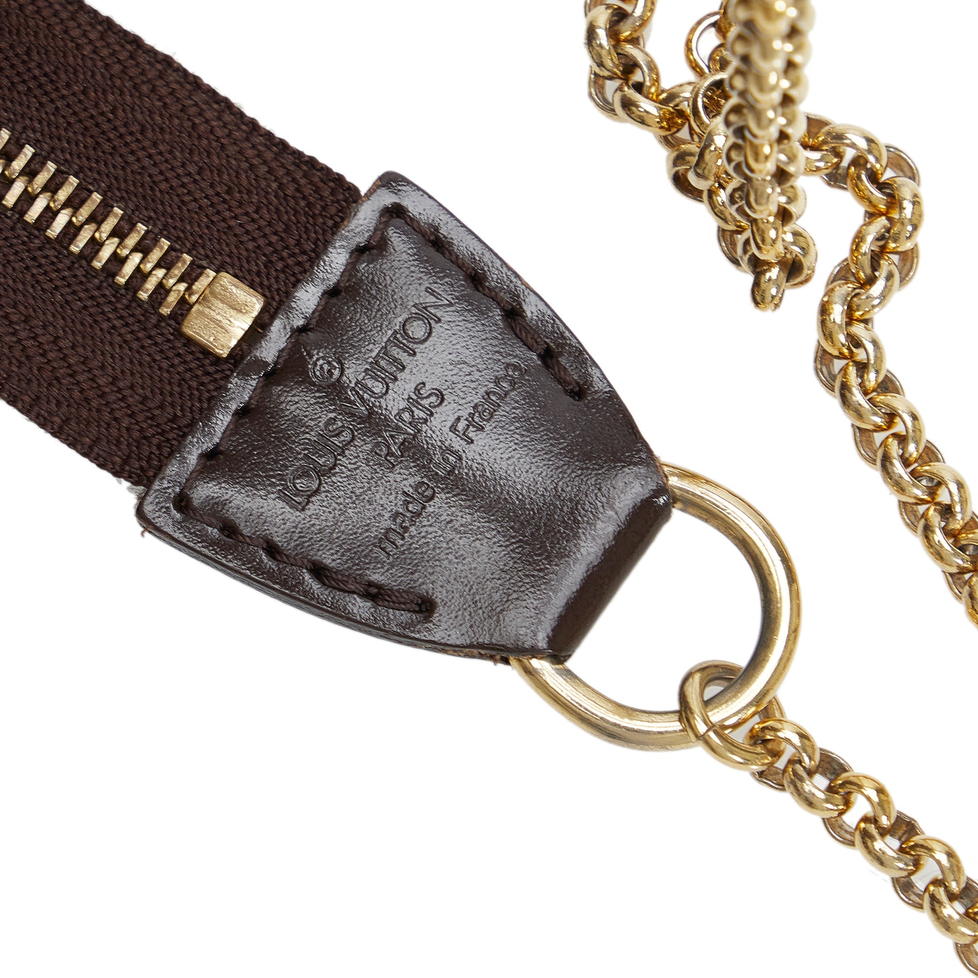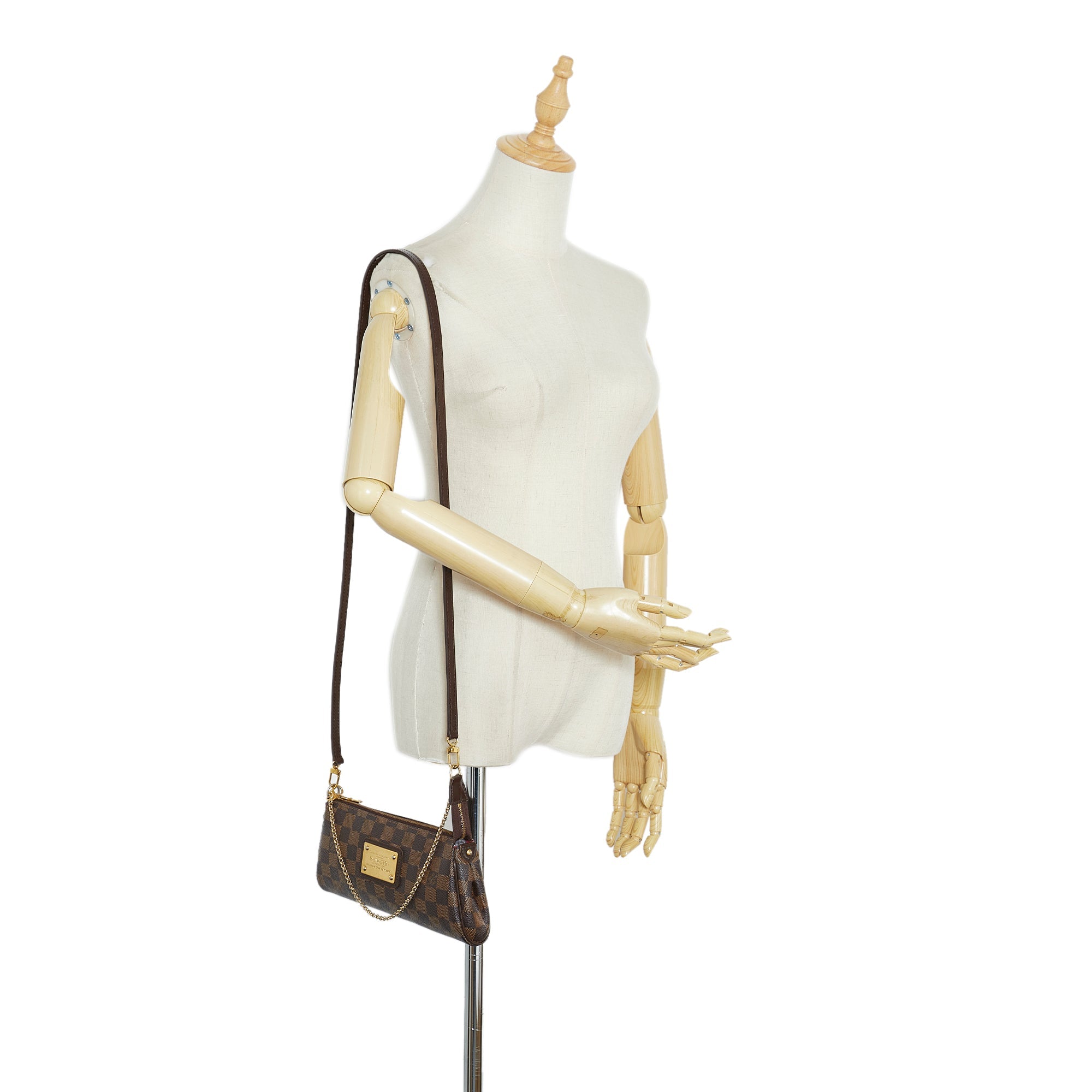 An absolute superstar among LV classics, the LV Eva in Damier Ebene Canvas bears its name in honor of fashion icon Eva Herzigová. On the front bears the Bag proudly bears a gold shield engraved with LV. With a delicate chain strap, the Bag worn near the shoulder or in the arm. Alternatively, the Bag also has a detachable shoulder strap, with the help of which the Bag crossbody can be worn.