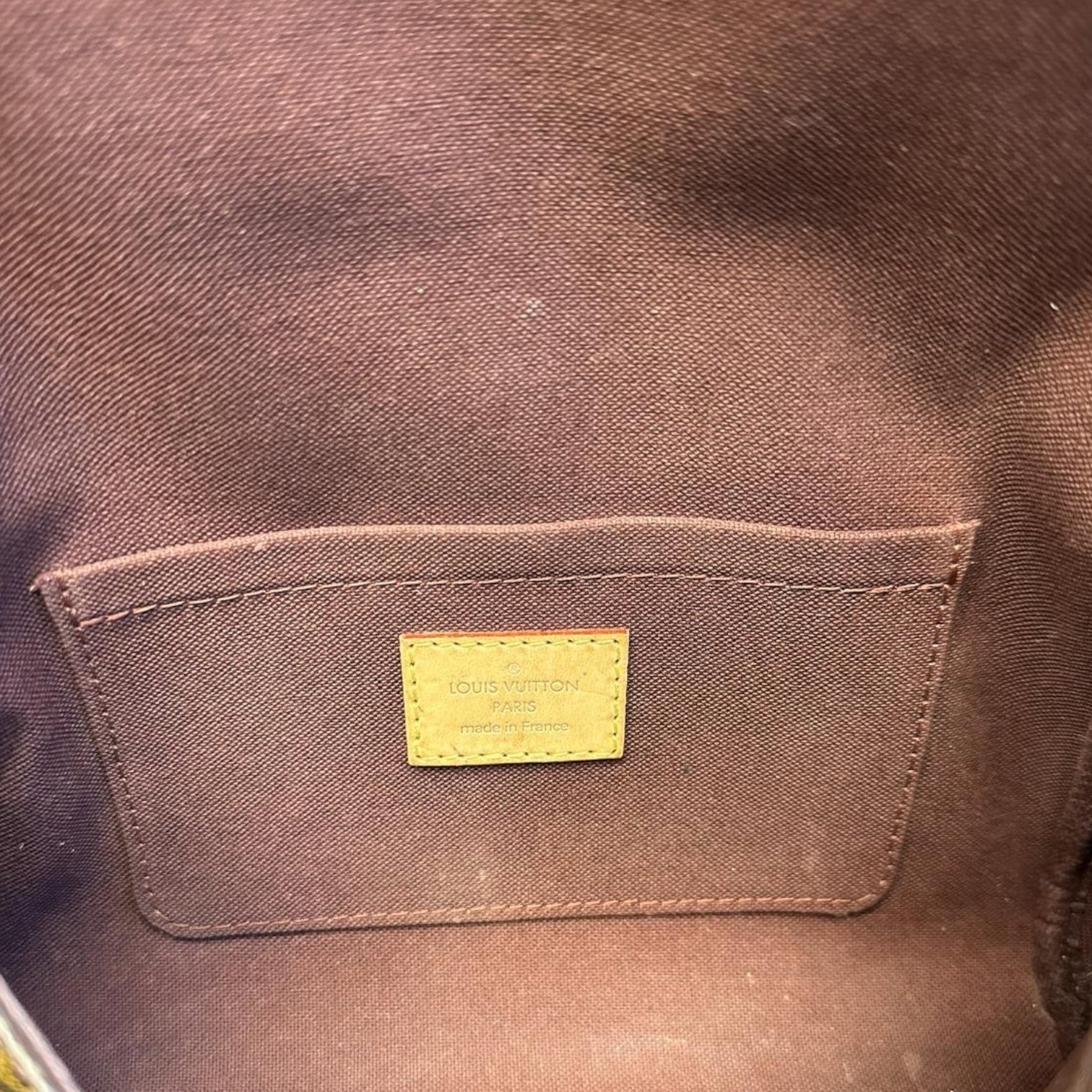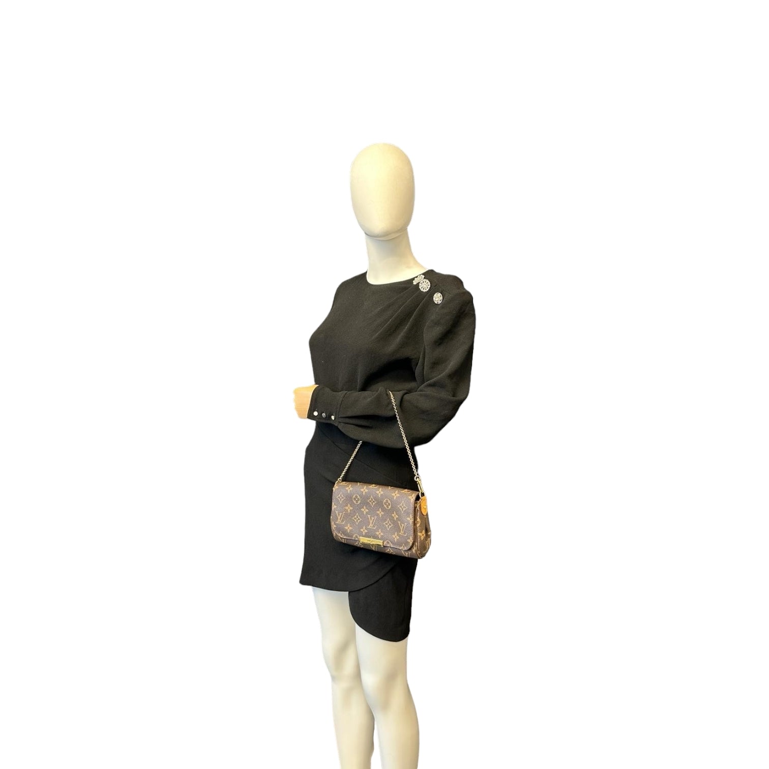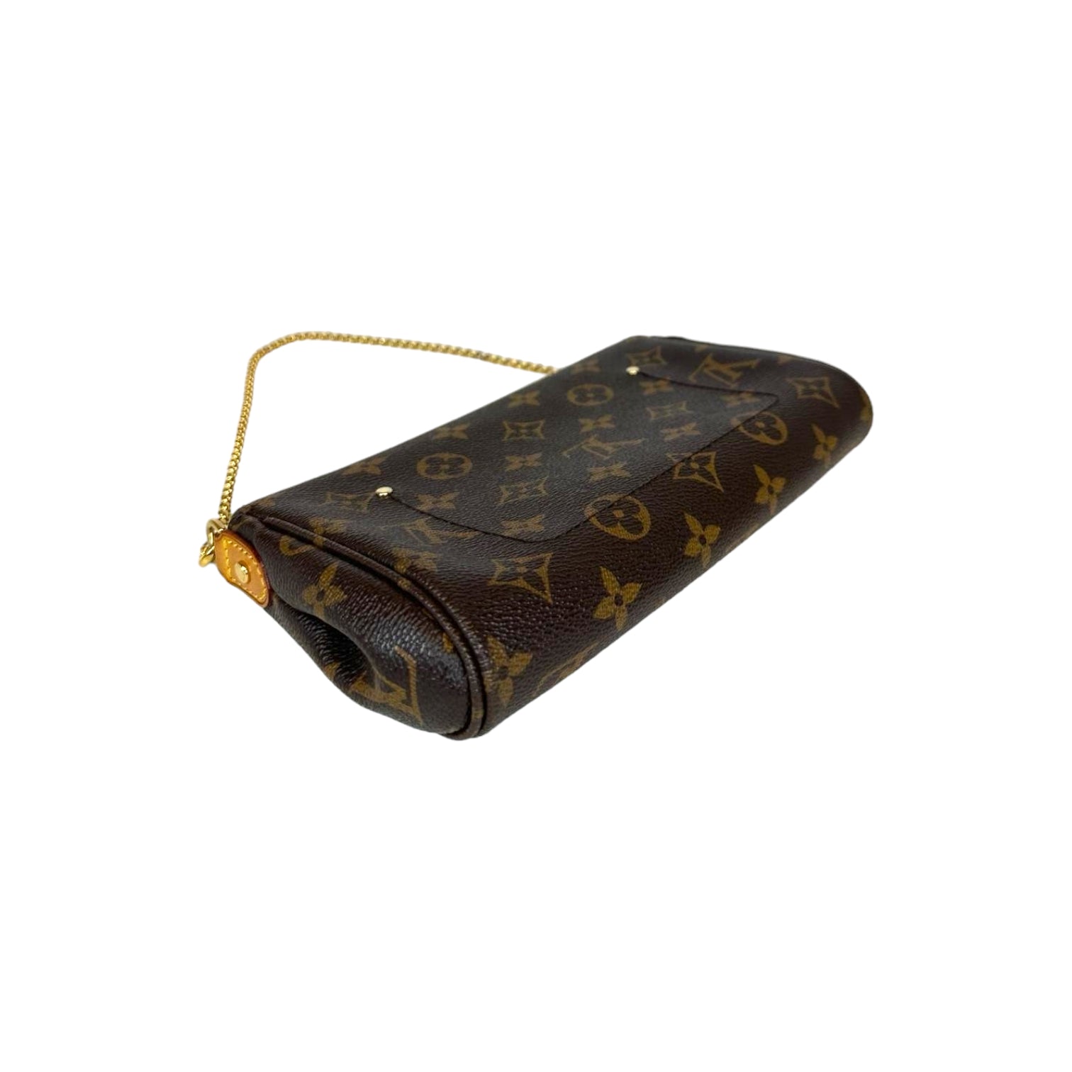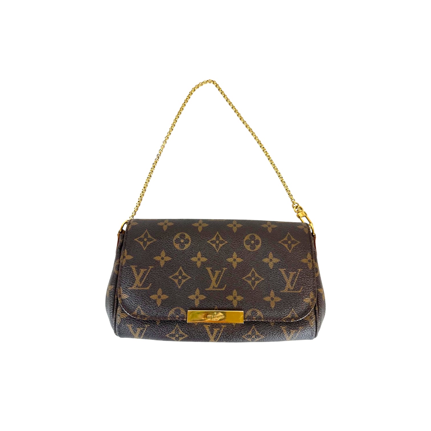 This LV Favorite MM is made from classic brown Monogram canvas. The front flap is magnetically secured and features a gold fitting with the name of the house and Paris, the company’s home town. The Bag can be carried comfortably in the hand as a clutch. Alternatively, the Bag also has a detachable vachetta leather shoulder strap that allows it to be crossbody. The interior of the small Bag has a slip pocket.