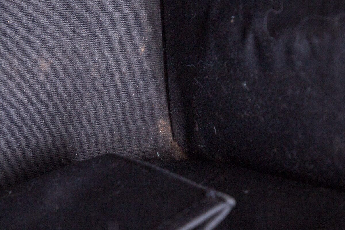 LV ’03 Black Epi Leather Riviera Handbags With Gold Hardware. This item is fresh with some wear; scratching and scuffing on exterior, leather separating on handles, and some fading/marks on lining.