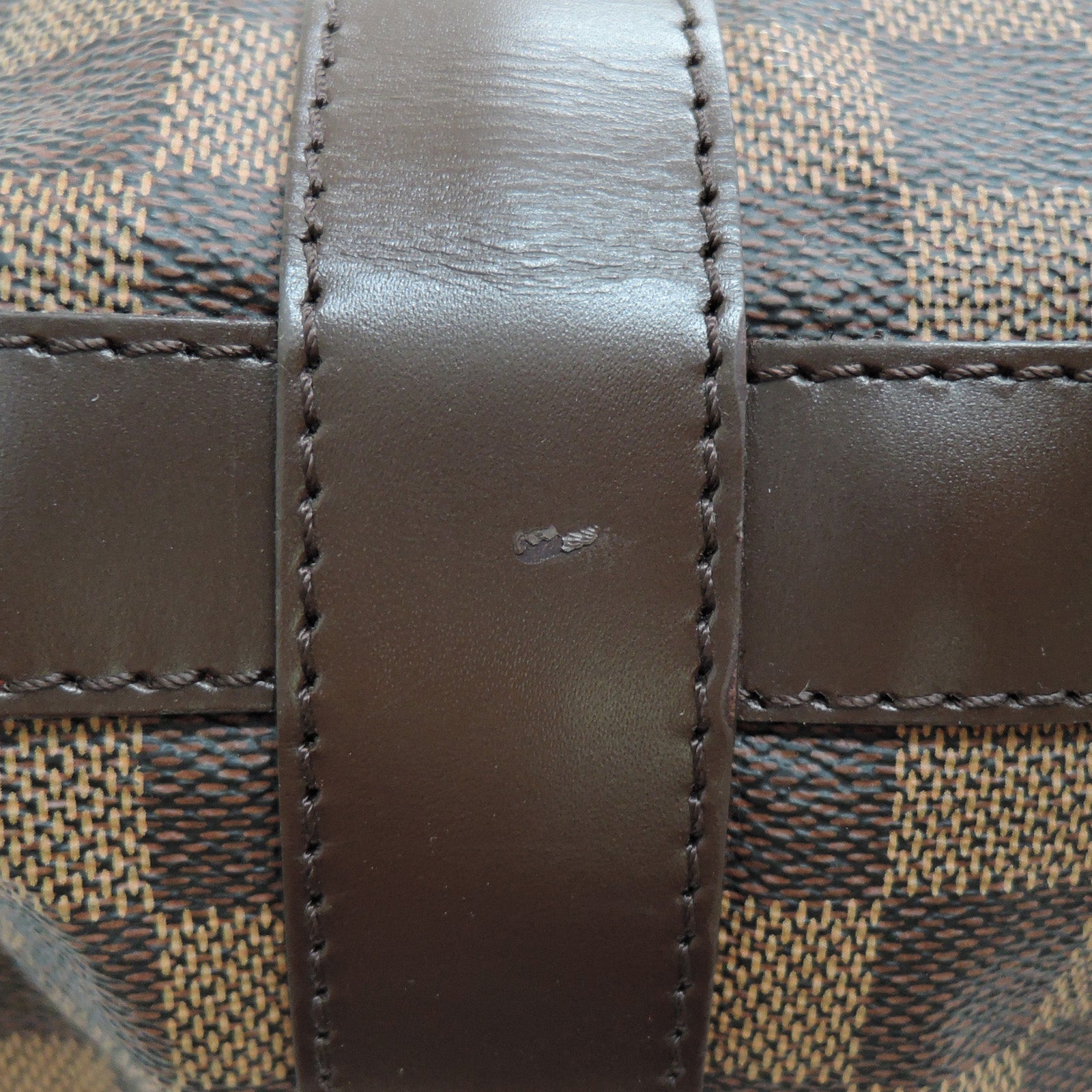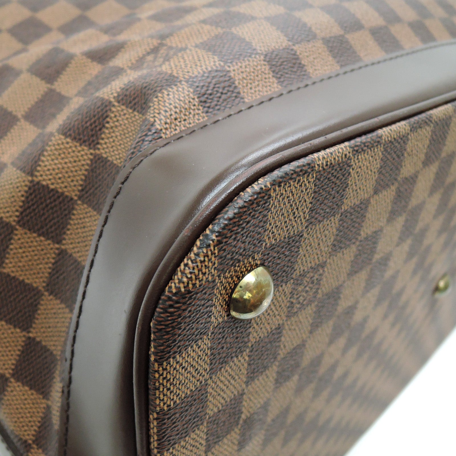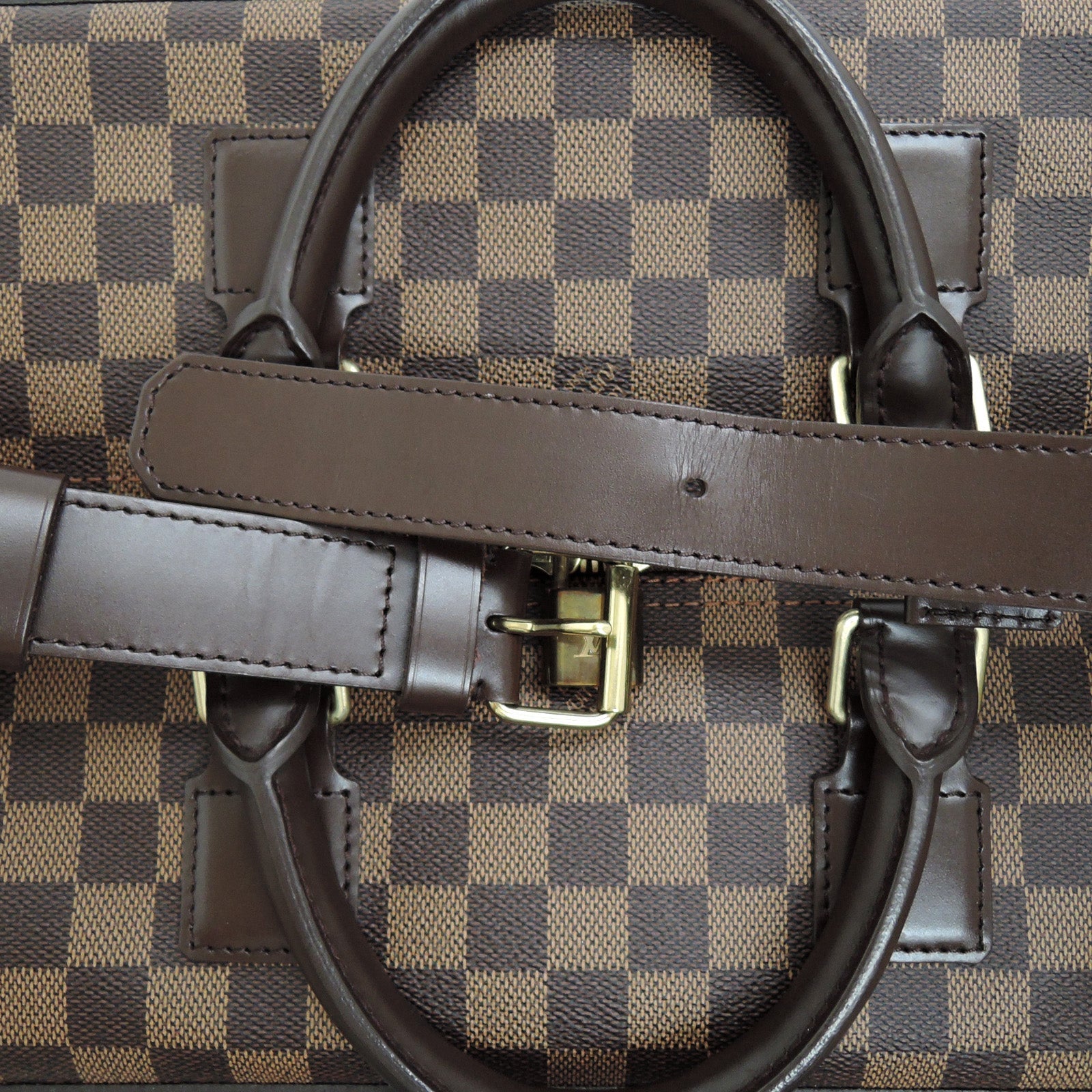 This cool LV Grimaud 45 seduces to be taken on a trip. Thanks to his format, he represents a practical and stylish companion in order to always have the most important belongings with him. the Bag Canvas were made from Braunem Damier level and is played around for a classic LV look of dark brown, leather cushions and golden details. With their two rolled, leather handles the Bag be carried out comfortably in the hand.