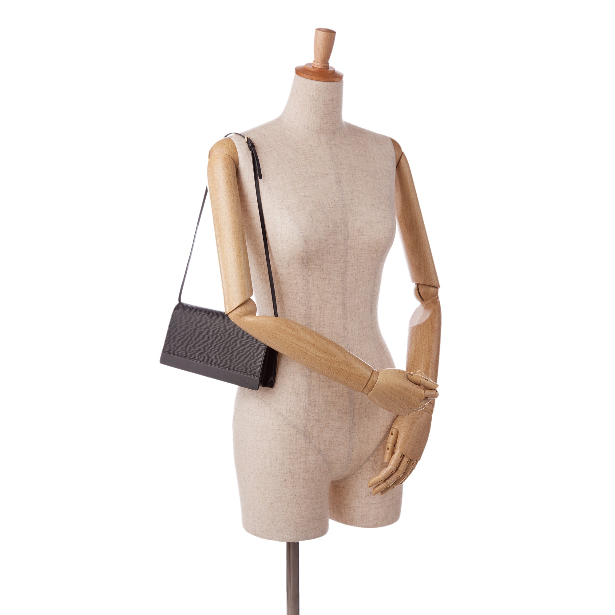 This LV Honfleur was made from black epi leather. The Bag features a slim leather shoulder strap adjustable in length, a flap with a snap closure and a slip pocket inside. The Bag is worn over the shoulder.