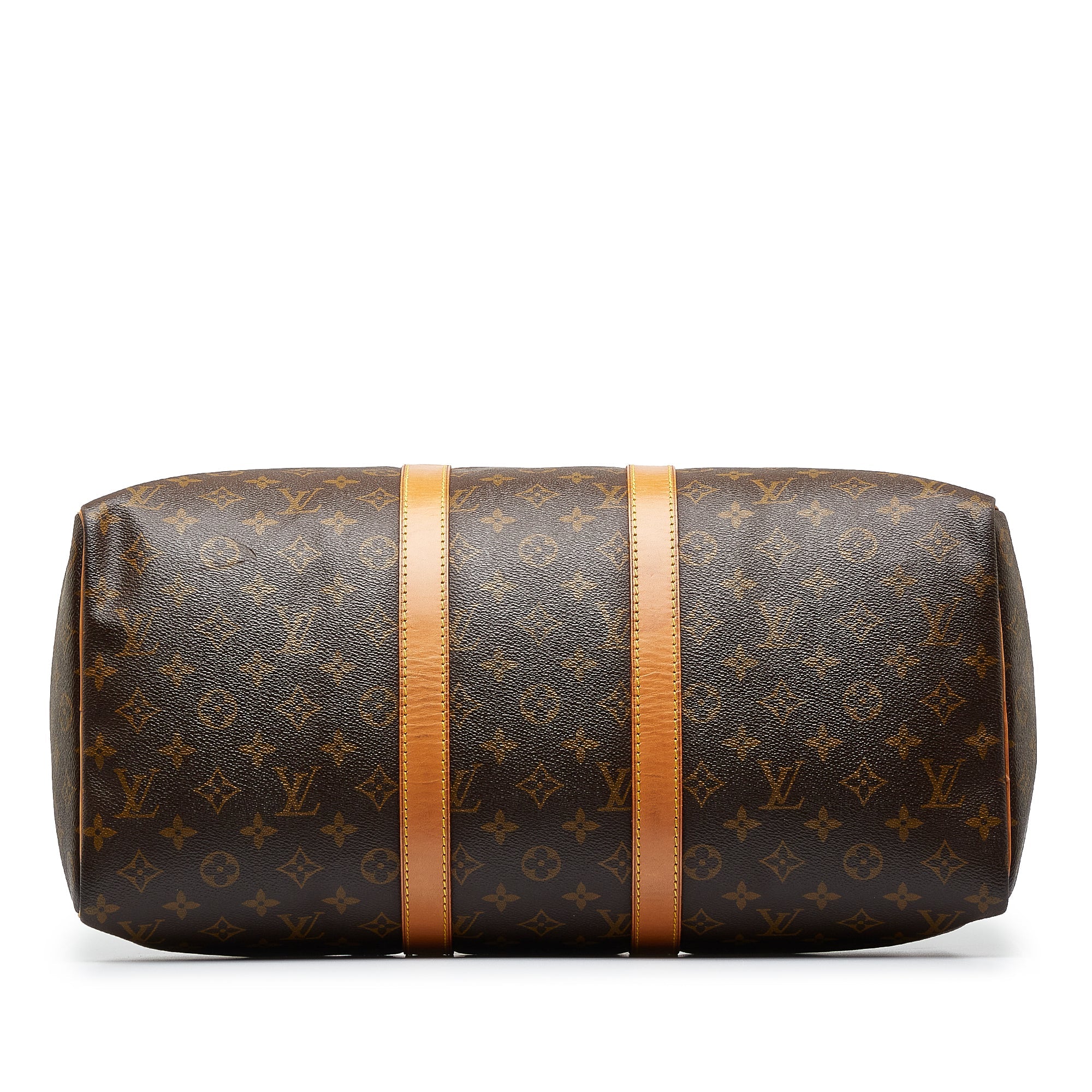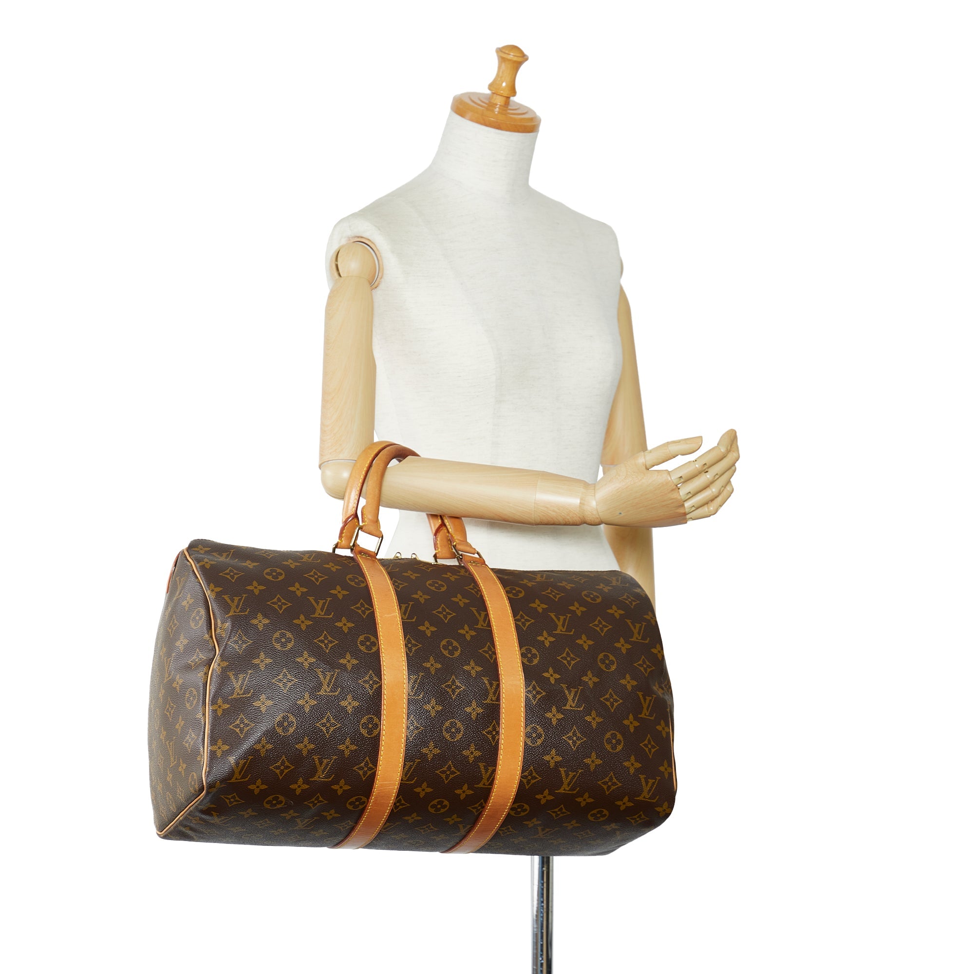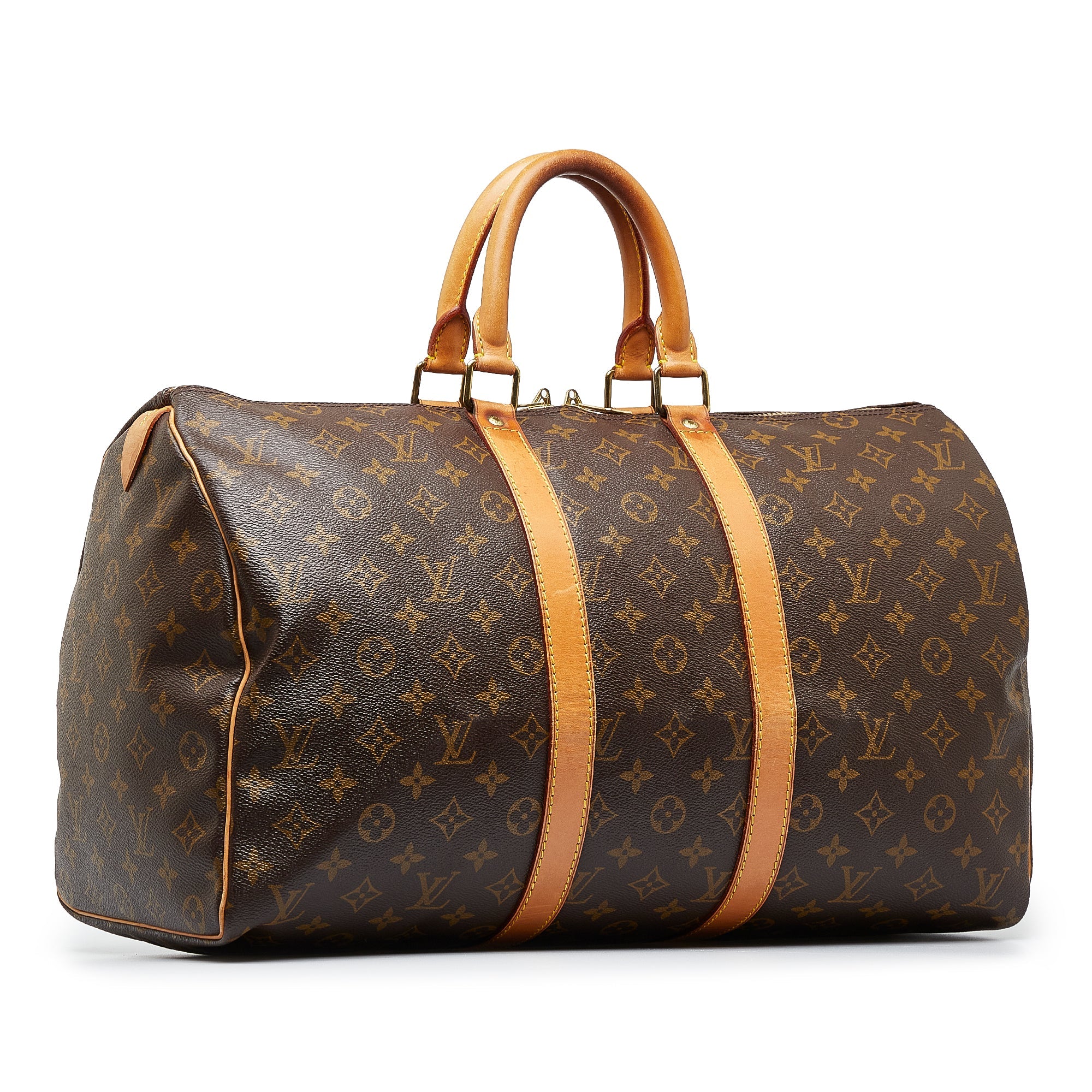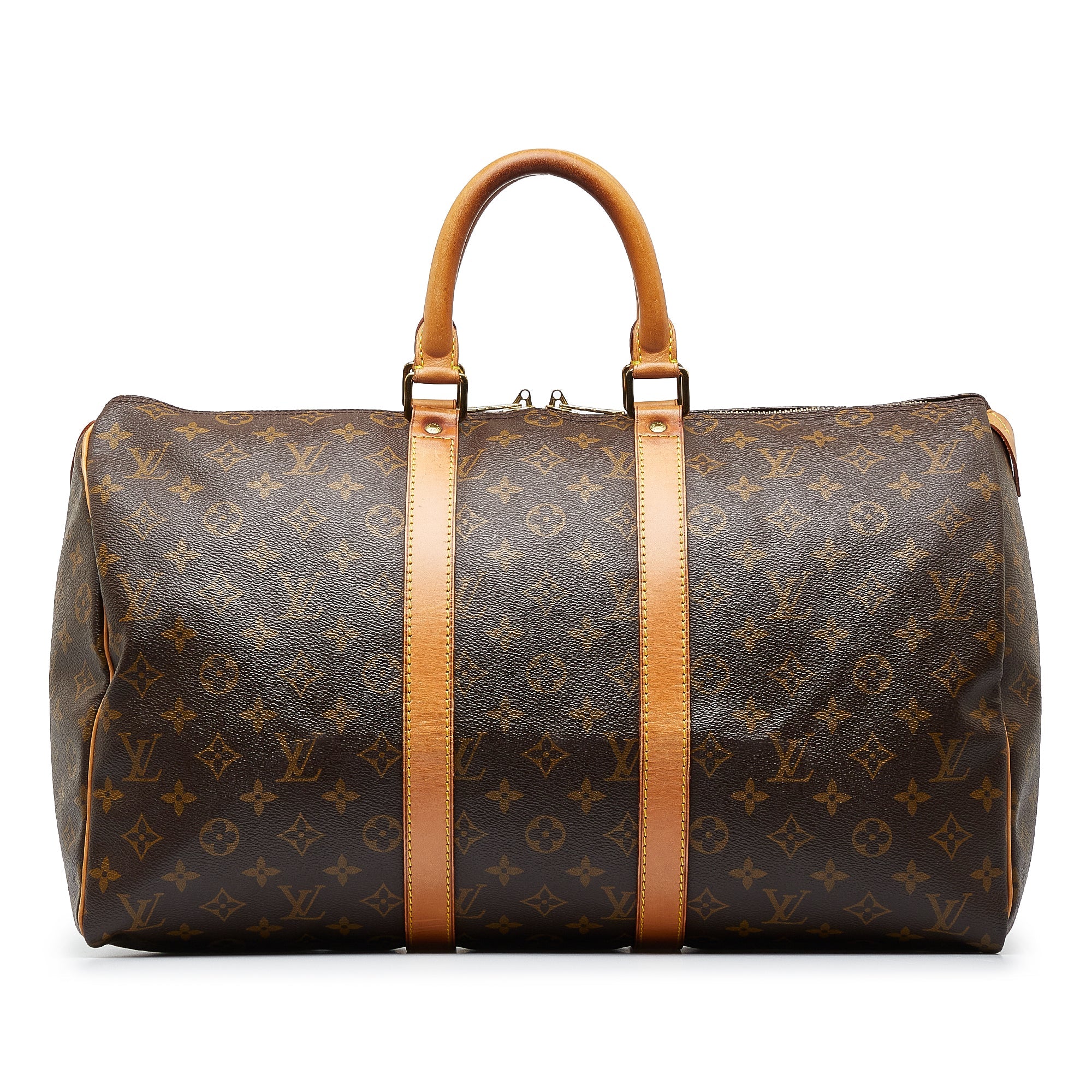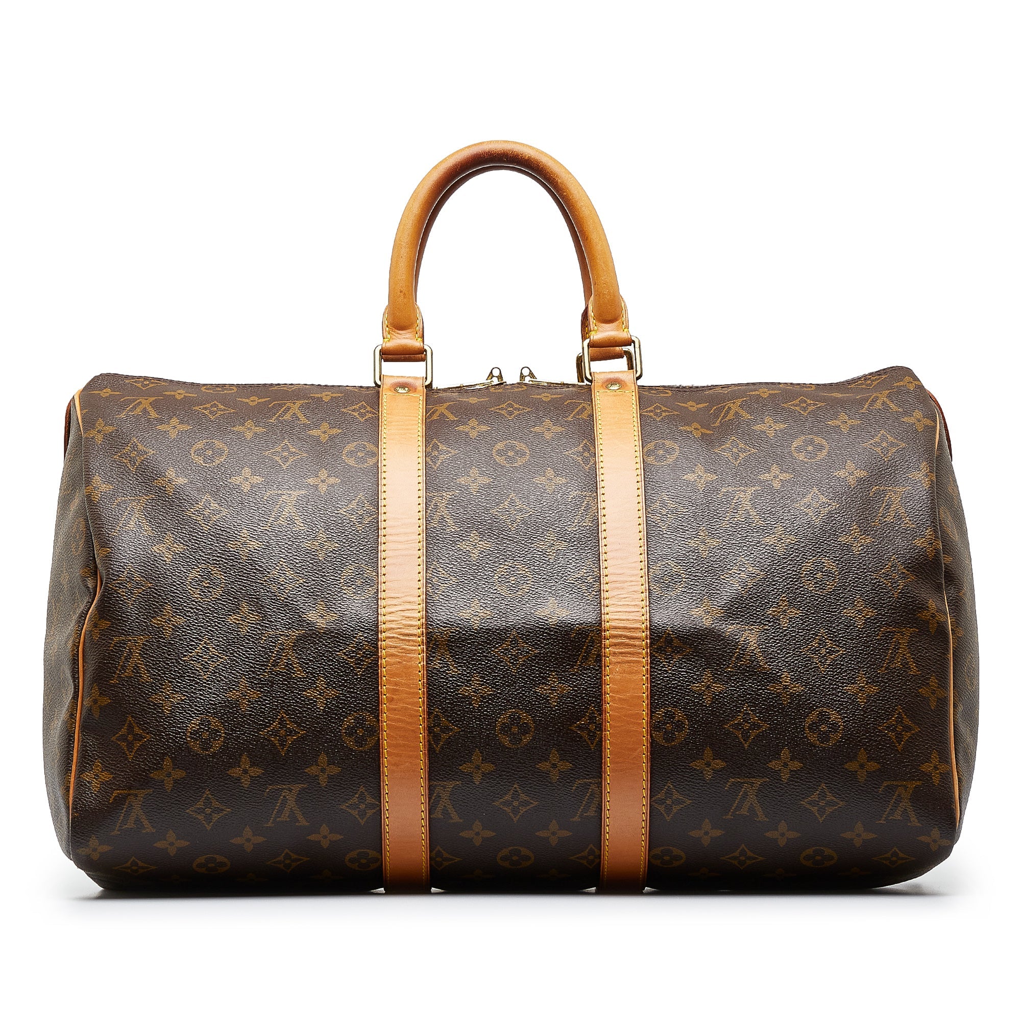 The LV Keepall 45 is a true classic from the LV travel bag collection. This one is made from the classic dark brown Monogram canvas. The spacious Bag features a double gold-tone brass zipper at the top opening. Light brown handles and vachetta leather trim create the signature LV look. A great companion for a weekend trip.