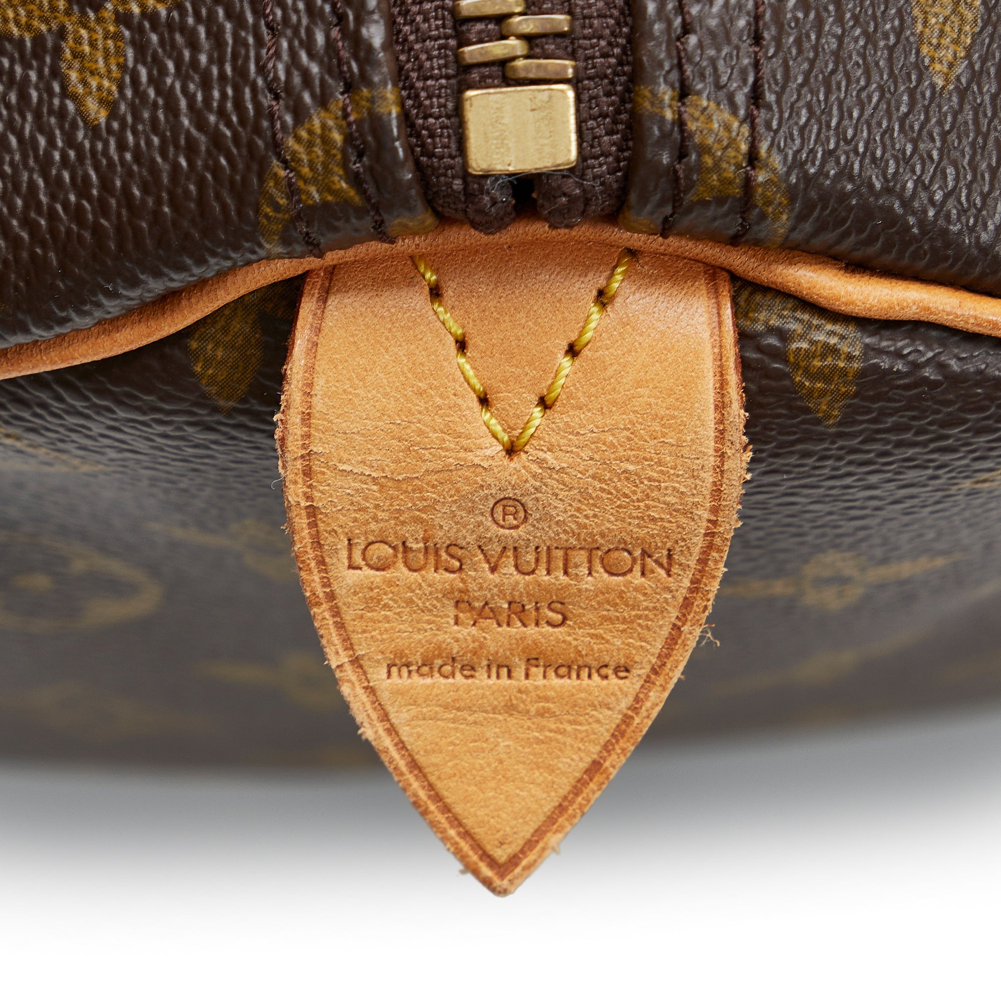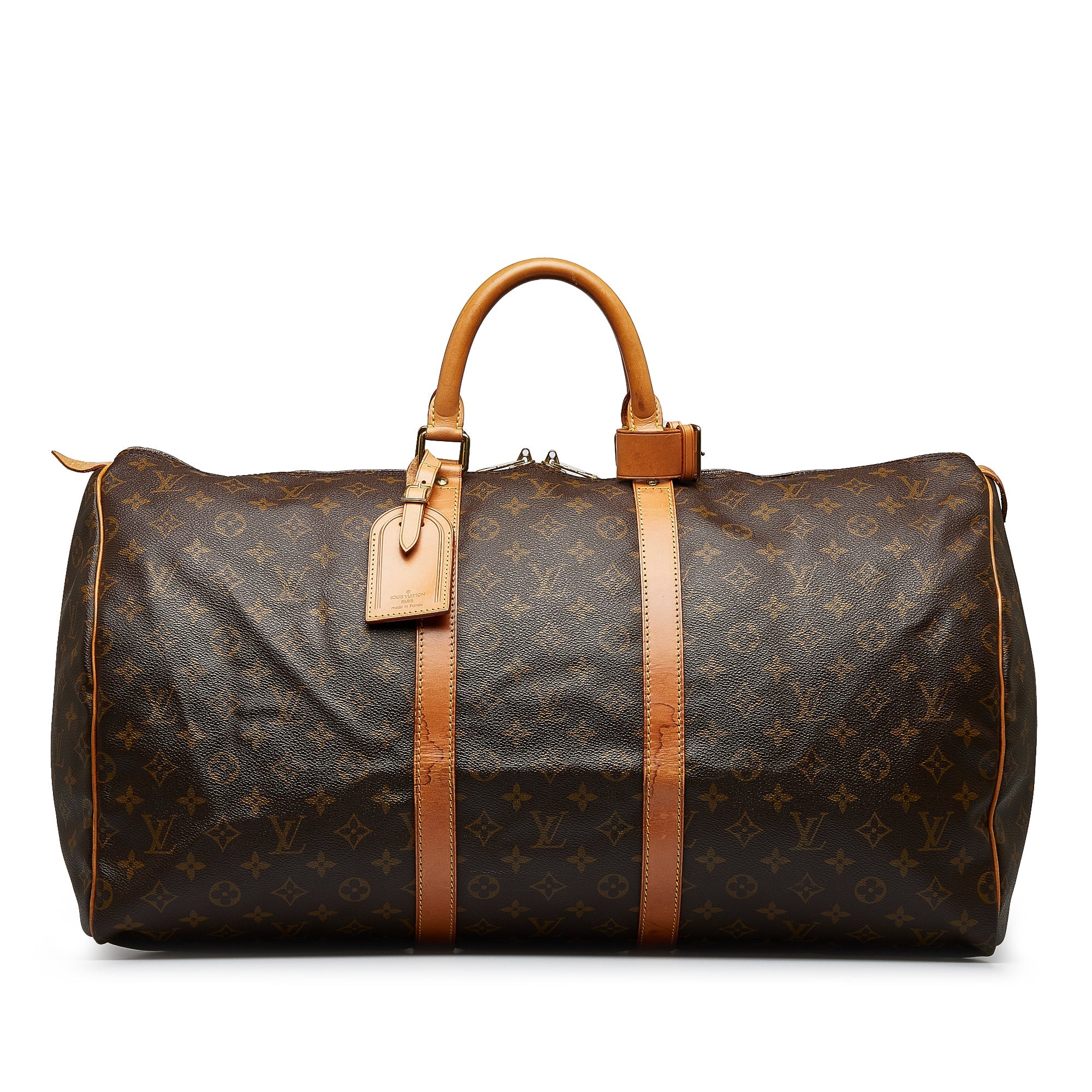 The LV Keepall 55 is a true classic from the LV travel bag collection. This one has been crafted from dark brown Monogram canvas. The spacious Bag features a double gold-tone zipper at the top opening. Light brown leather handles and trim create the signature LV look. A great companion for a weekend trip.