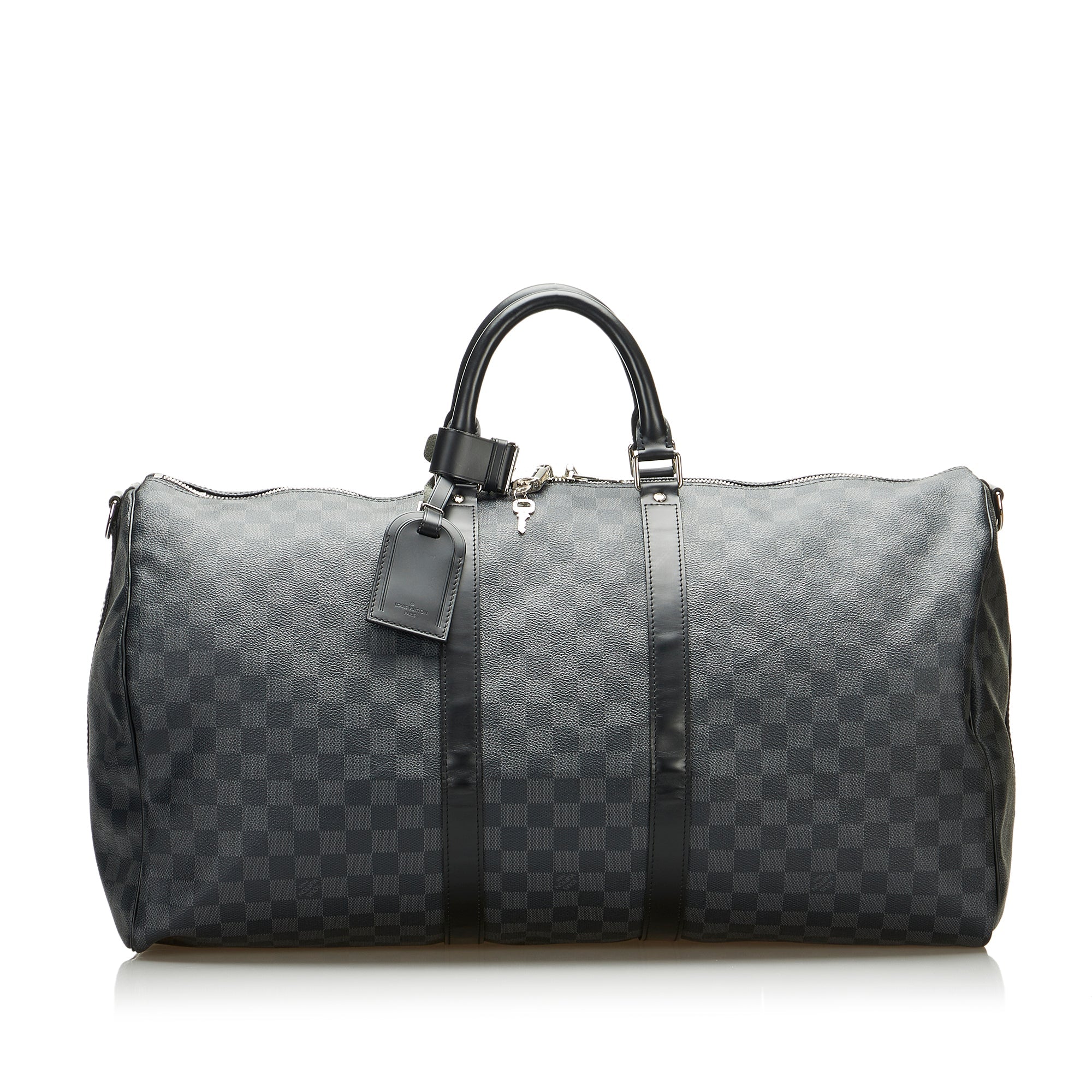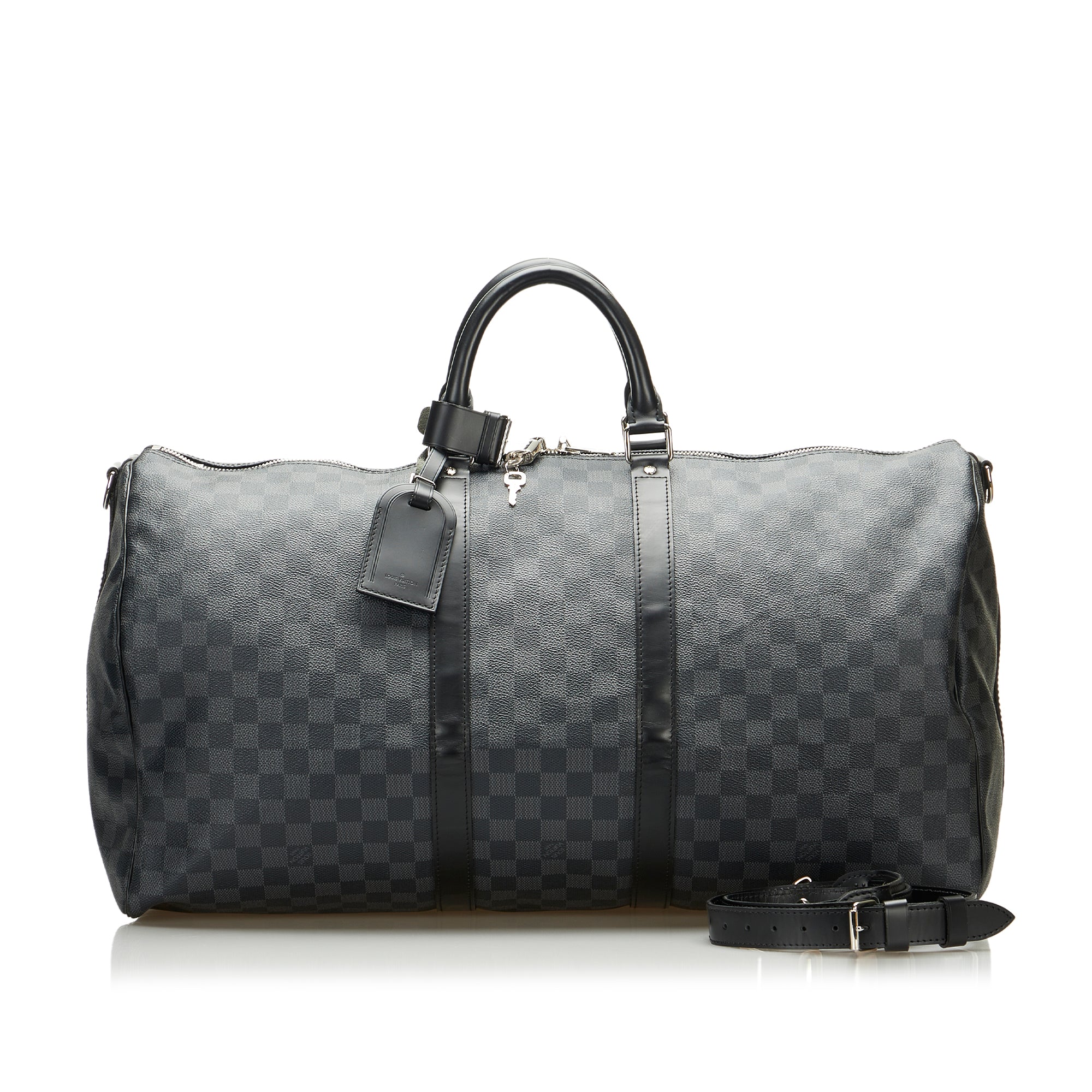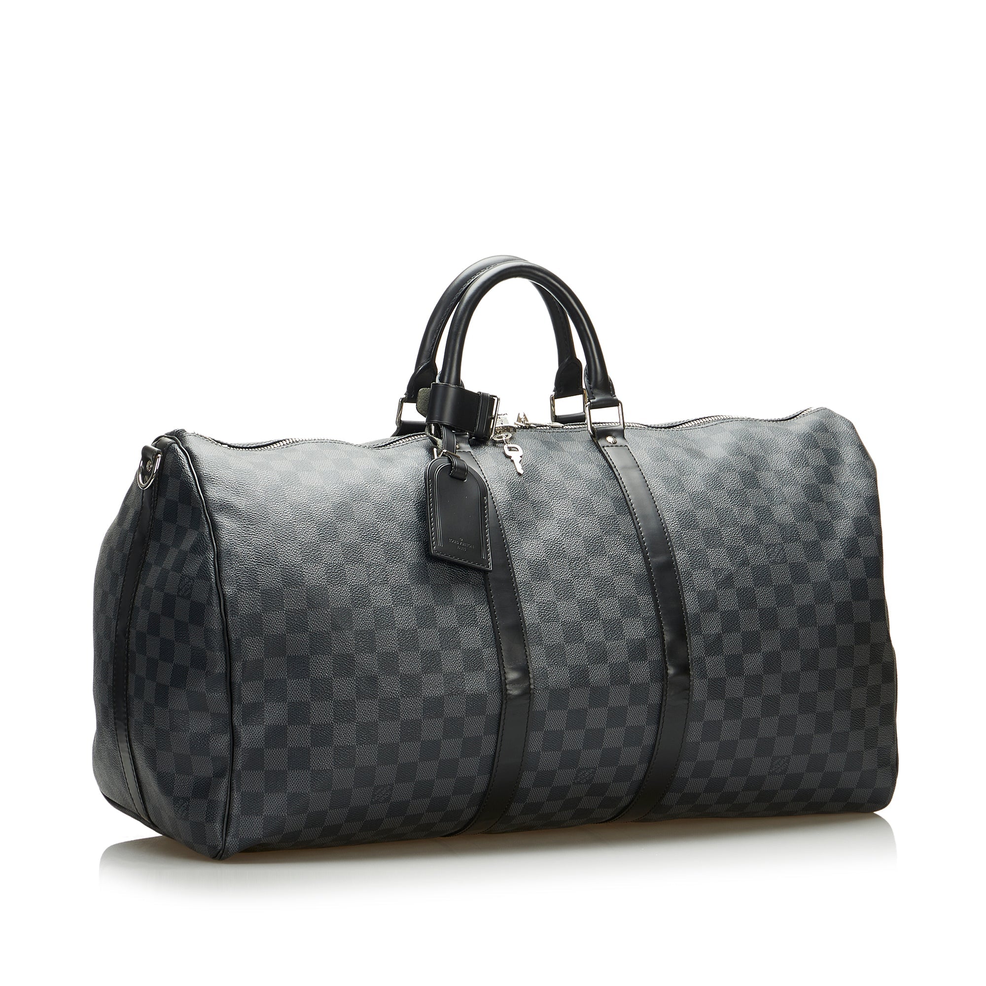 The LV Keepall 55 is a true classic from the LV travel bag collection. This specimen was made from Damier Graphite Canvas. The spacious Bag features a double brass zipper at the top opening. Black handles and leather trim create the signature LV look. A great companion for a weekend trip.