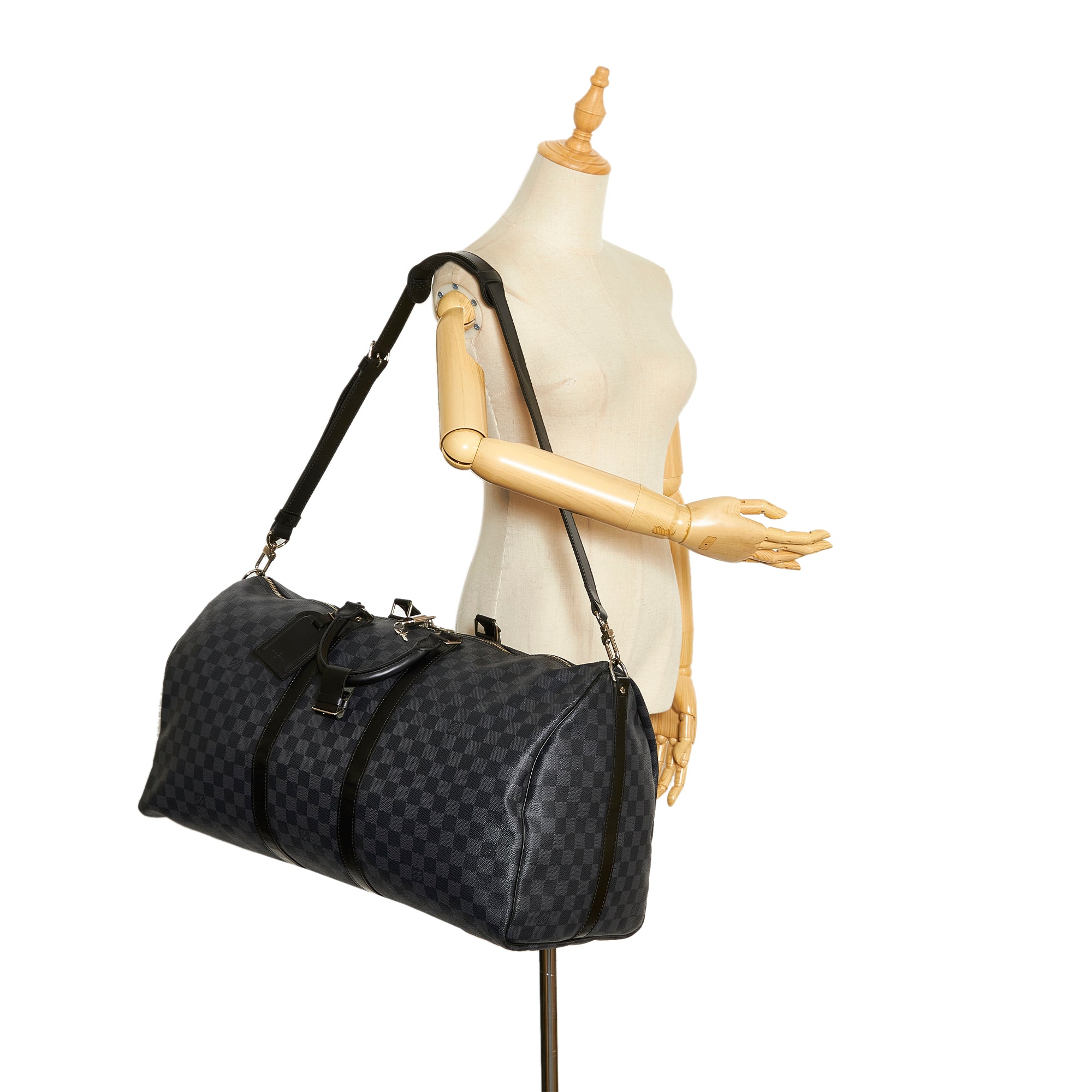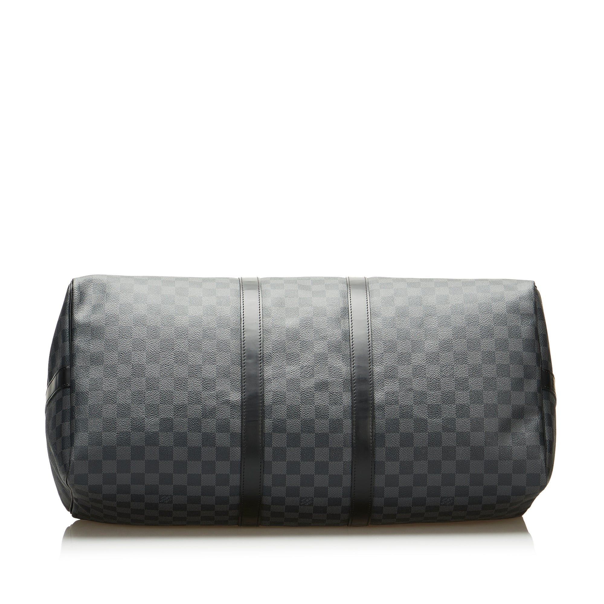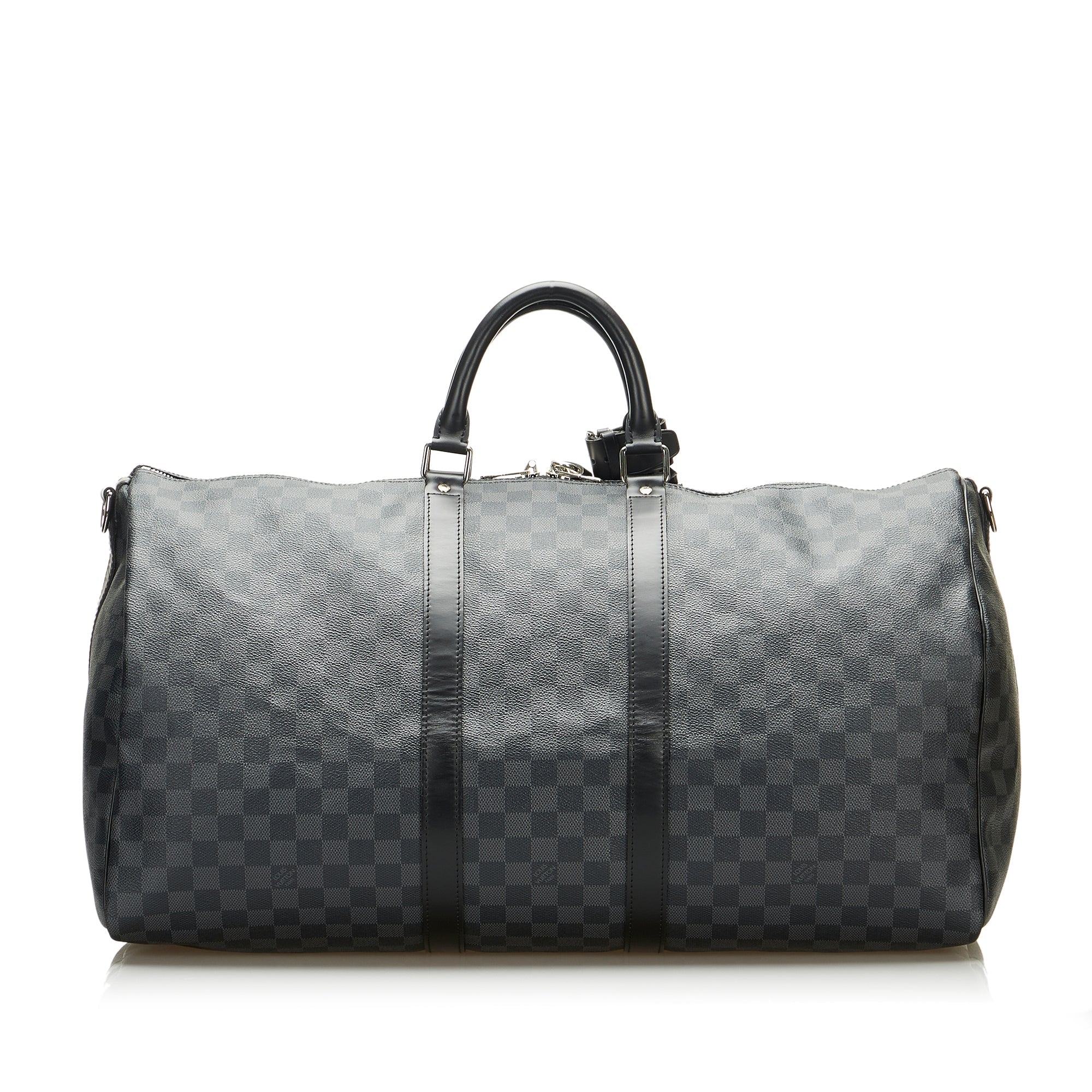 The LV Keepall 55 is a true classic from the LV travel bag collection. This specimen was made from Damier Graphite Canvas. The spacious Bag features a double brass zipper at the top opening. Black handles and leather trim create the signature LV look. A great companion for a weekend trip.
