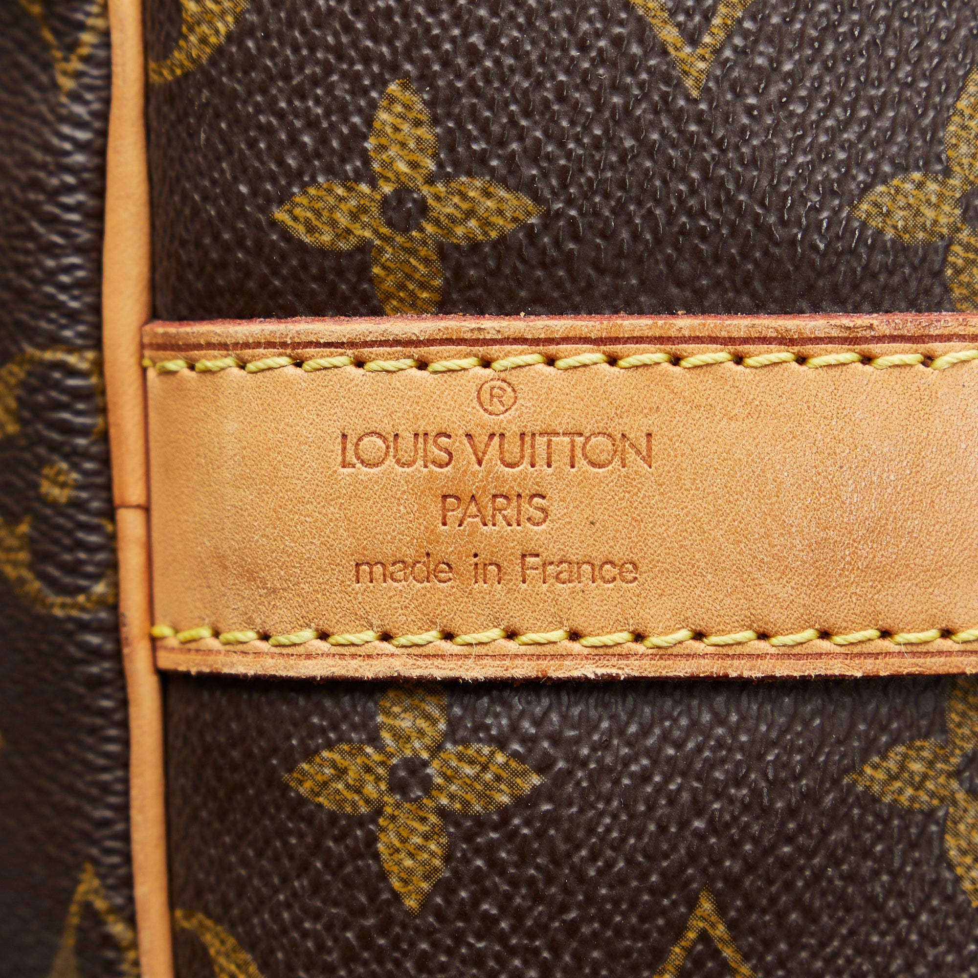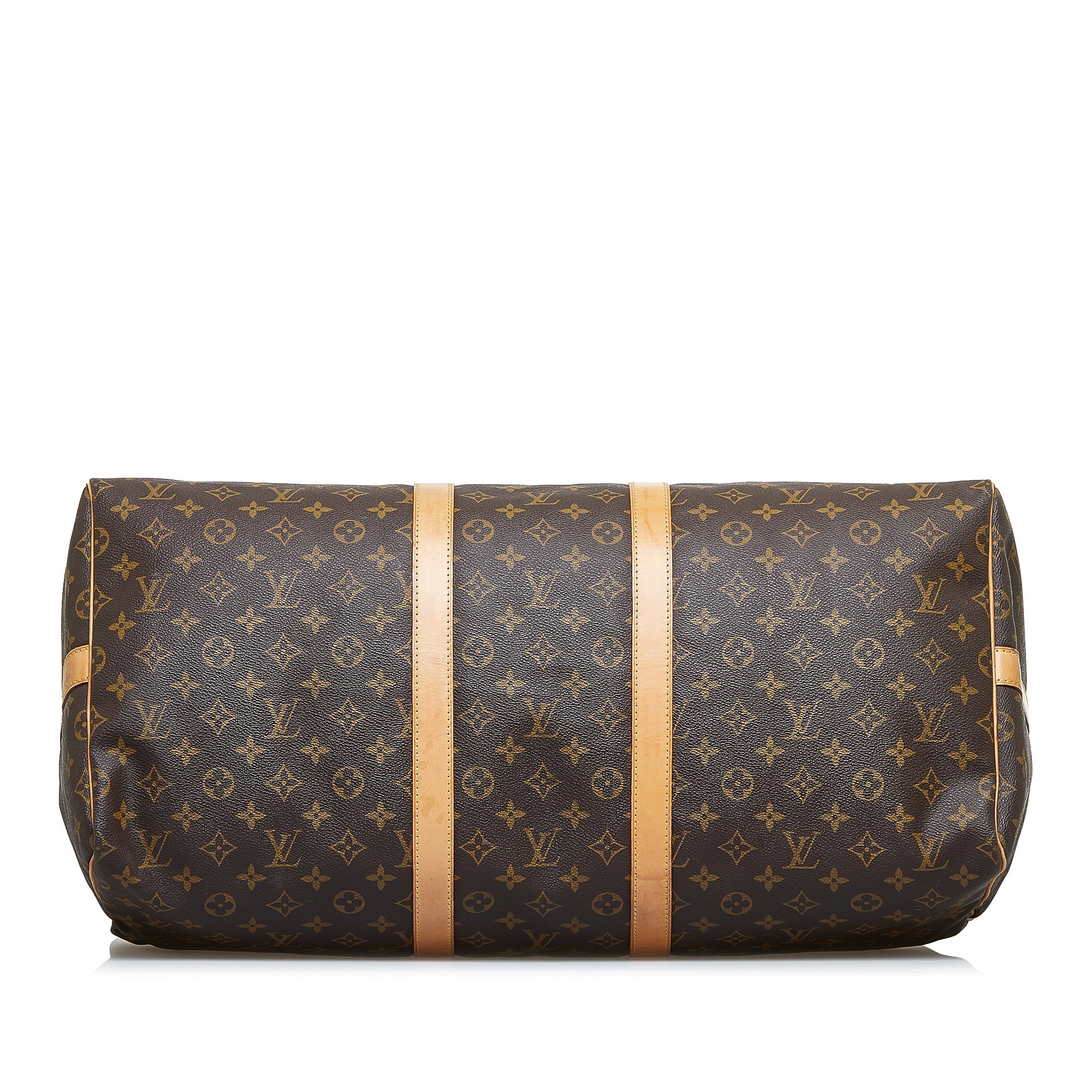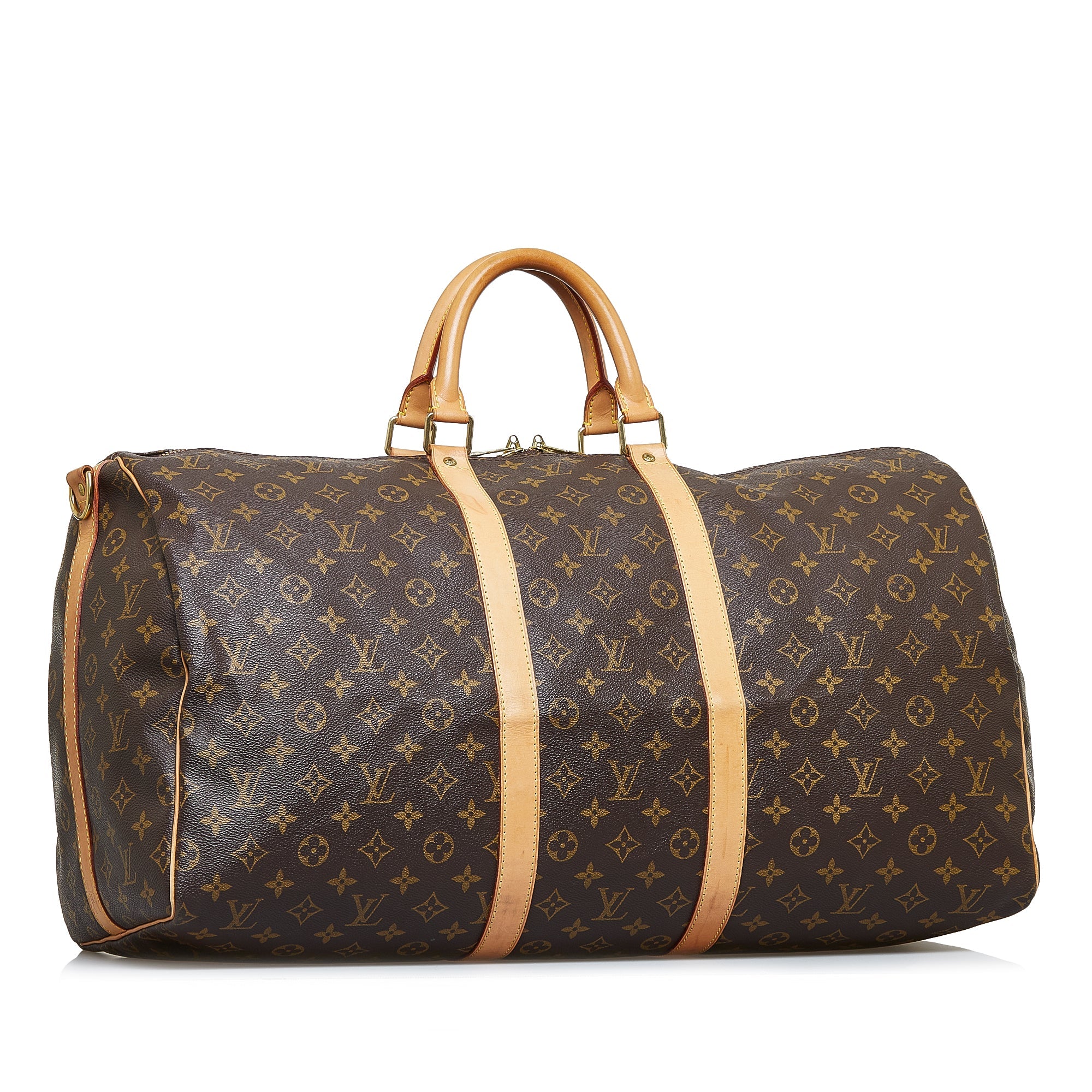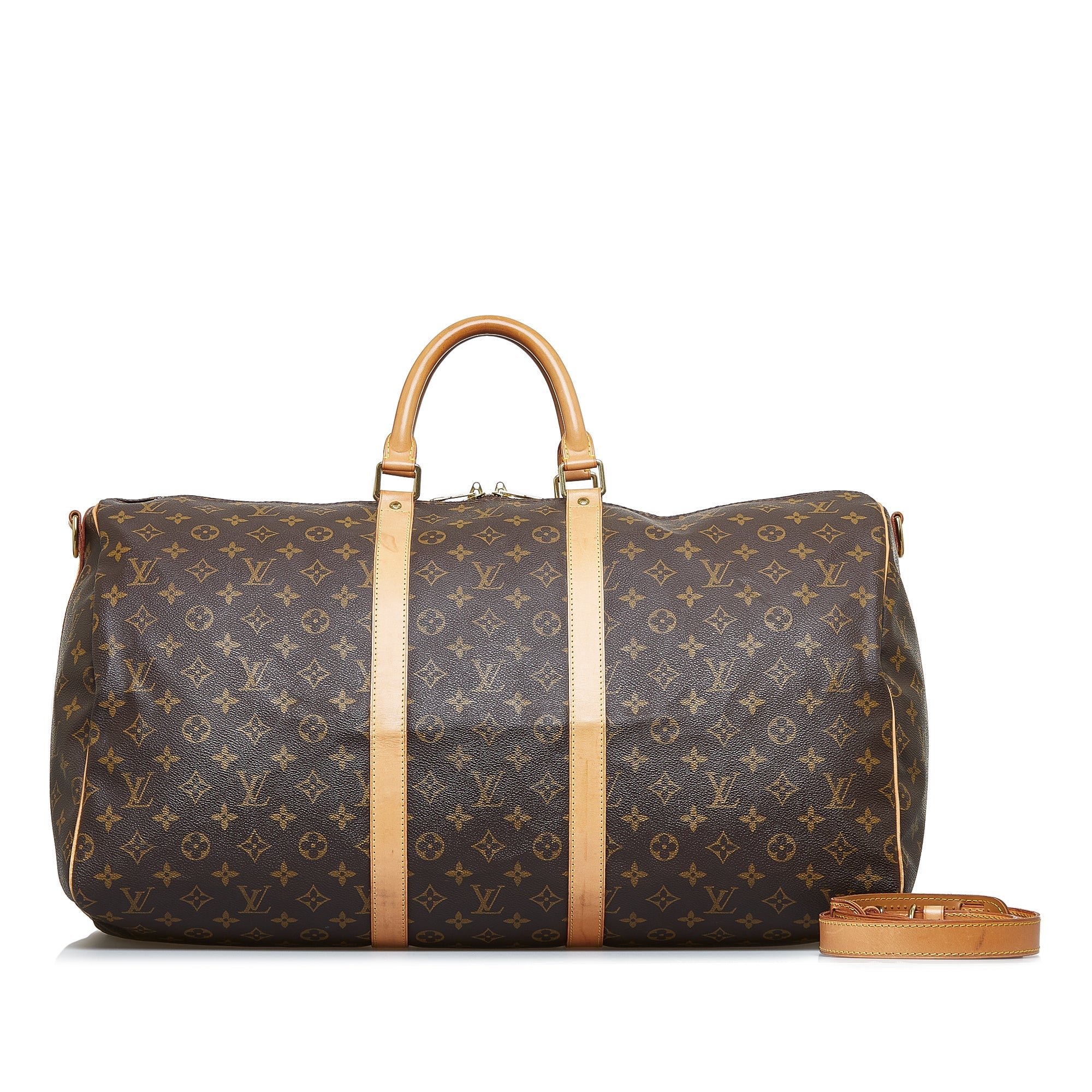 The LV Keepall 55 Bandoulière is a true classic from the LV travel bag collection. This one has been crafted from dark brown Monogram canvas. The spacious Bag features a double gold-tone brass zipper at the top opening. Light brown leather handles and trim create the signature LV look. A great companion for a weekend trip.
