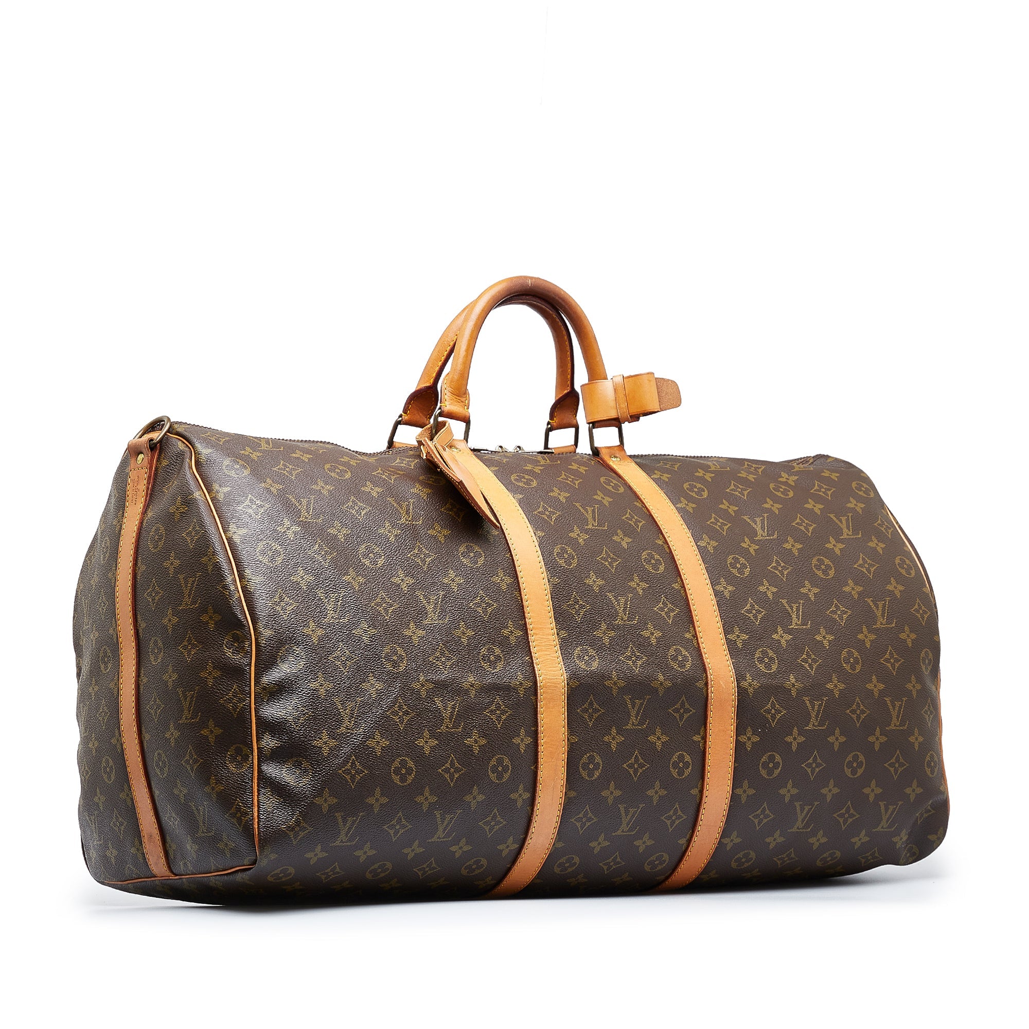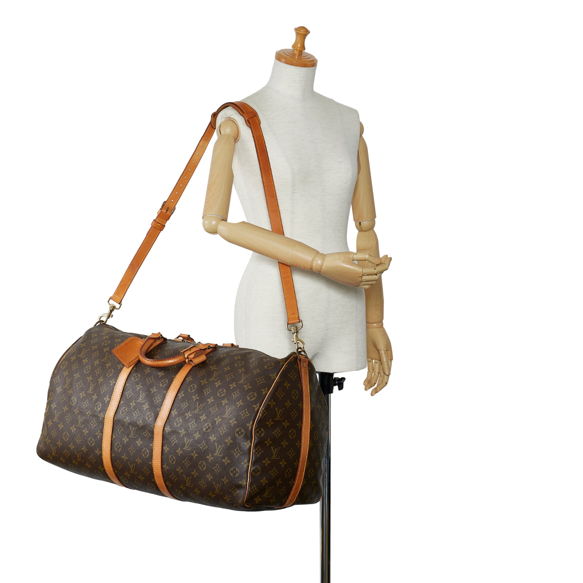 The LV Keepall with shoulder strap is a true classic from the LV travel bag collection. This piece is made from the famous Monogram canvas. The spacious Bag has a double gold-tone brass zipper at the top opening. There is a slip pocket on the right side. The tan vachetta leather handles and trim add a modern, fresh LV look. A great companion for the weekend trip that can be carried relaxed in the hand or over the shoulder with the detachable shoulder strap.
