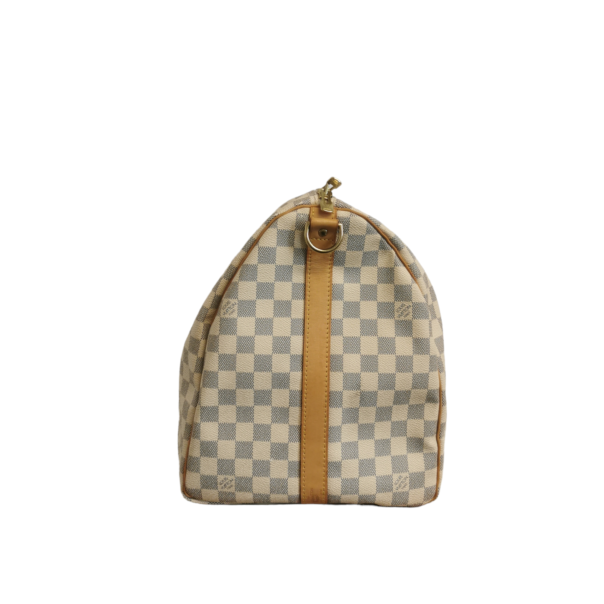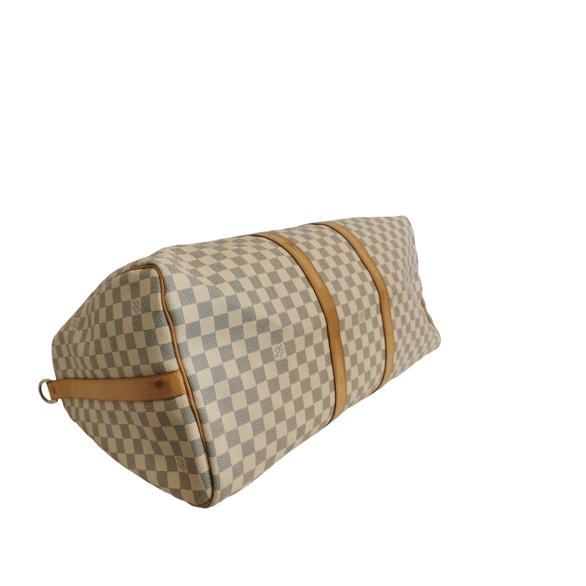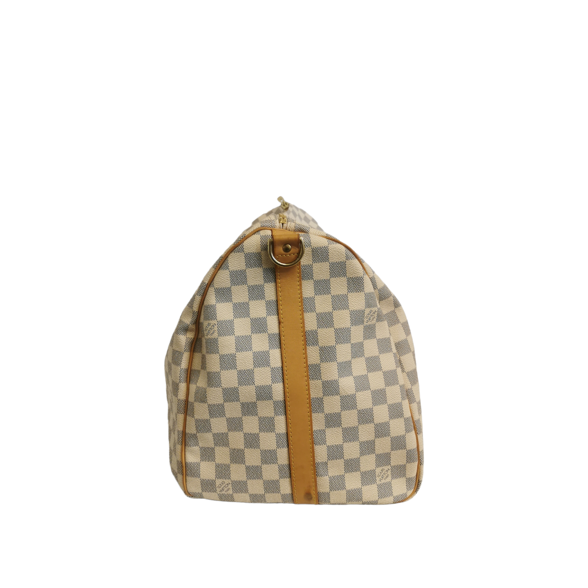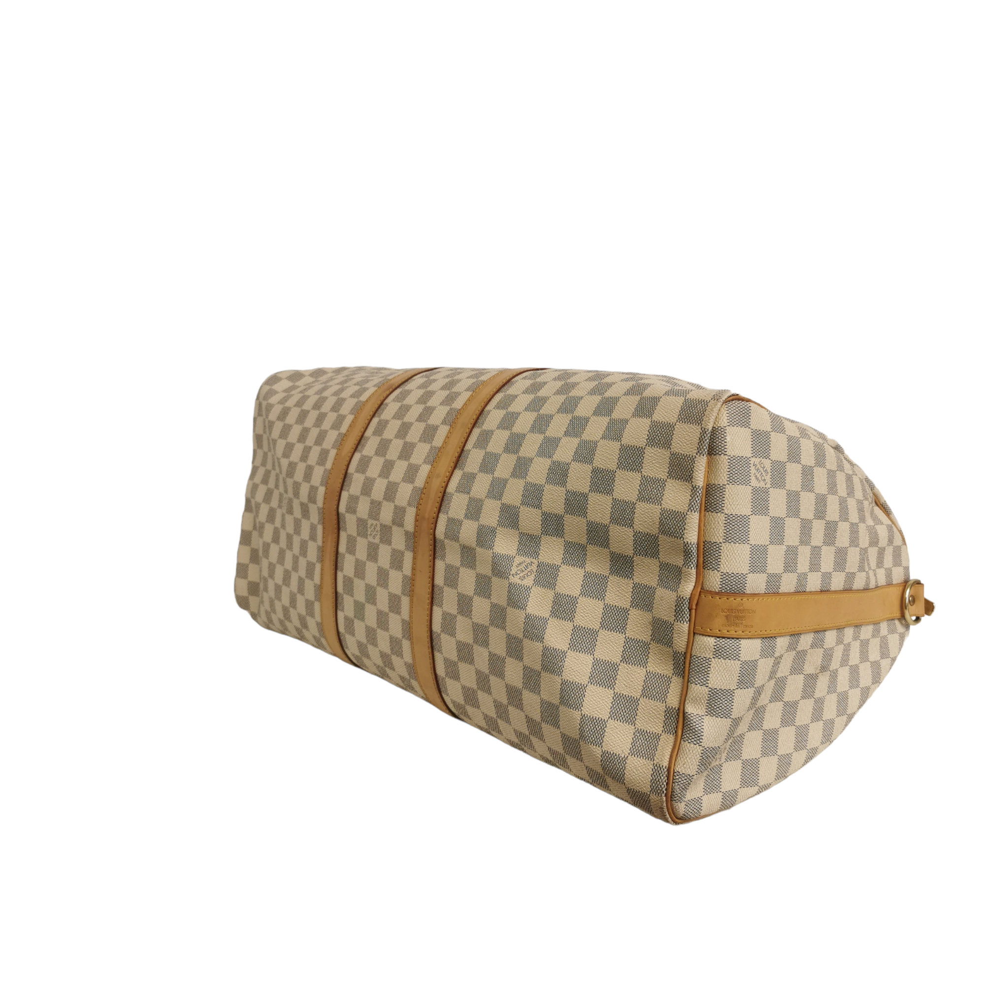 The LV Keepall Damier Azur is a true classic from the LV travel bag collection. This specimen was made from Azur Canvas. The spacious Bag features a double gold-tone zipper at the top opening. Light brown handles and trimmings of leather create the signature LV look. A great companion for a weekend trip.