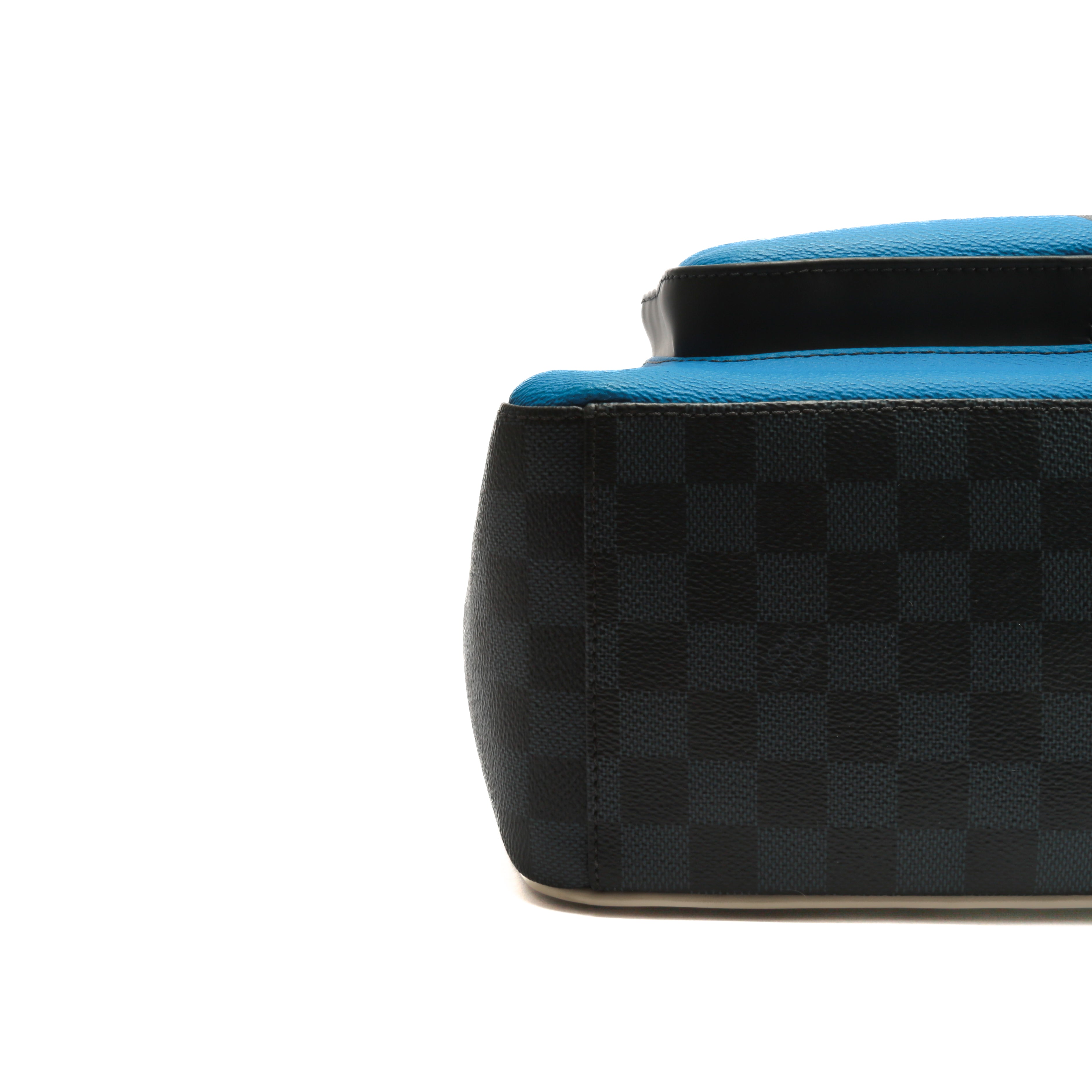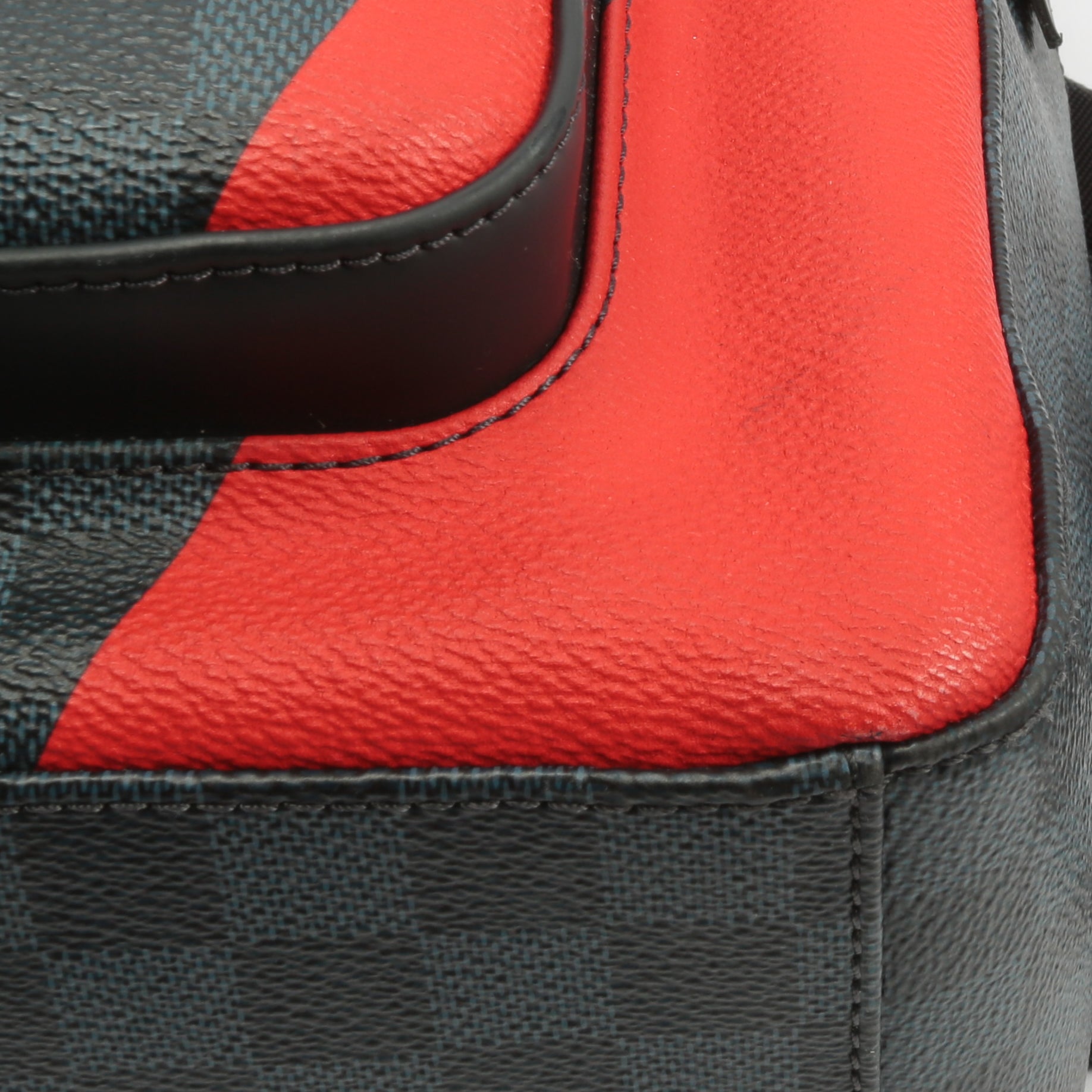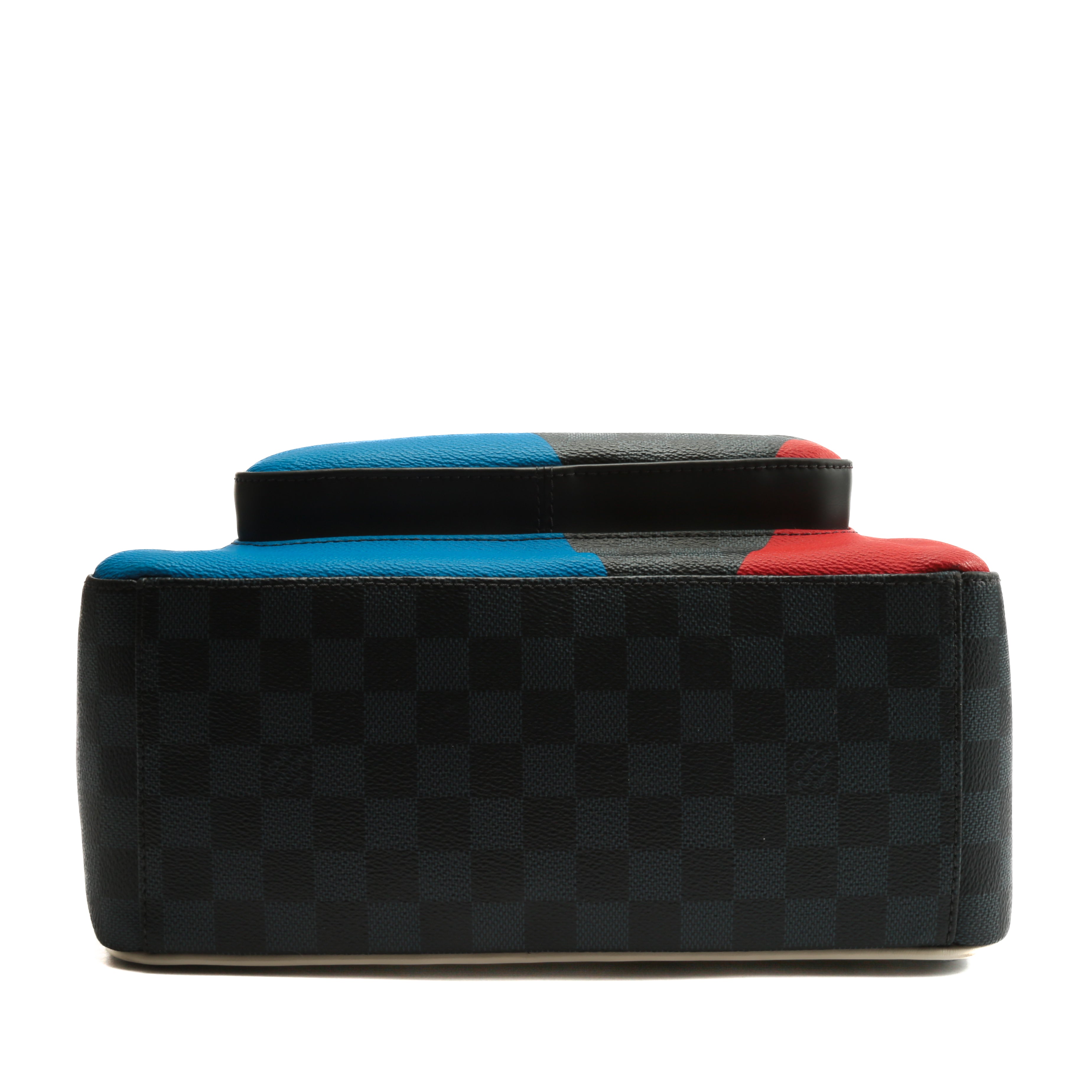 - Damier Cobalt Blue and Black Check with White, Blue, and Red Color Blocking Canvas and Black Leather Trim