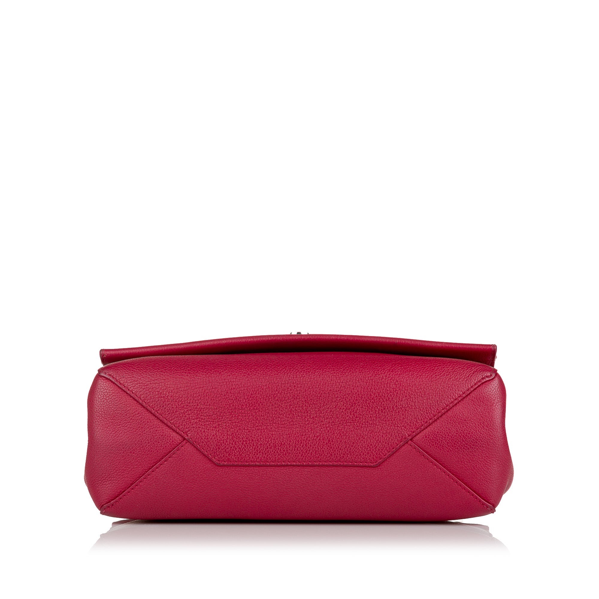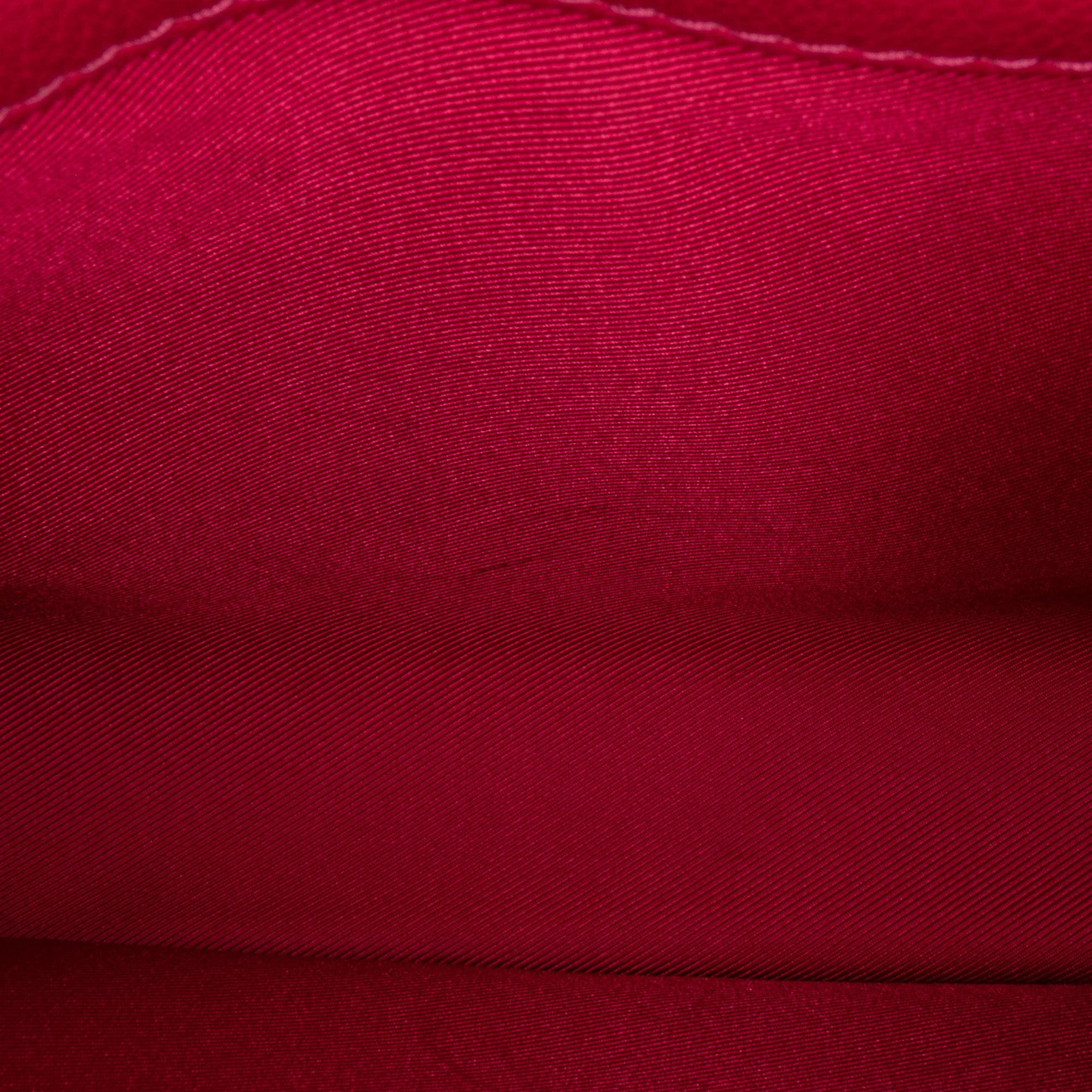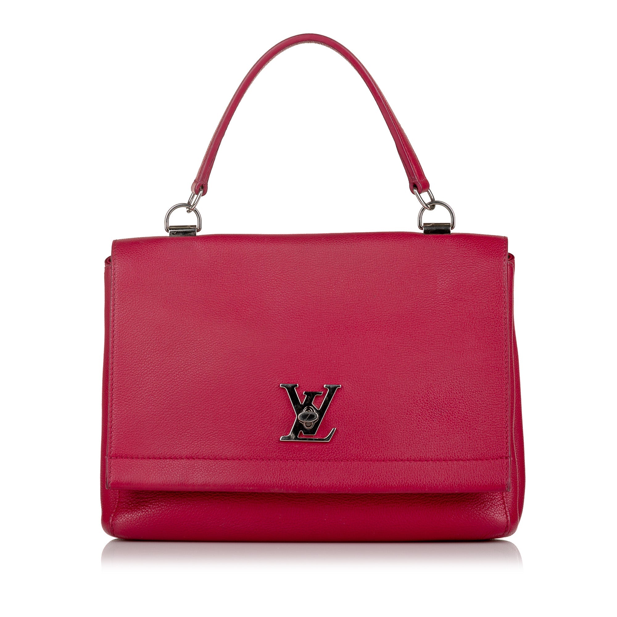 This beautiful LV Lockme II was made of pink leather. The Bag features a flat leather handle, a detachable shoulder strap, a flap with a silver twist closure and slip pockets inside. The Bag is worn in the hand or arm , but also over the shoulder thanks to the removable strap.