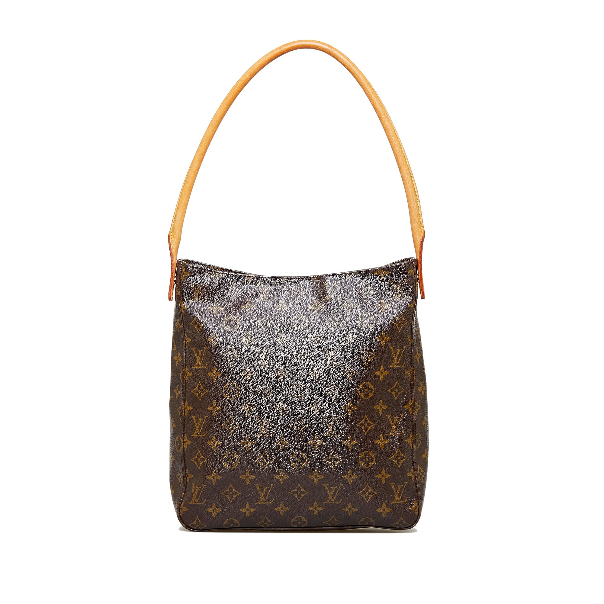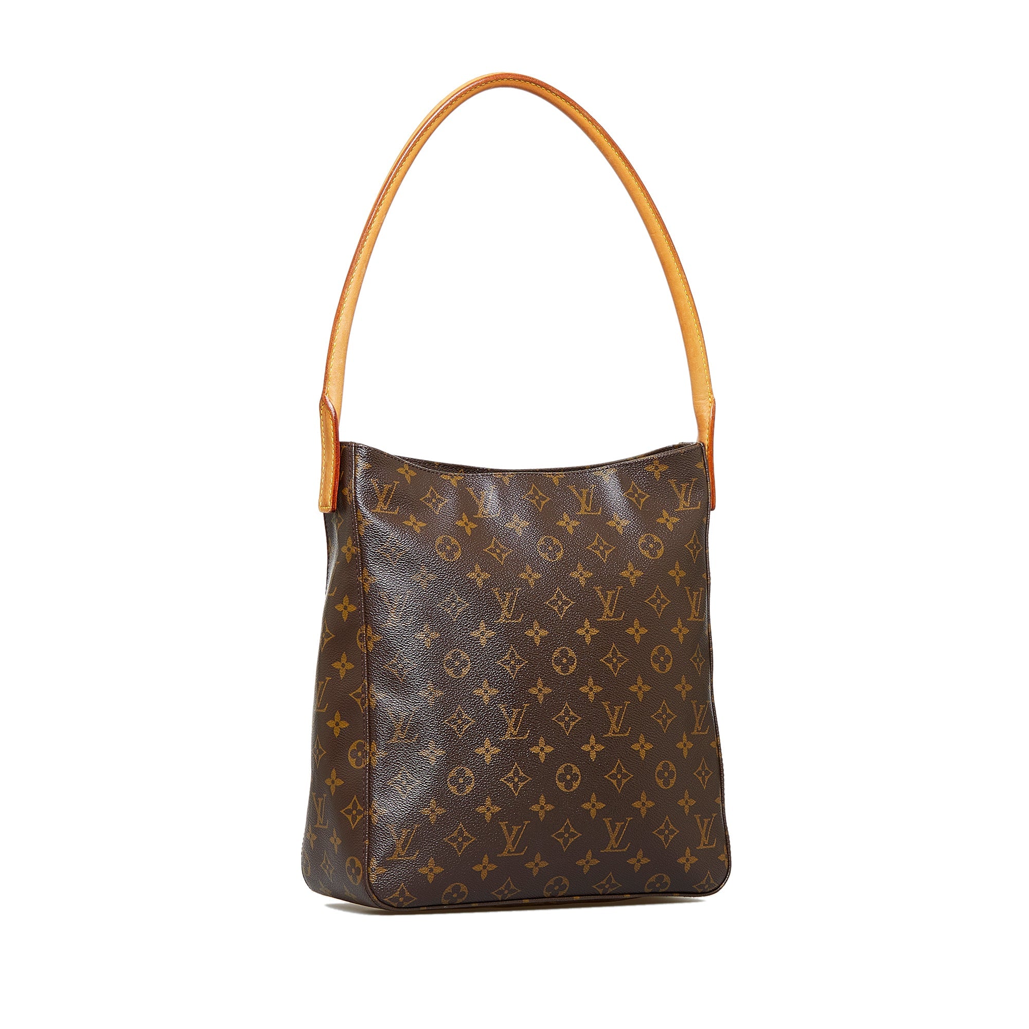 The LV Monogram Canvas Looping GM Bag has a unique and modern shape that is perfect for day or night. It is the largest member of the Looping family, all of which feature the padded leather bow handle. Inside, it has ample storage space and a zippered side compartment.