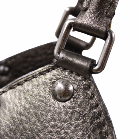 Exterior: NEWcan be seen throughout the bottom of the bag, hardware, and the shoulder strap.