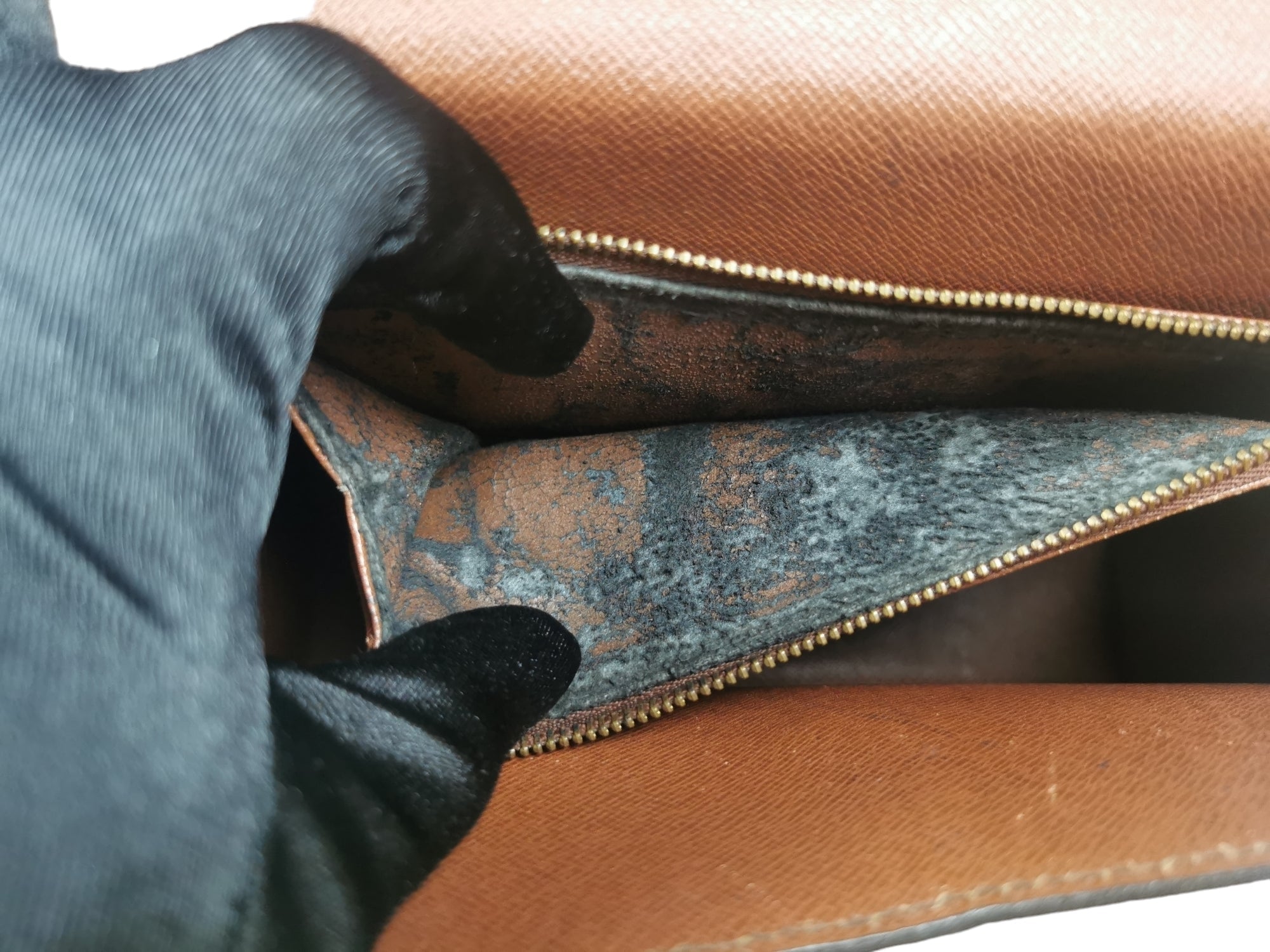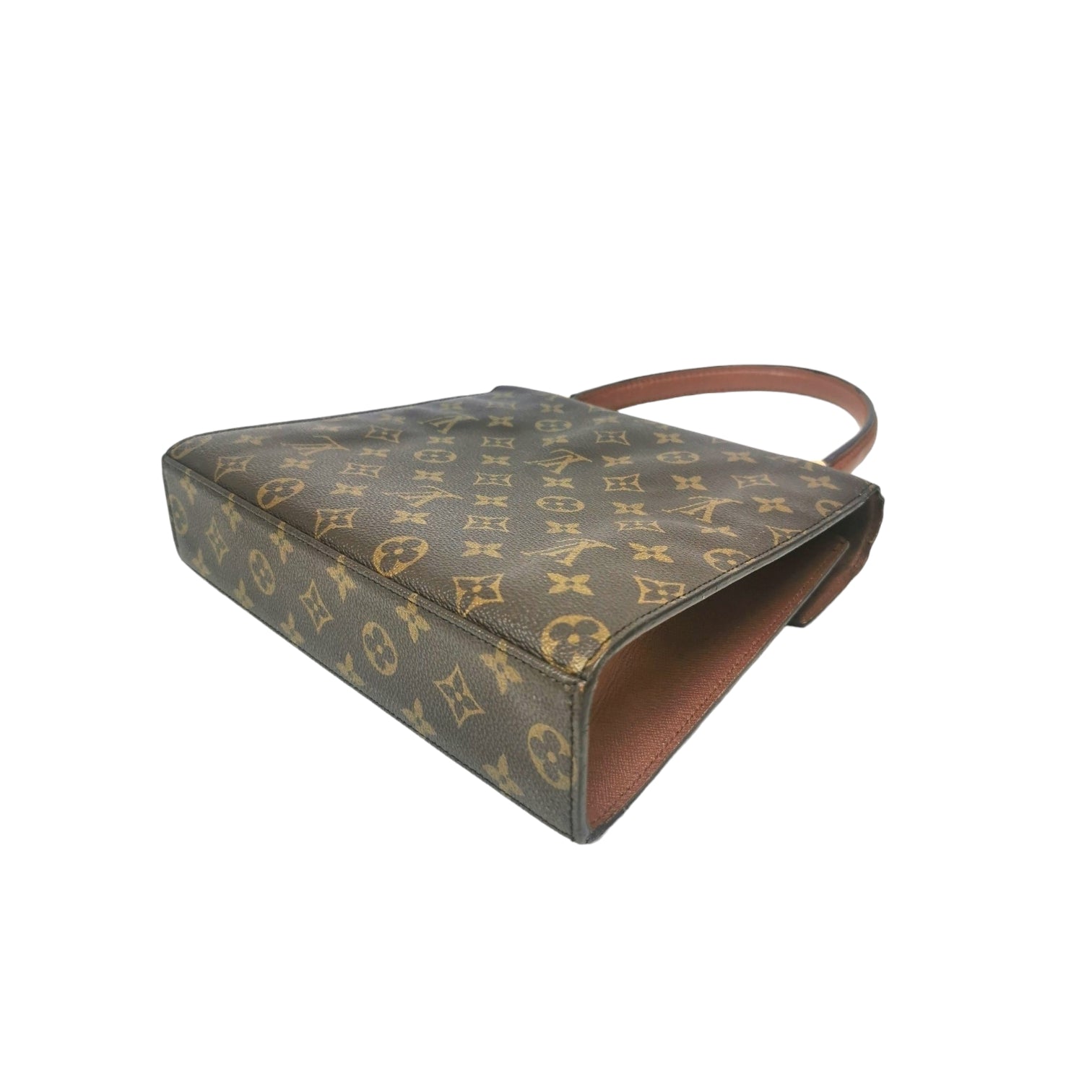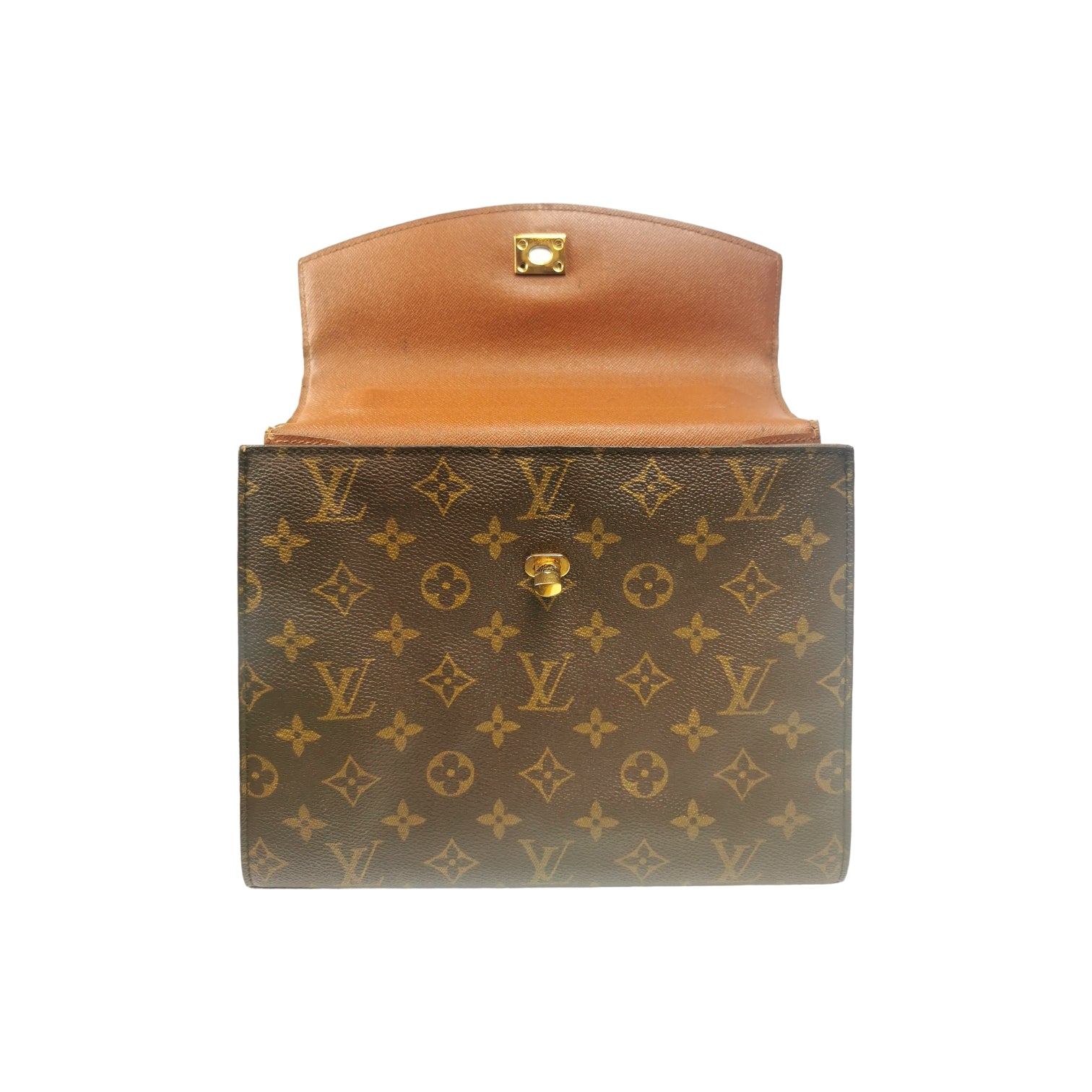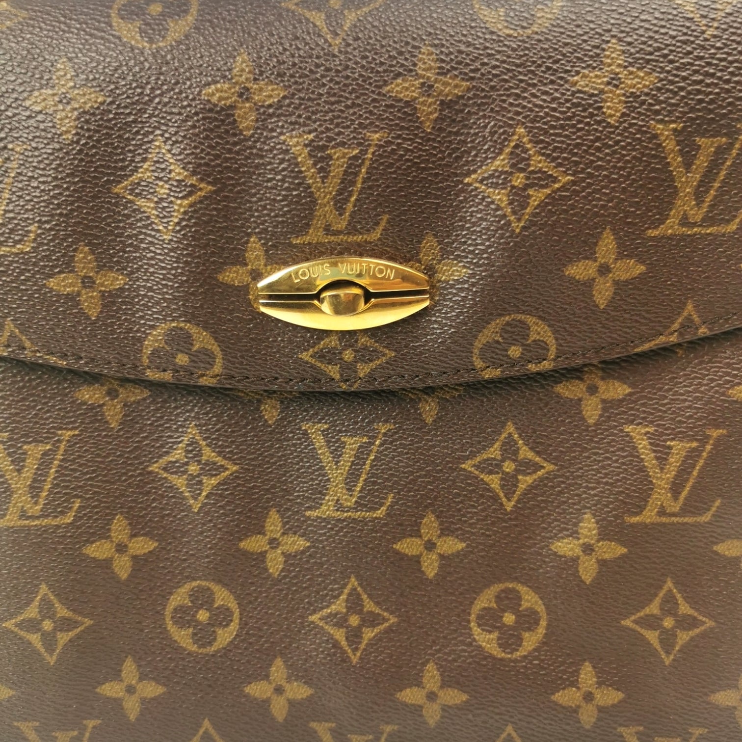The Malesherbes is made from the well-known Monogram canvas and features a single flat top handle, a front flap with twist lock and an inside pocket with zipper.
