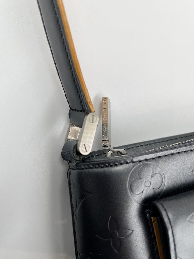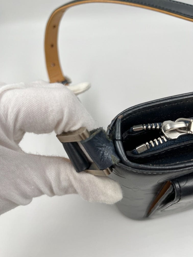 This bag has hardly been worn, and is in incredible pre-owned but there is some damage to the loop on side the connects the strap, shown in photos. This will need to be repaired, hence the lower price. The interior is clean and in great also.