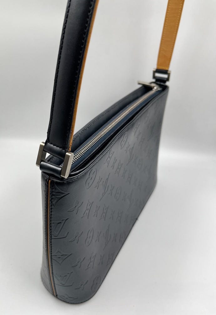 This chic and sophisticated LV metallic navy Monogram Mat Allston Bag is one you won’t want to miss out on. This bag features a sleek, structured design with an adjustable shoulder strap and comfortably holds your daily essentials. The monogram matte-finished metallic leather is truly a statement piece. Retail price is over £1220.