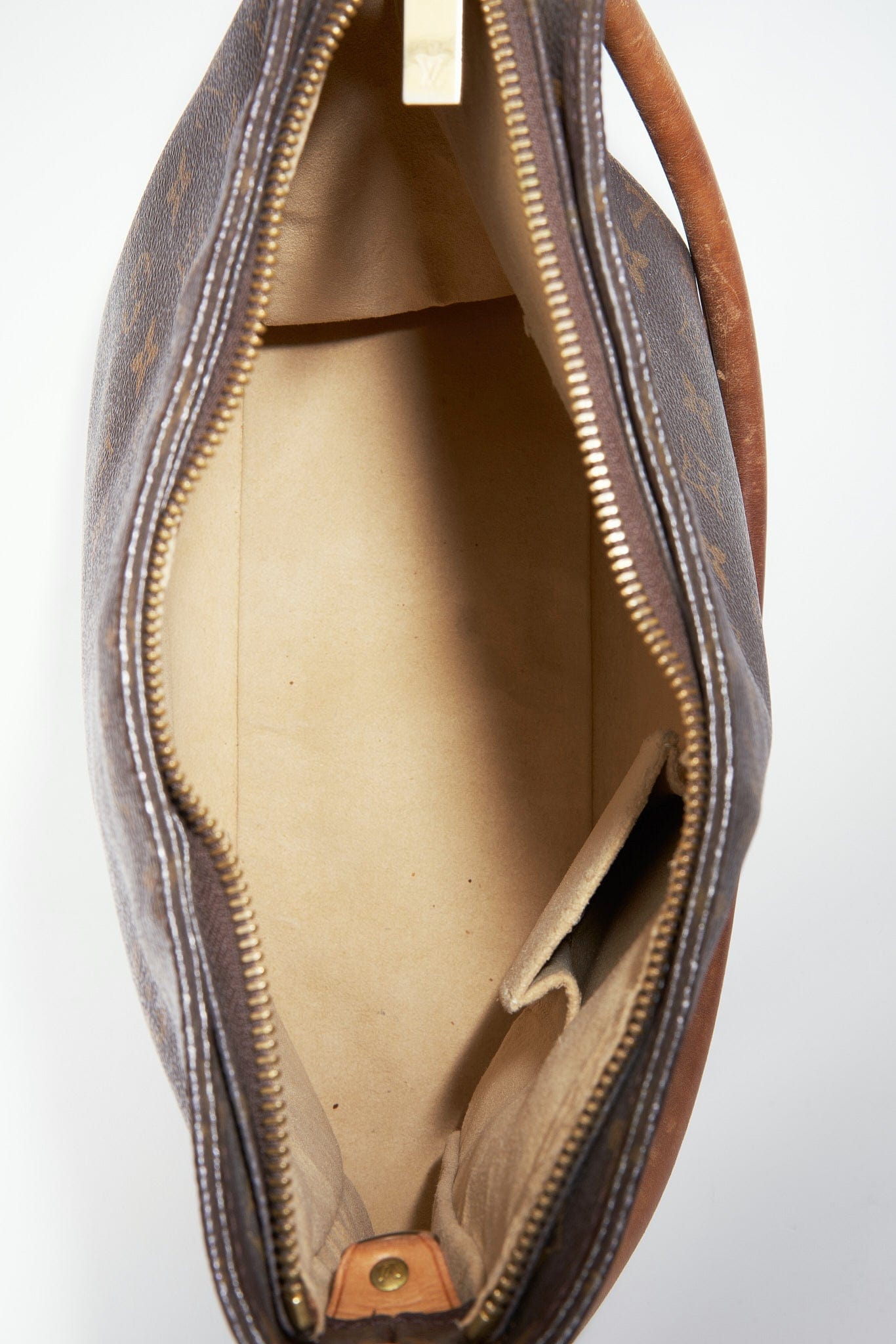 The LV Monogram Canvas GM Looping Bag has a unique and modern structure which is perfect for day or night. It is the largest-sized member of the Looping family which all have the padded natural leather swiveling arc handle.
