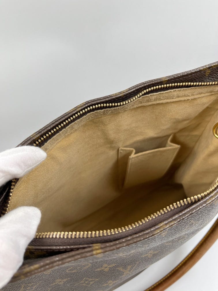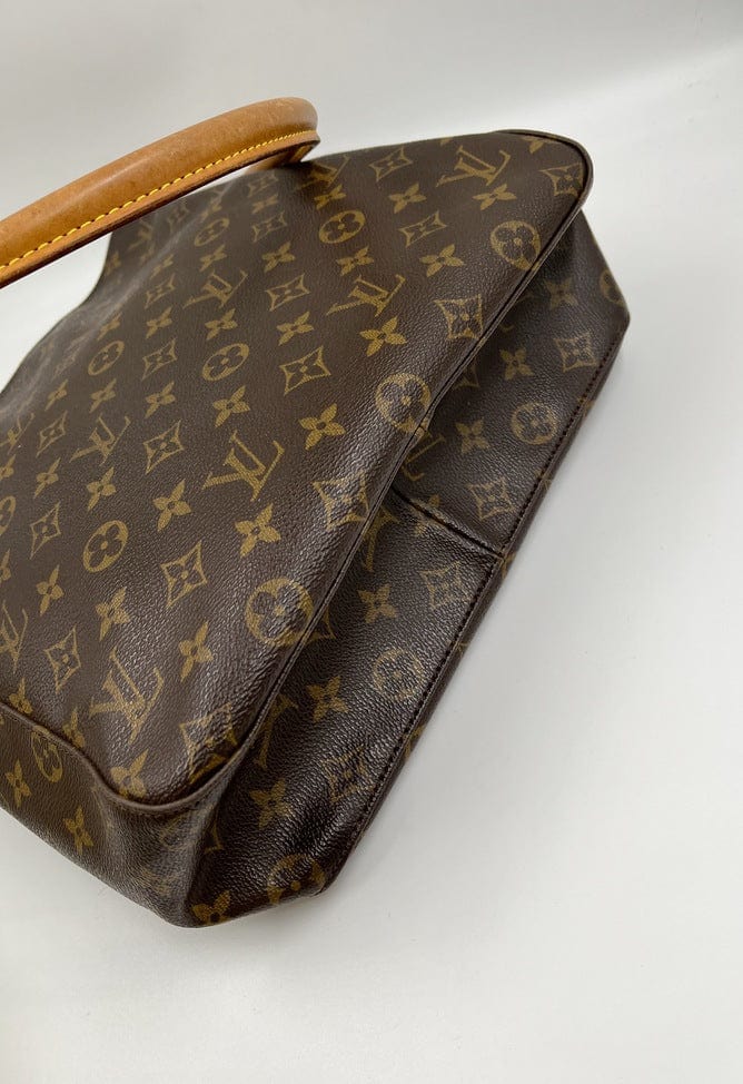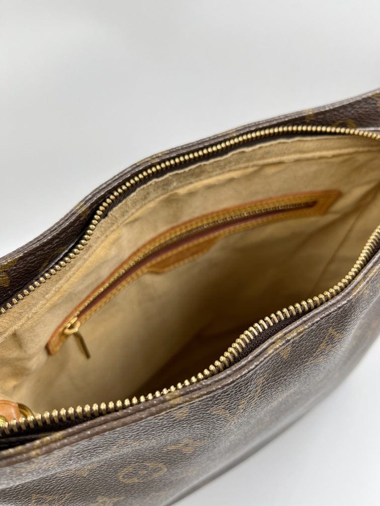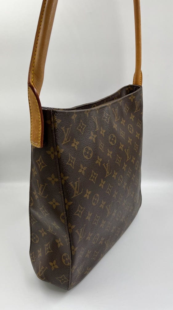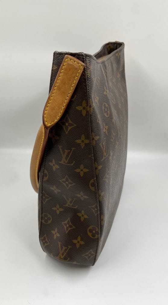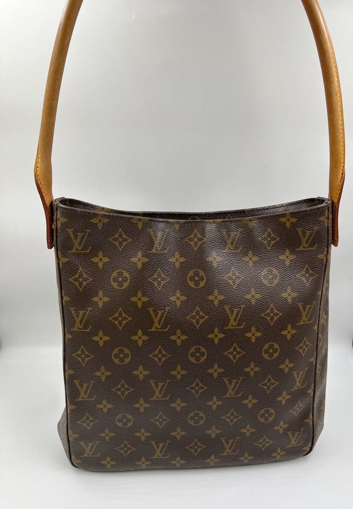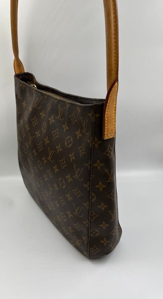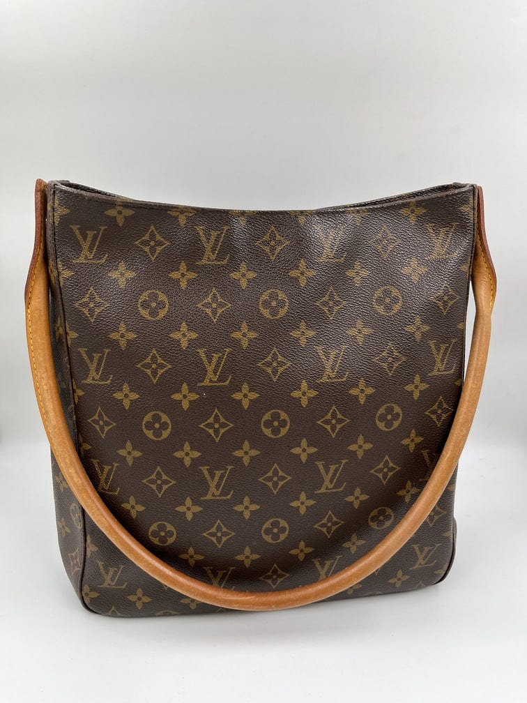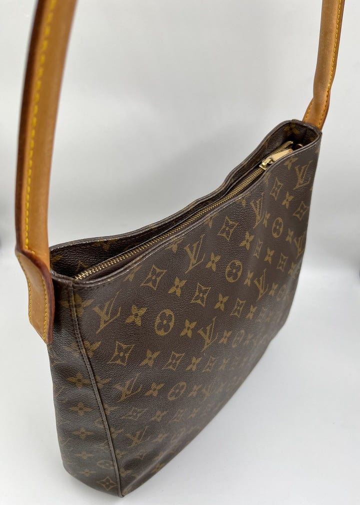 The LV Monogram Canvas Looping GM Bag has a unique and modern structure which is perfect for day or night. It is the largest-sized member of the Looping family which all have the padded natural leather swiveling arc handle. Retail price is £1300+.