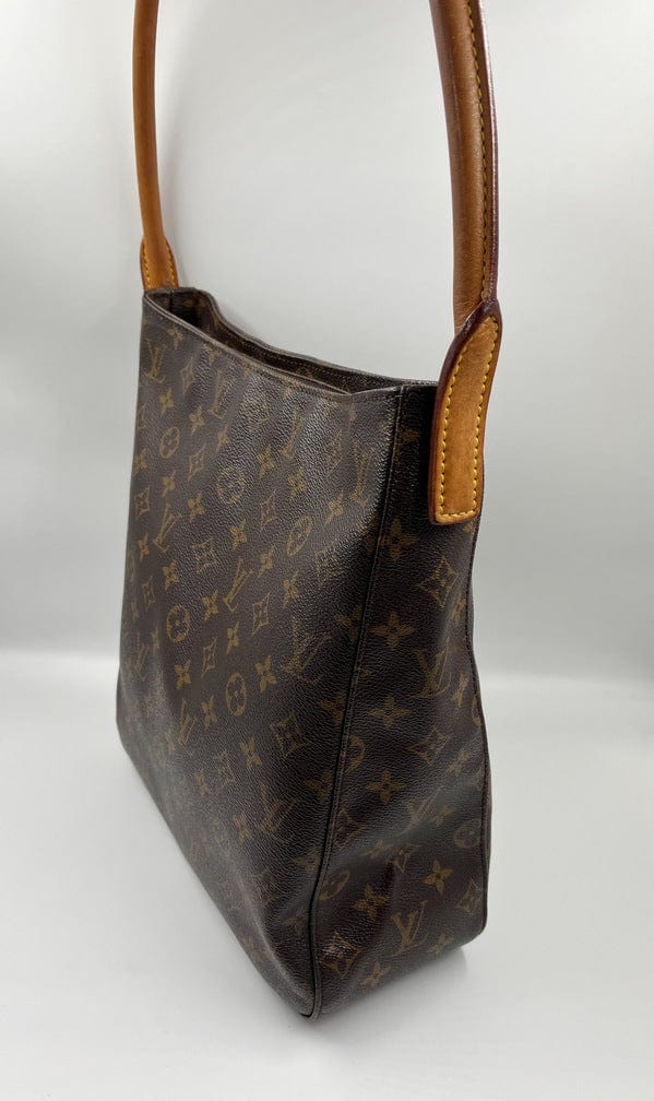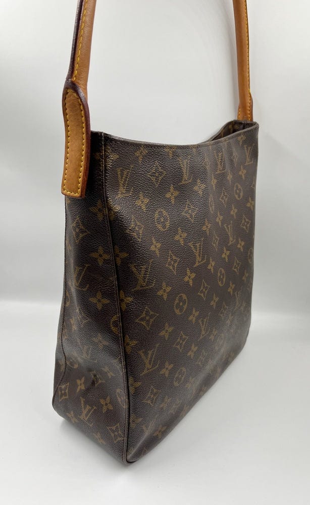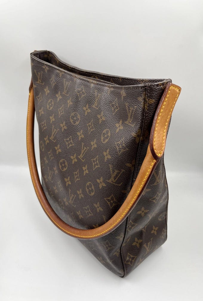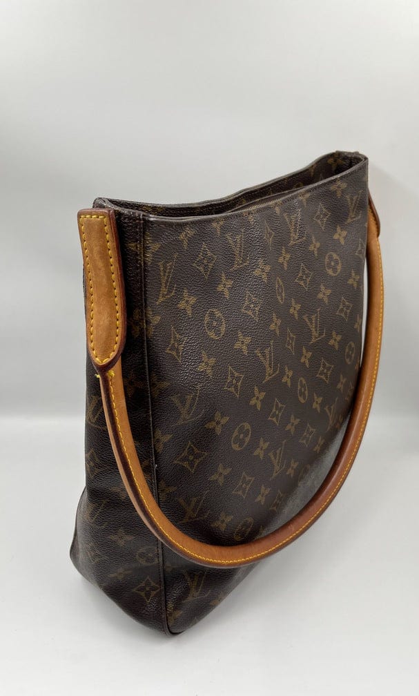 The LV Monogram Canvas Looping GM Bag has a unique and modern structure which is perfect for day or night. It is the largest-sized member of the Looping family which all have the padded natural leather swiveling arc handle. Retail price is £1300+.