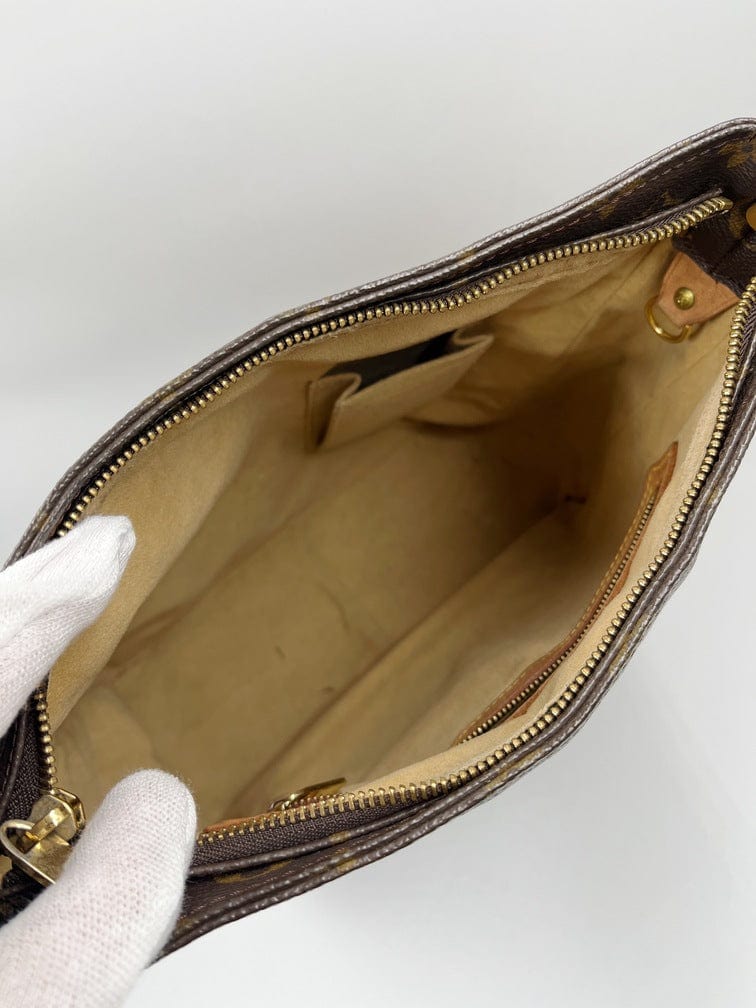 The classic Monogram Canvas has been LV’s trademark design since it was first introduced in 1896. The graphic symbols, including the quatrefoils and flowers, as well as the LV Monogram were New to prevent counterfeiting in the early days when it was first patented. Made of coated canvas, the Monogram’s traditional look is also endured by its durability. The top handle drop is 27cm so fits comfortably over the shoulder.